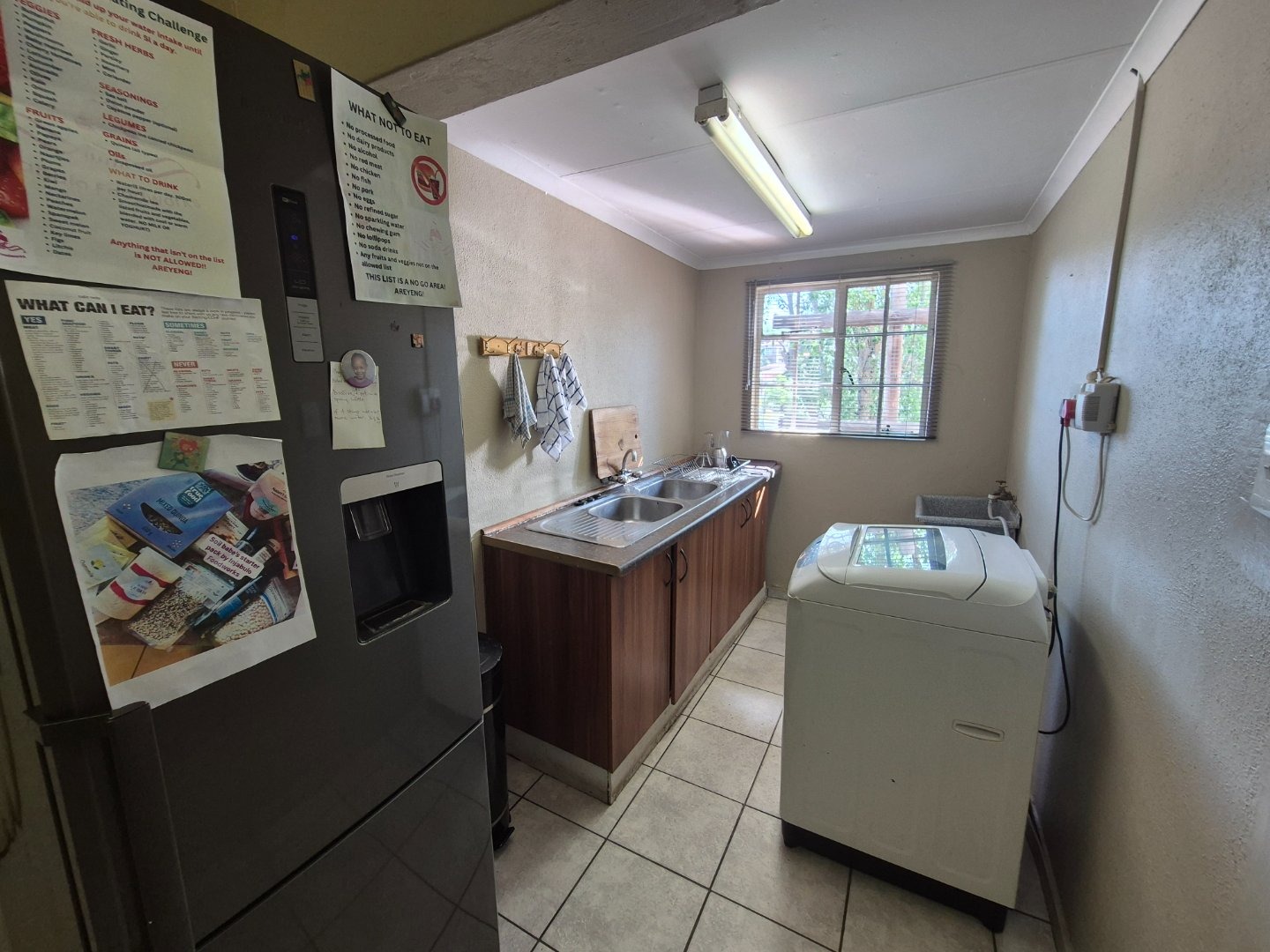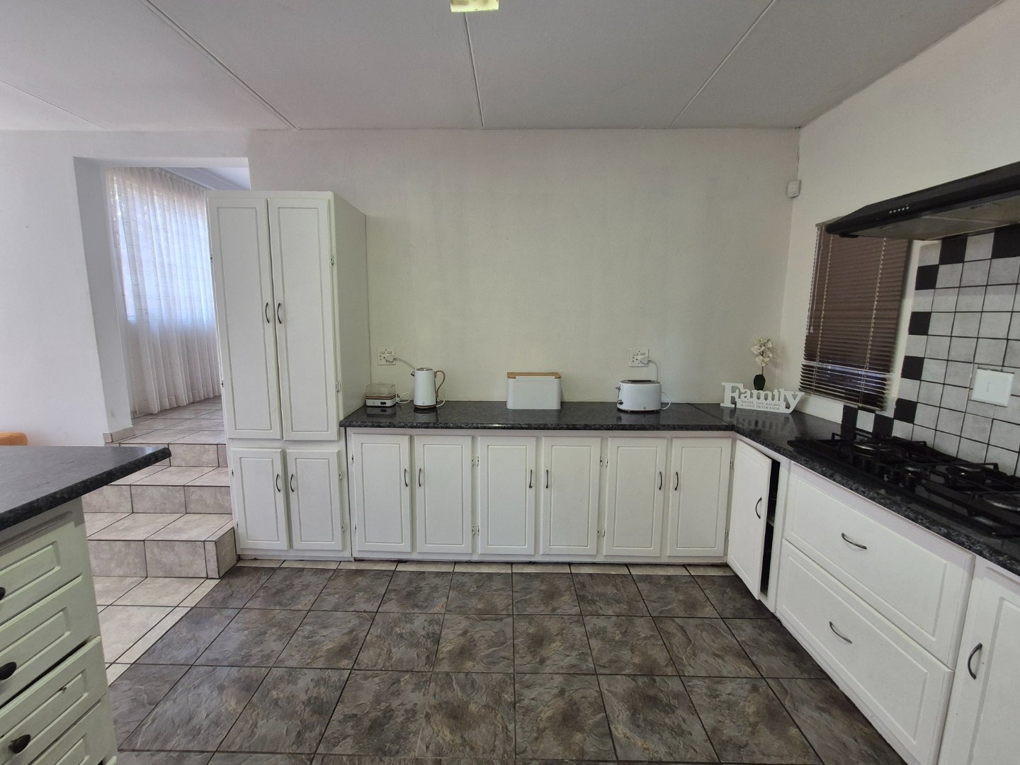 built-in cupboards, gas stove, eye-level oven, extractor fan, and a separate