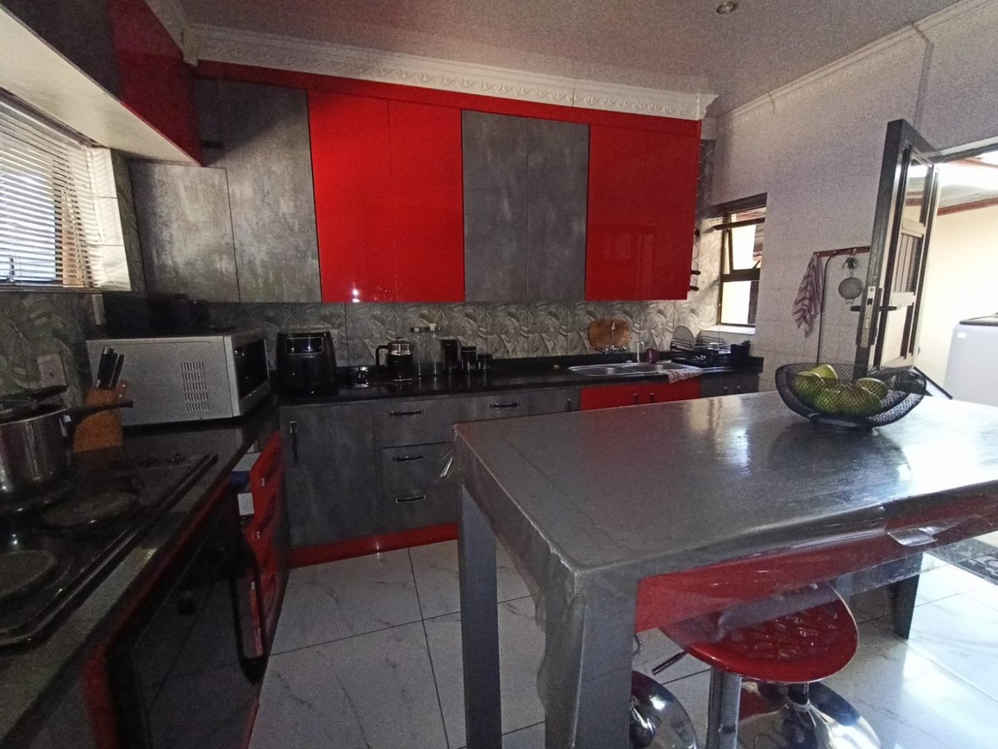 Step into this lovely suburban home, perfect for comfortable family living! You'll immediately notice the inviting open-plan layout that seamlessly connects the living, dining, and kitchen areas, making it ideal for entertaining or just chilling out. The kitchen is a real showstopper with its bold red and grey two-tone cabinetry, offering plenty of storage and counter space, for extra prep or casual meals. Natural light floods these spaces, highlighting the modern tiled flooring and decorative crown molding. The lounge area is super cozy. 3 bedrooms and two well-appointed bathrooms, providing ample space for everyone.