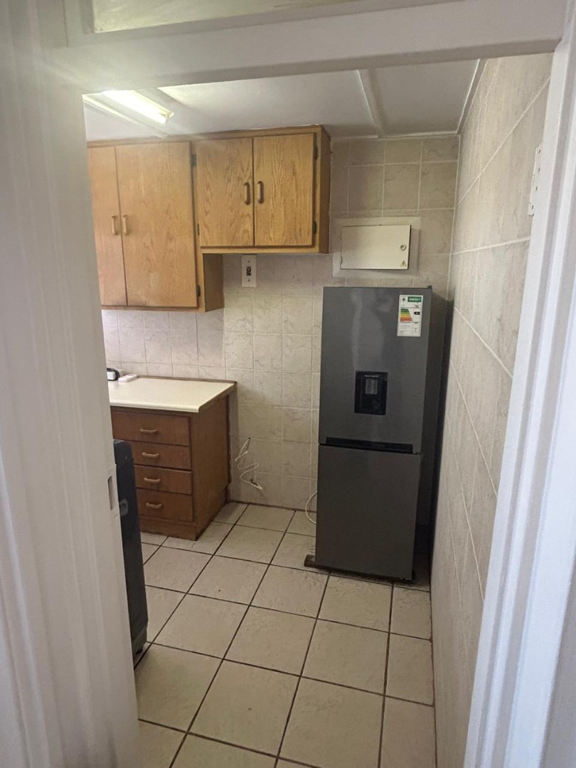 Spanning a comfortable 61.00 sqm, this apartment features a functional interior layout. The lounge area is brightened by large windows, offering a comfortable space for daily living. The compact kitchen is equipped with ample wooden cabinetry for storage, complemented by tiled walls and floors for easy maintenance. It includes provisions for a washing machine and houses a modern refrigerator, ensuring practical utility.