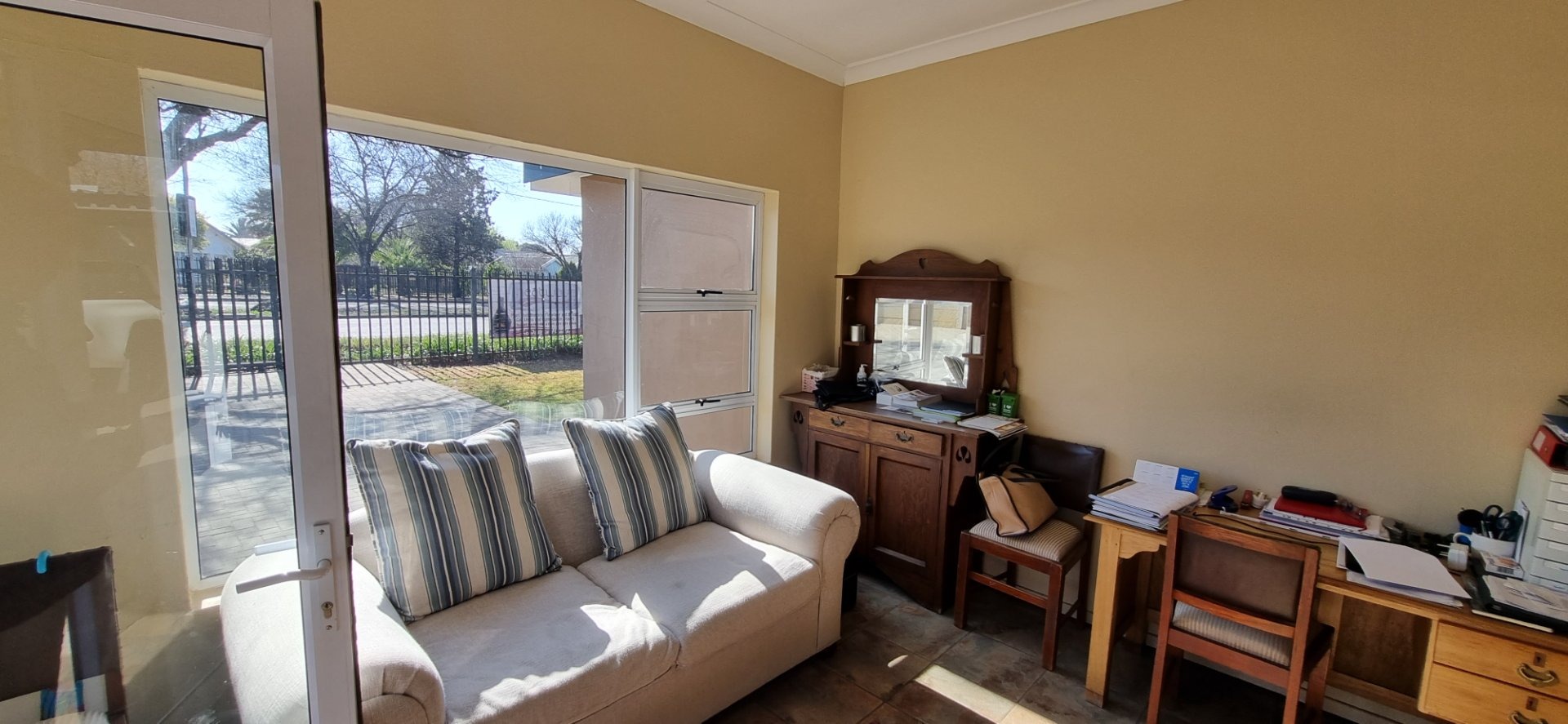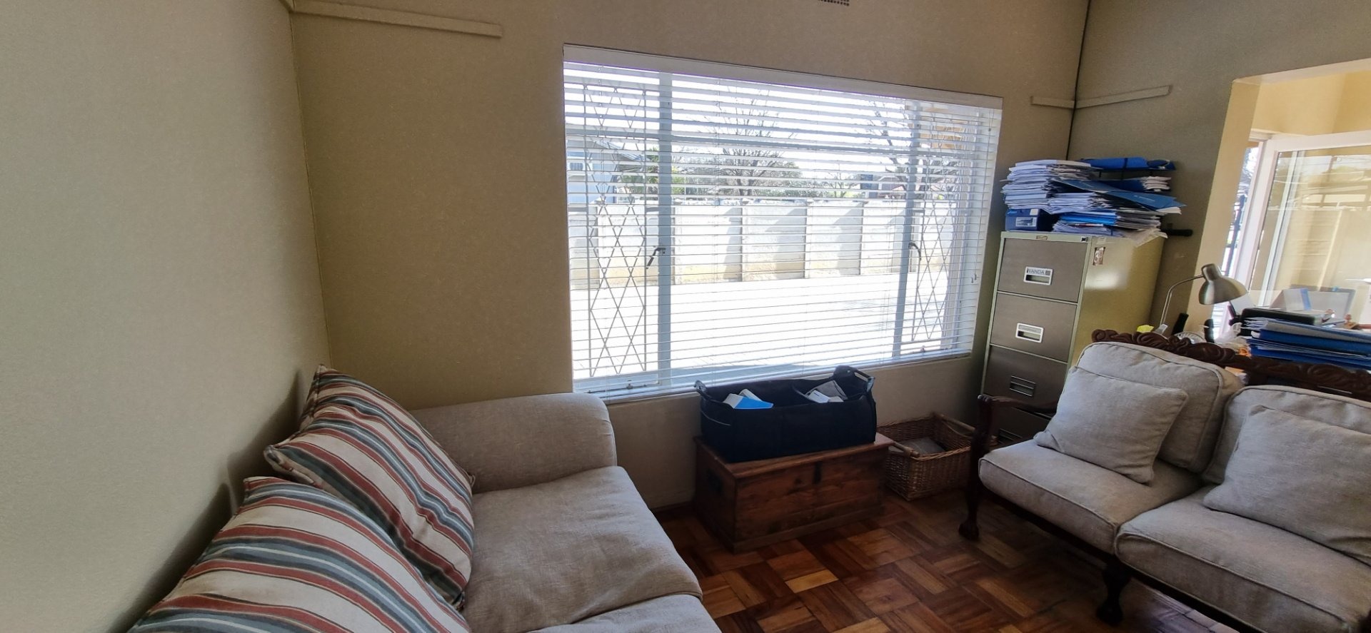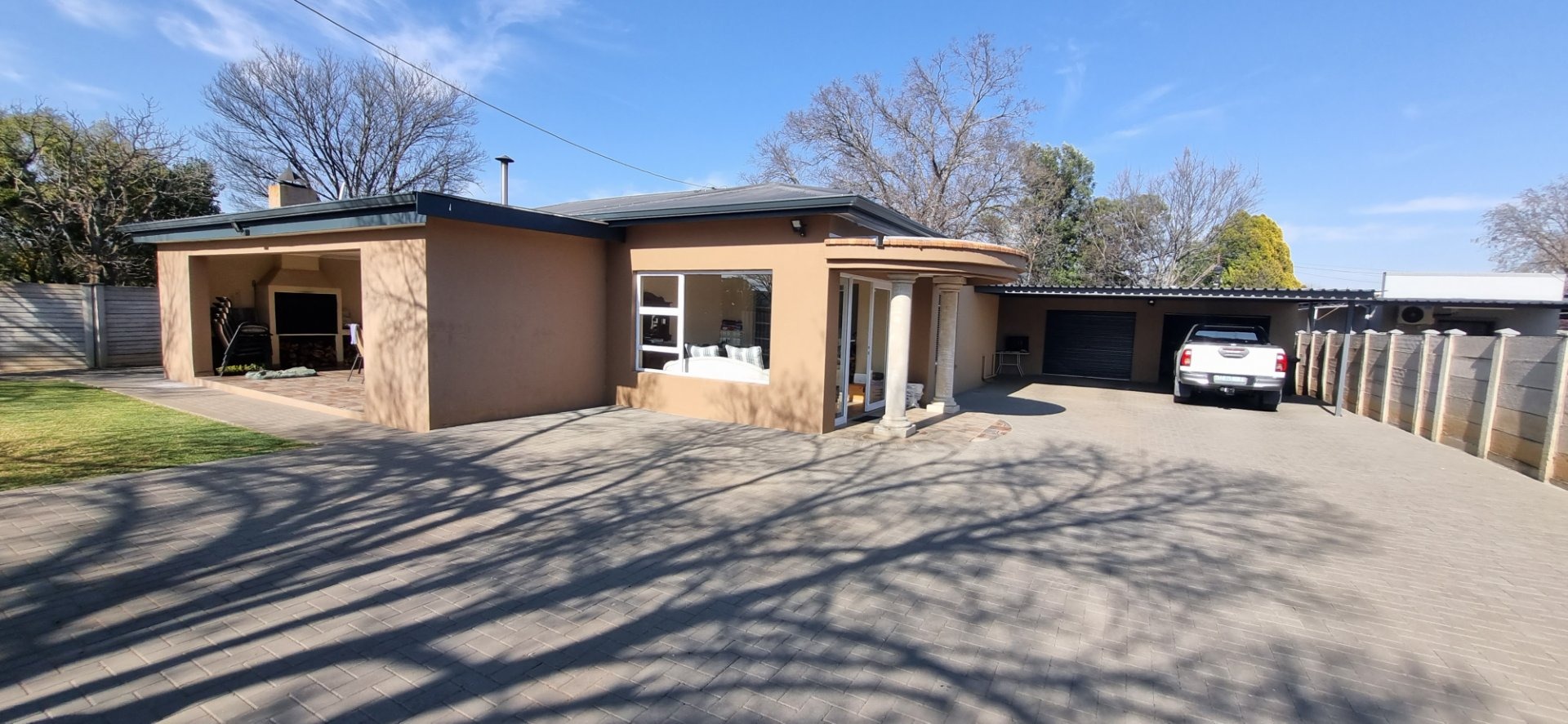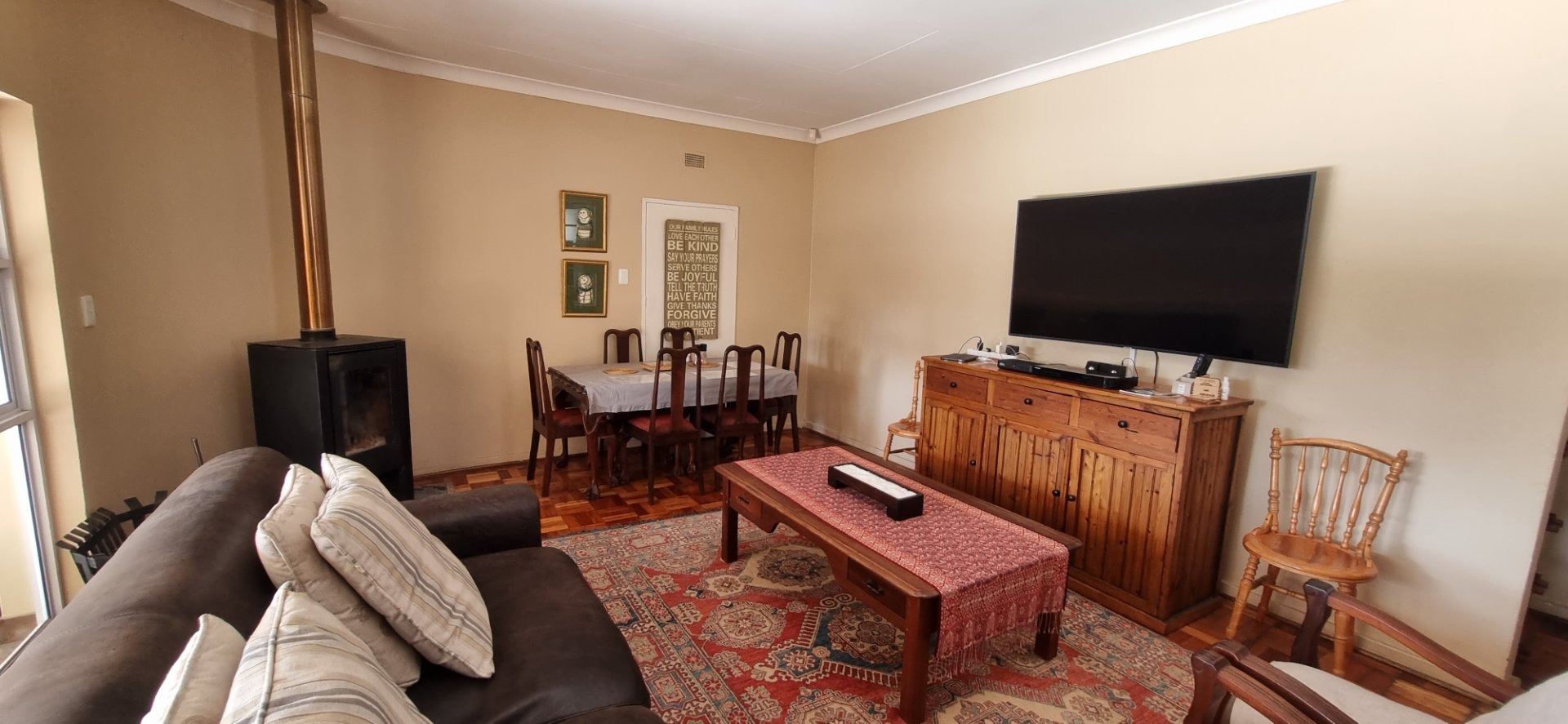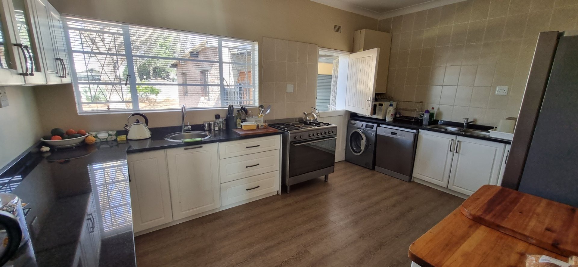 Discover this inviting family home located in the desirable Dan Pienaar suburb of Bloemfontein. The interior boasts a seamless flow, beginning with the spacious living and dining areas featuring classic parquet flooring. A cozy wood-burning stove adds warmth and character, while large sliding glass doors open to an outdoor patio, inviting natural light and extending your living space. The modern kitchen is a highlight, equipped with sleek white shaker-style cabinetry, dark countertops, and contemporary wood-look flooring. It includes a gas range, washing machine, and dishwasher, all complemented by a large window that ensures ample natural light. This residence offers three comfortable bedrooms, each featuring the same warm parquet flooring and large windows that fill the rooms with light. Built-in wardrobes provide practical storage solutions. The home further benefits from three well-appointed bathrooms, including one with a modern vessel sink set on a stylish vanity and decorative tiled walls, ensuring convenience for the entire household. Beyond the interior, the property provides excellent outdoor access, with a glass door leading to an additional outdoor area, perfect for relaxation or entertaining. The generous 800 sqm erf size offers potential for further landscaping or outdoor enhancements. Parking is well catered for with two garages and an additional two dedicated parking spaces, providing ample room for vehicles. For peace of mind, the home is fitted with security bars on windows. Situated in Dan Pienaar, a well-established area in Bloemfontein, this property offers a convenient and family-friendly lifestyle, close to local amenities and services. Key Features: * 3 Bedrooms, 3 Bathrooms * Spacious living and dining areas * Modern kitchen with gas range and appliances * Cozy wood-burning stove * Classic parquet flooring throughout * Ample natural light from large windows * Direct access to outdoor areas/patio * Two garages and two additional parking spaces * Generous 800 sqm erf size * Security bars on windows