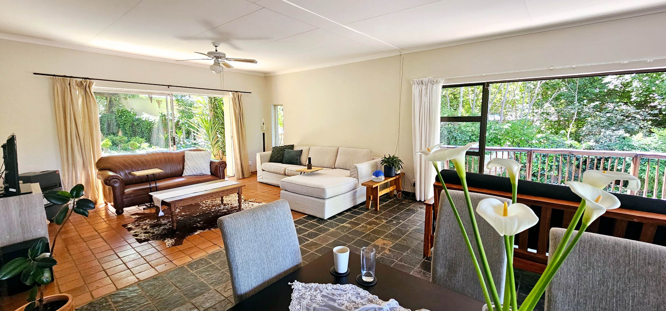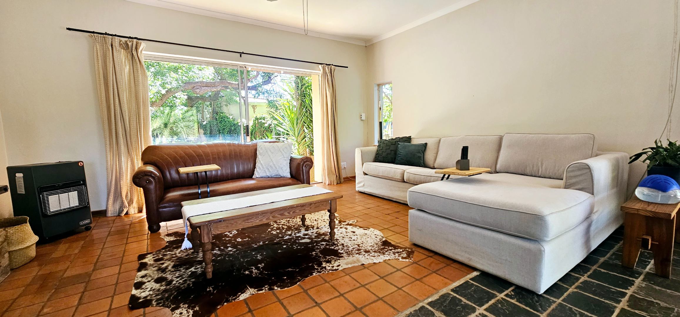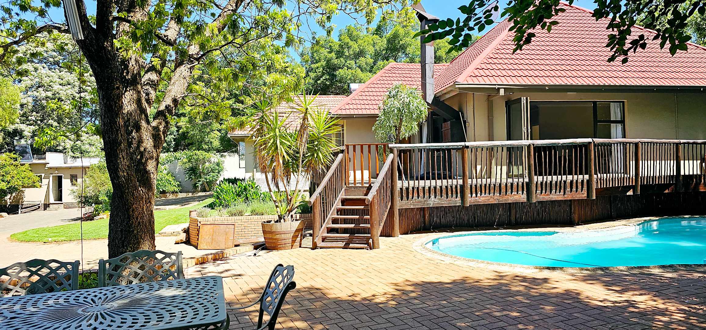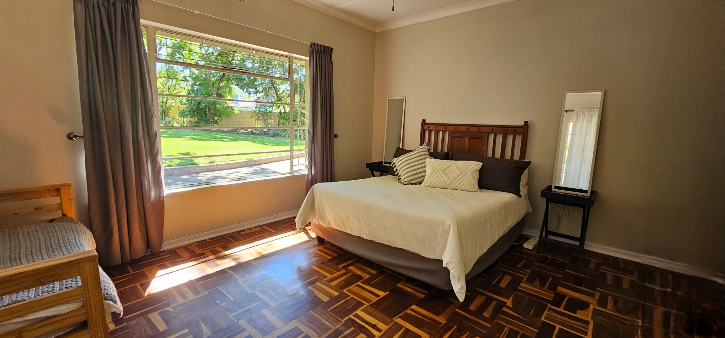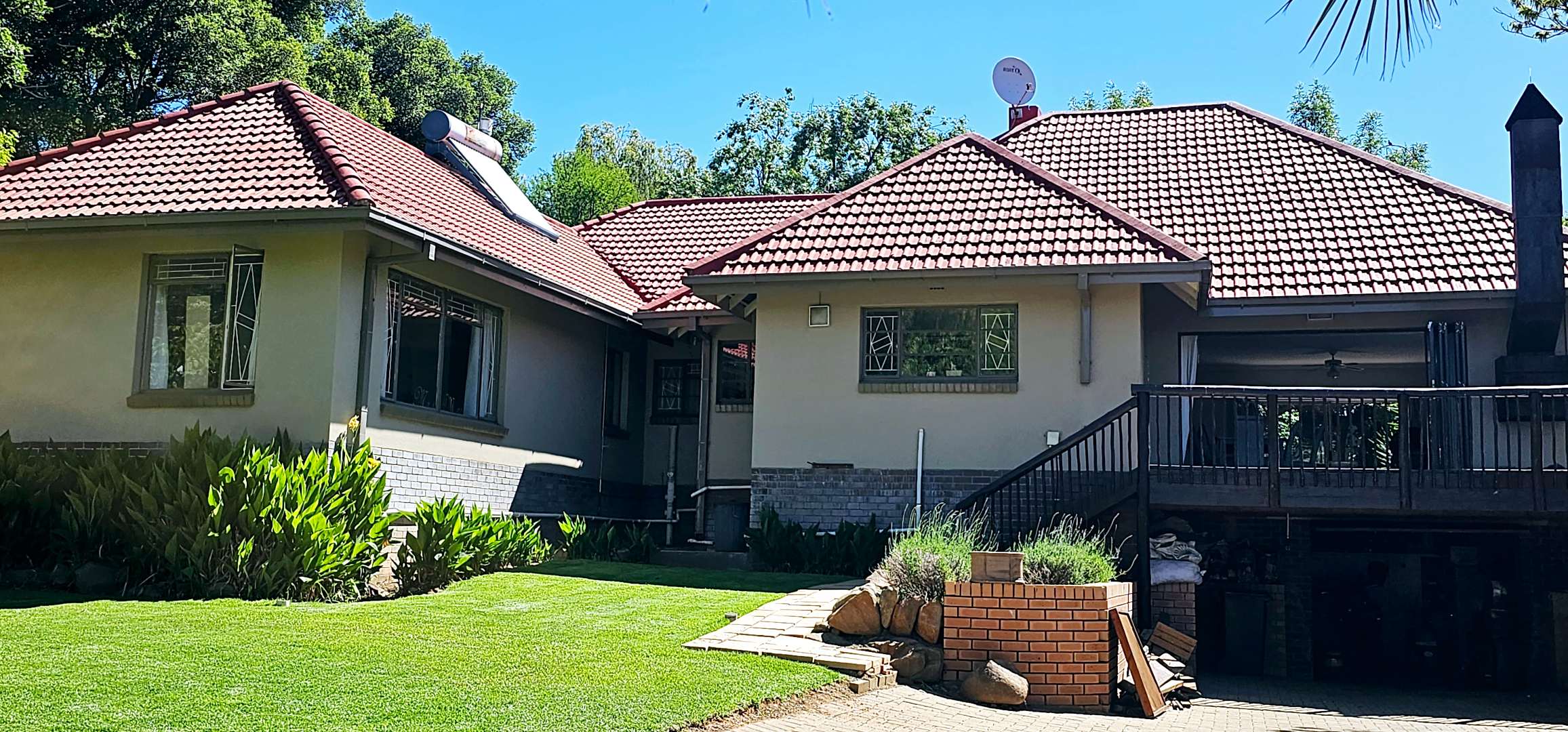 Outdoor Paradise, a lush, park-like garden where towering trees provide shade and serenity. The sprawling lawn is perfect for children to play freely while birdsong fills the air. A fully functional borehole and automated sprinkler system keep the grounds green and thriving year-round.