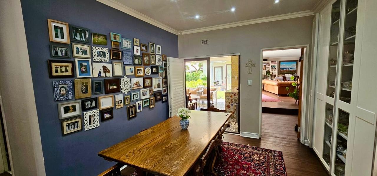 The dining room is conveniently positioned next to the kitchen.
