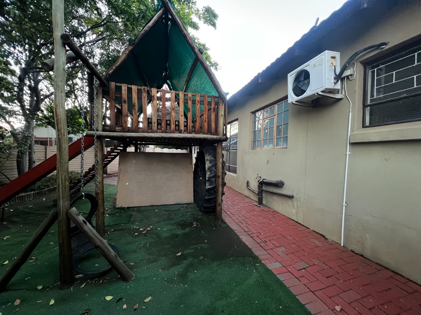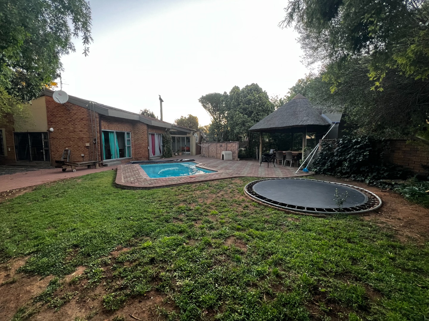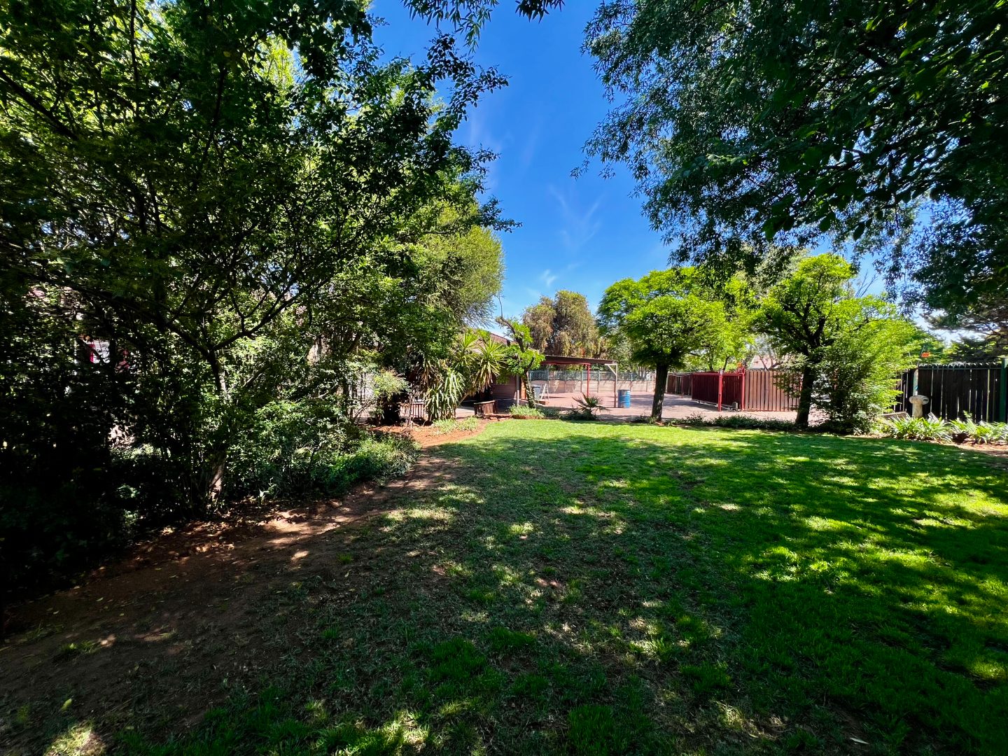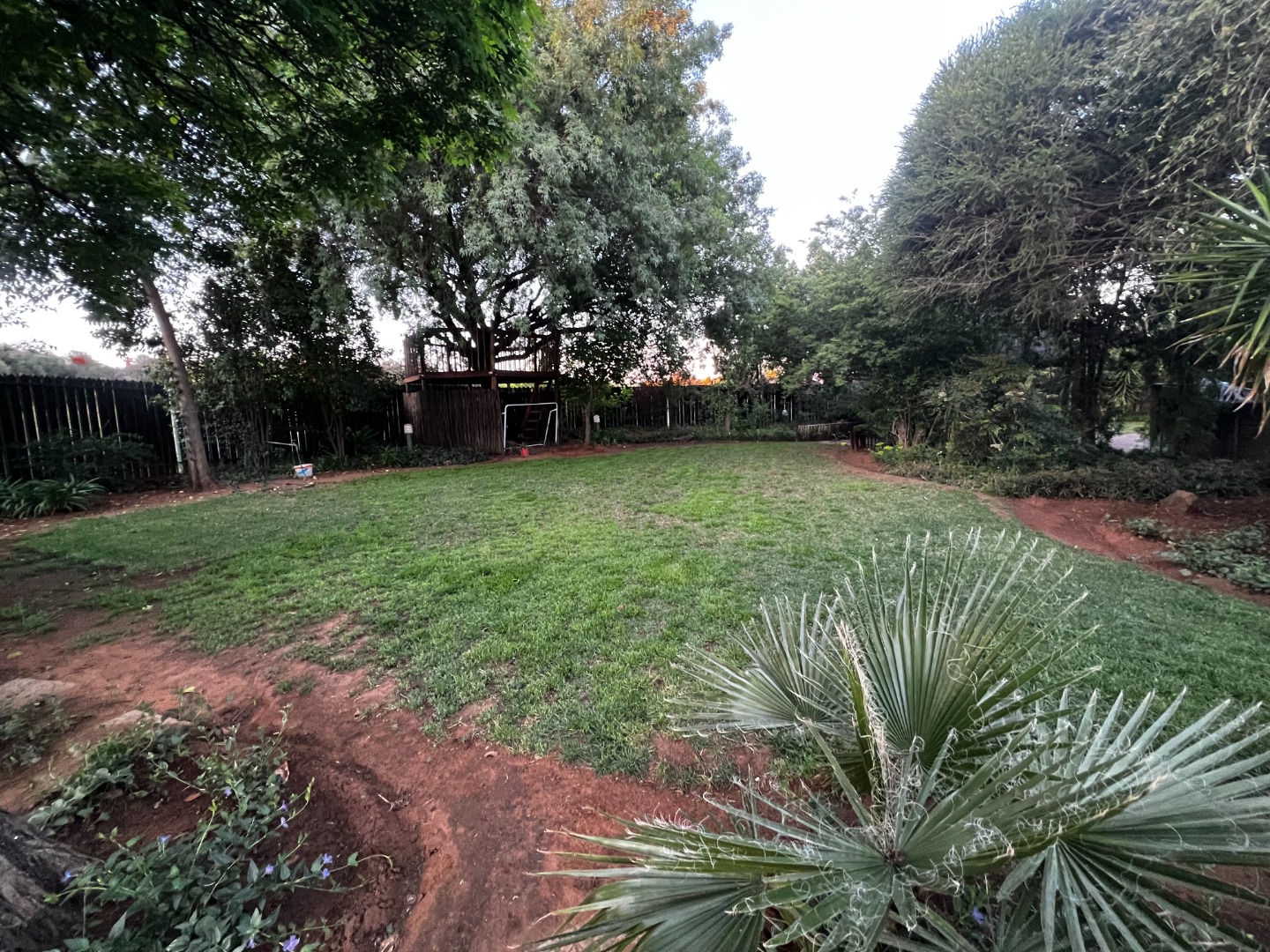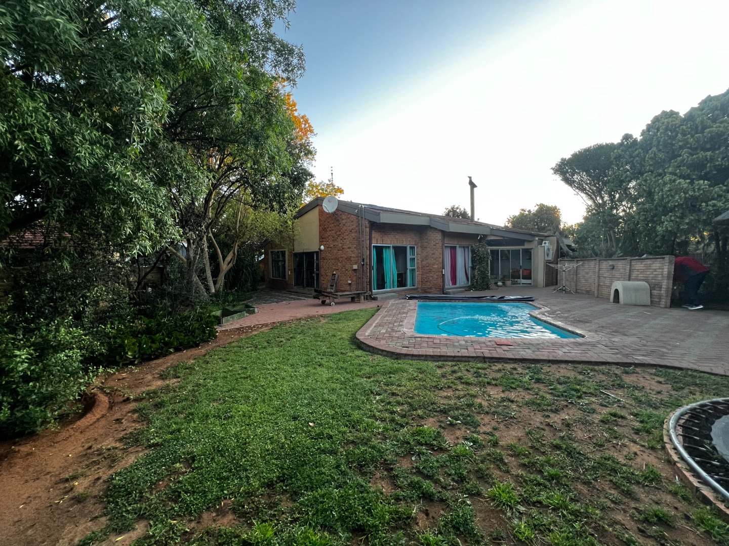 The outdoor area is designed for leisure and enjoyment. A sparkling swimming pool forms the centerpiece of the backyard, surrounded by a landscaped garden with an automated irrigation system. Children are catered for with their very own playhouse, while a Wendy house provides additional storage or workshop space.