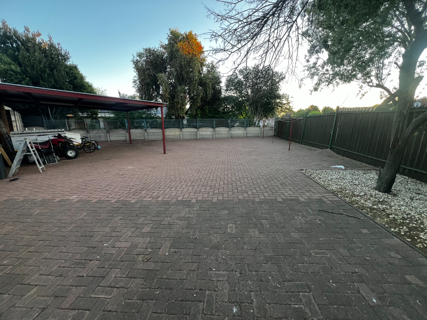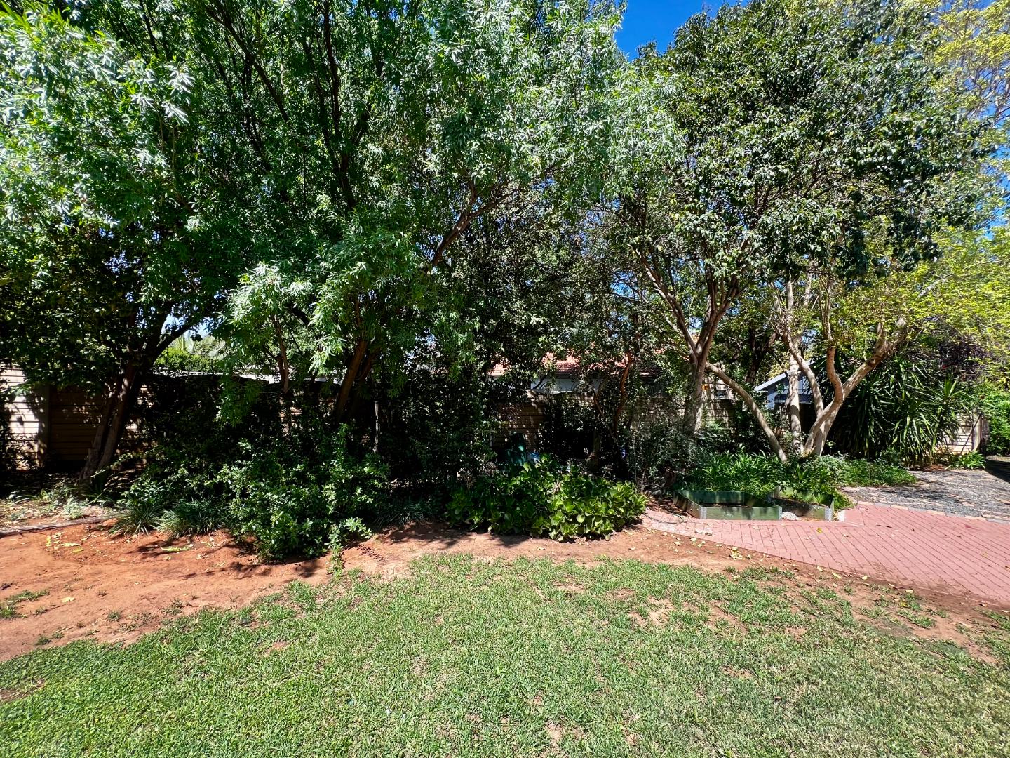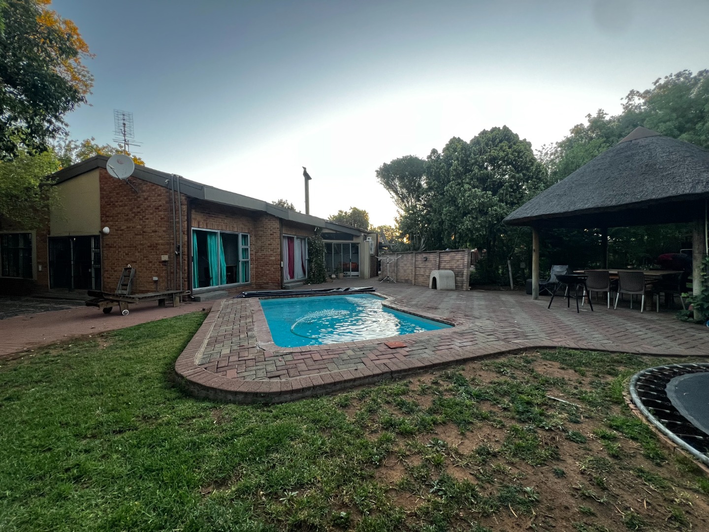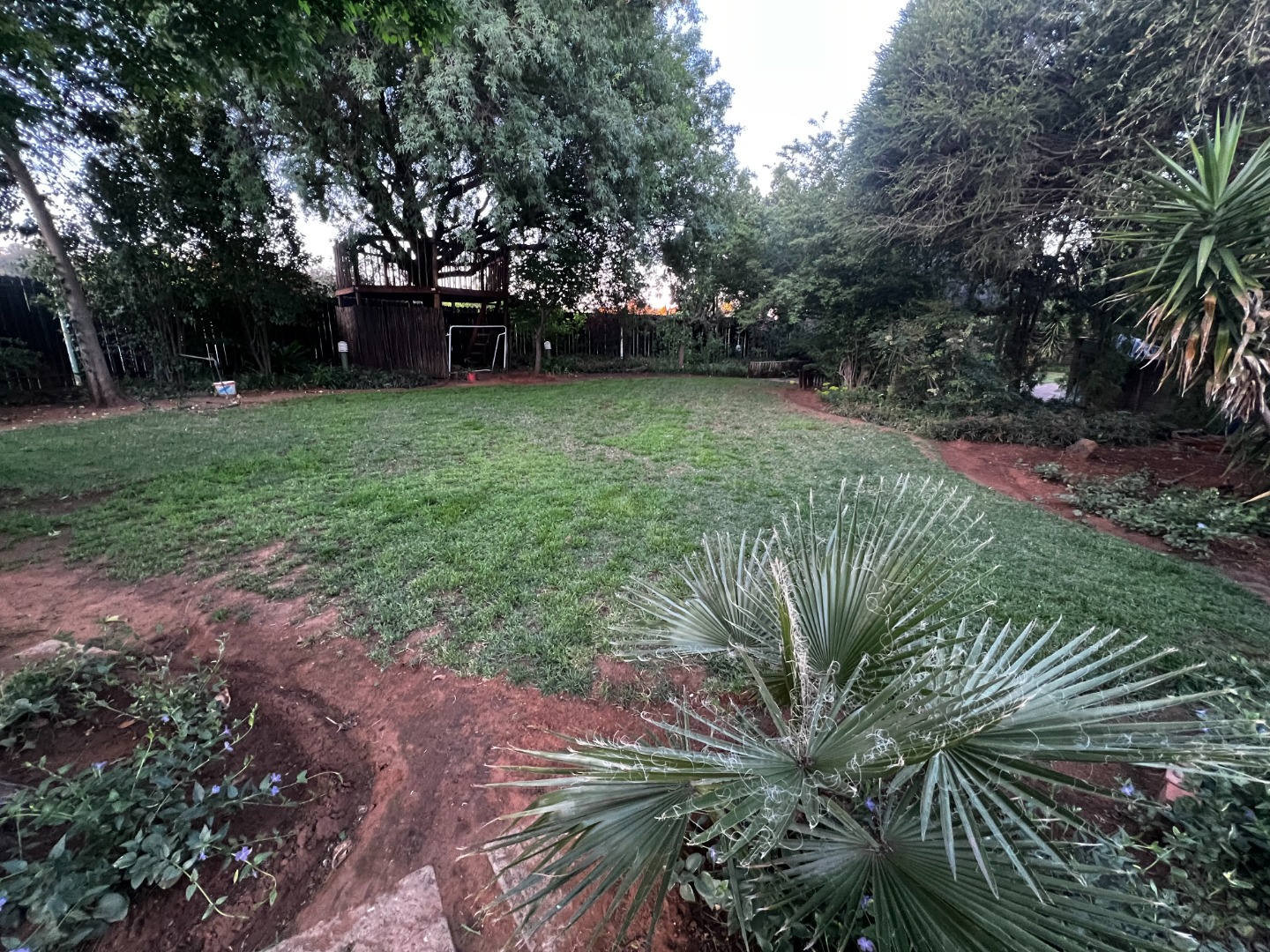 The outdoor area is designed for leisure and enjoyment. A sparkling swimming pool forms the centerpiece of the backyard, surrounded by a landscaped garden with an automated irrigation system. Children are catered for with their very own playhouse, while a Wendy house provides additional storage or workshop space.