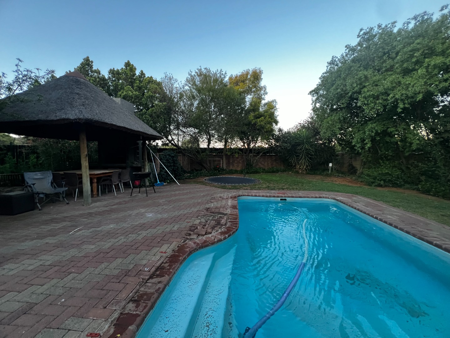 Upon entering, you are welcomed into two spacious living areas that provide a warm and inviting atmosphere for family gatherings or quiet relaxation. A dedicated braai room adds to the home’s entertainment appeal, offering the ideal setting for hosting friends and loved ones. The open-plan kitchen, fitted with a gas hob, seamlessly connects to the living spaces, while a separate scullery ensures practicality and convenience in everyday living.