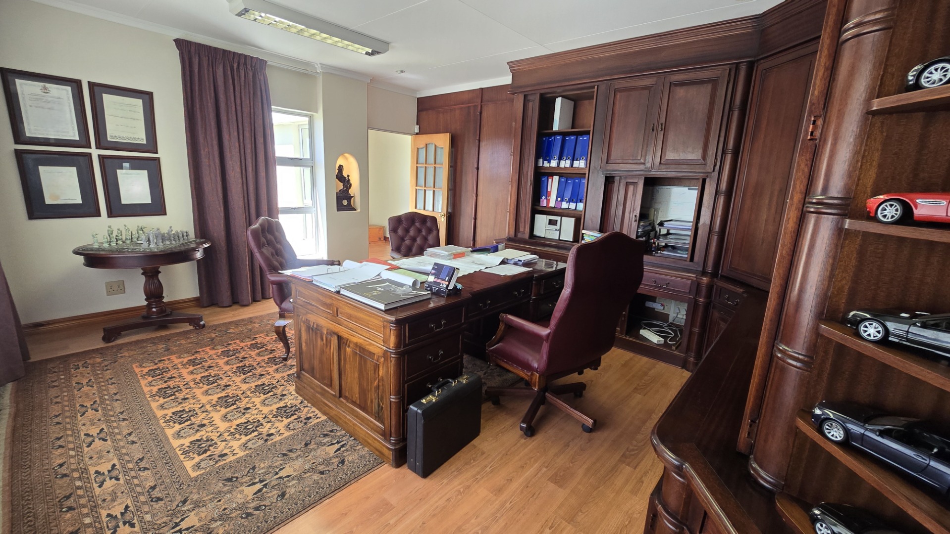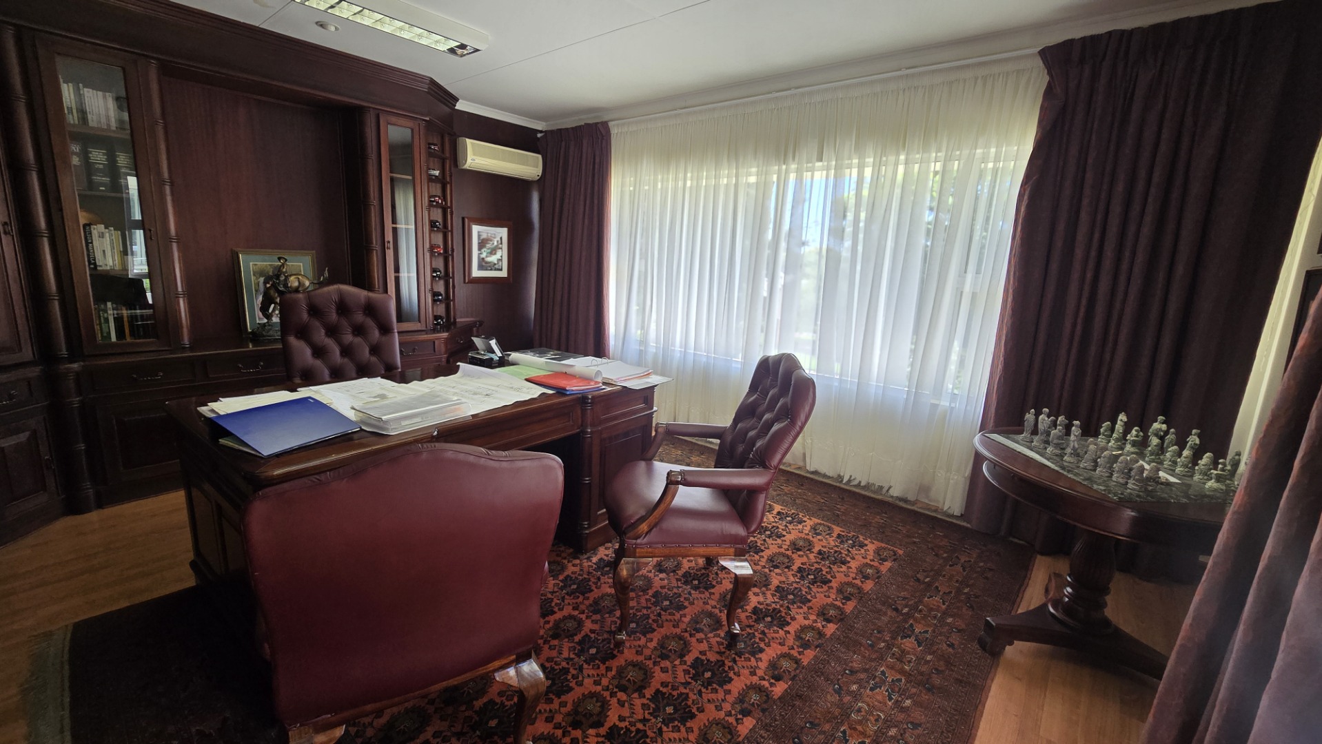 Security is paramount with an alarm system, access gate, burglar bars, and a totally walled perimeter. Enjoy year-round comfort with air conditioning and a fireplace, plus fibre connectivity, staff quarters, and a laundry area. Located in suburban Heuwelsig, this property promises a tranquil lifestyle within a well-established community.