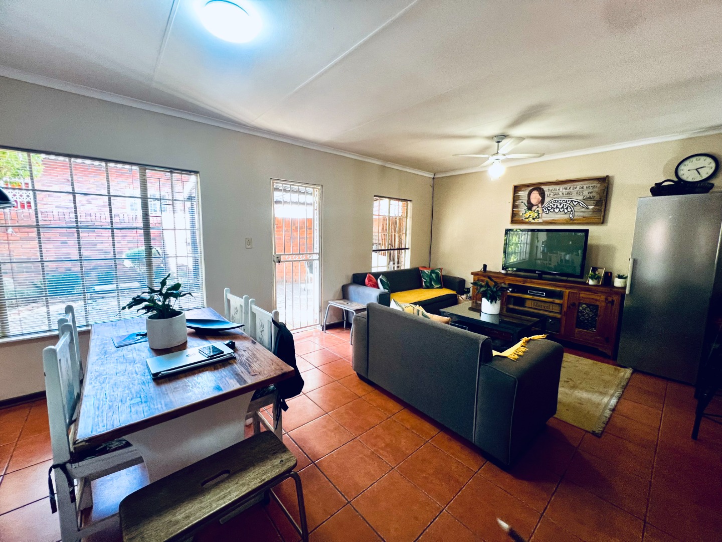 New in the market and ready to move in. Perfect lock up and go lose standing property with spacious light and bright open plan living/dining room. Tiled floors and door to the outside entertainment area, with built in braai. and per friendly garden.