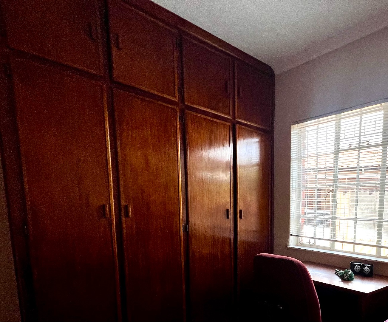 Two bedrooms (double size rooms with enough built in cupboards) with one full bathroom.