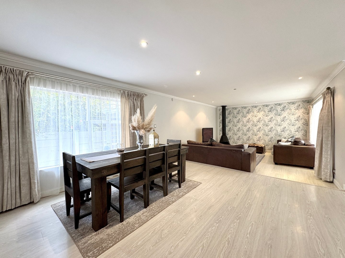 The home boasts excellent indoor-outdoor flow, leading to a fantastic entertainment area complete with a built-in bar, swimming pool, and boma fireplace — perfect for hosting.