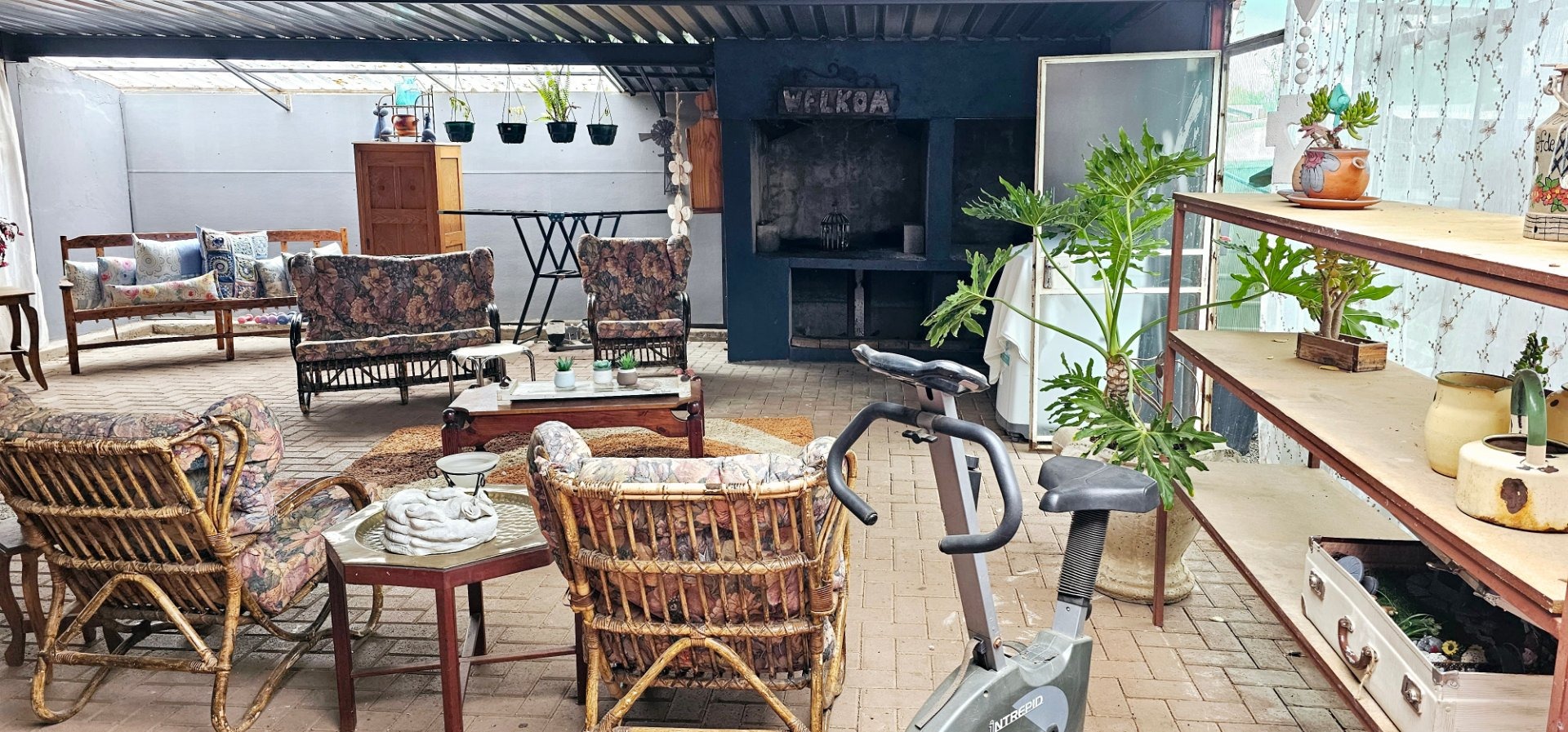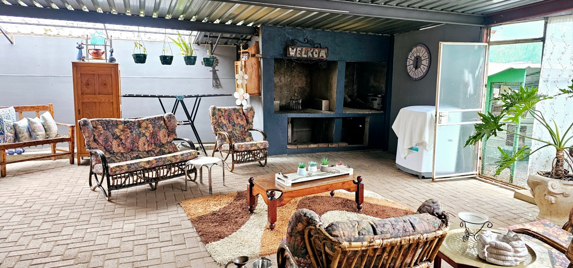 Leading to an outdoor braai and entertainment area with a lovely garden