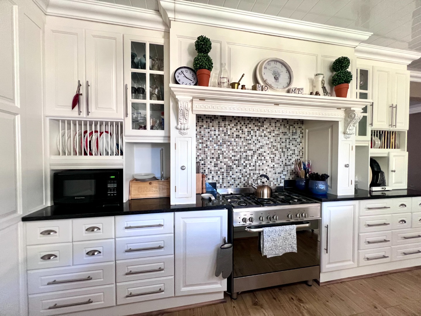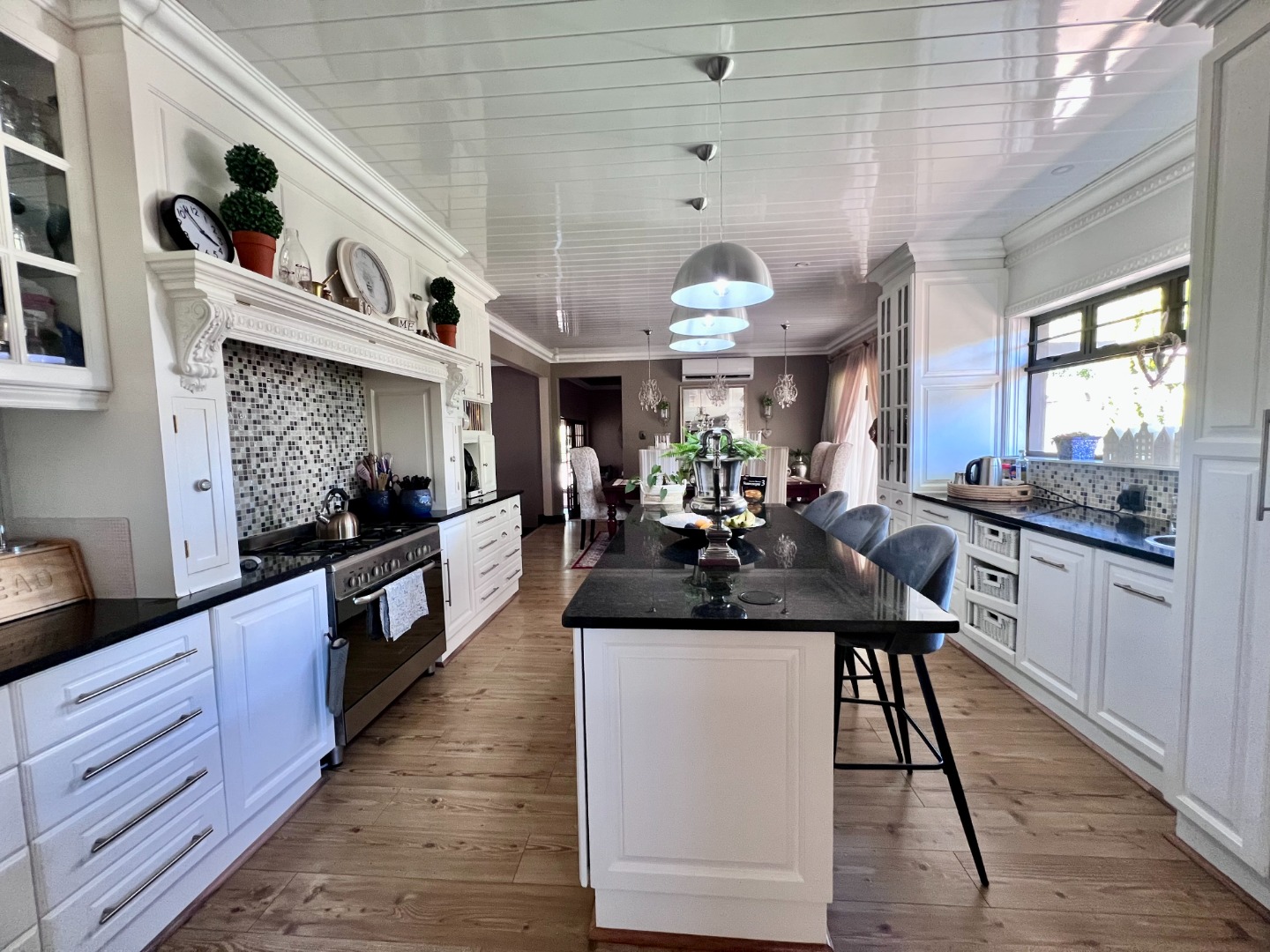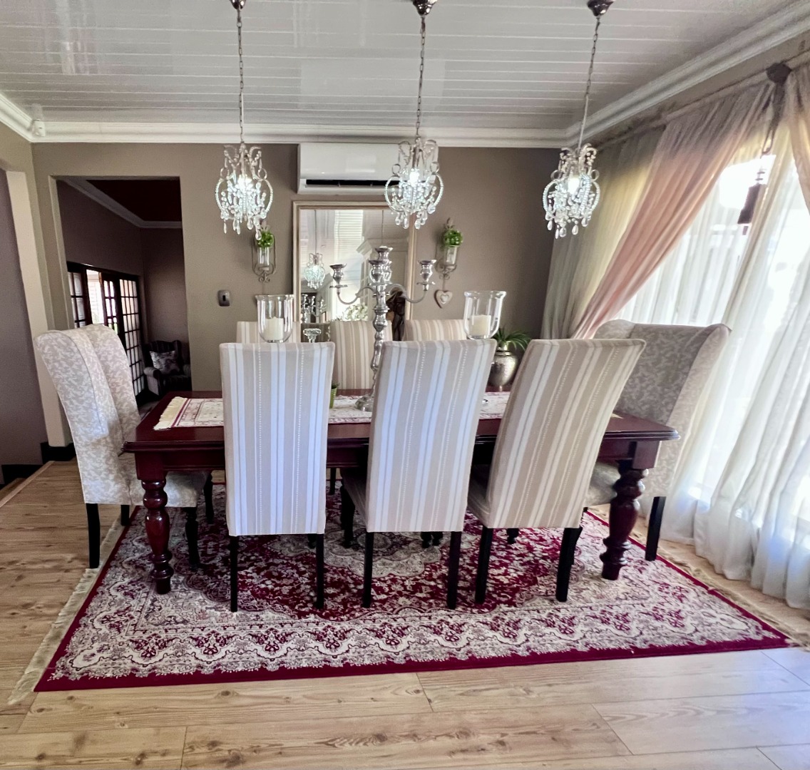 This immaculate 3/4 -bedroom residence offers sophisticated living with beautiful modern finishes throughout. The stylish kitchen features granite countertops, a central island, and a separate scullery — perfect for any home chef. An elegant dining area with a chandelier flows seamlessly into spacious living and TV rooms, complete with a cozy fireplace and air-conditioning for year-round comfort.