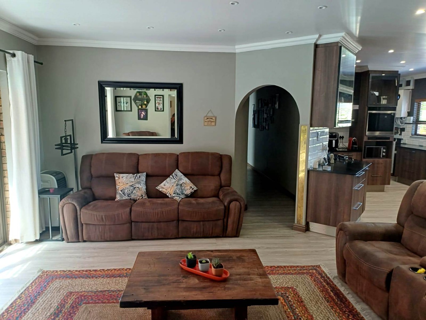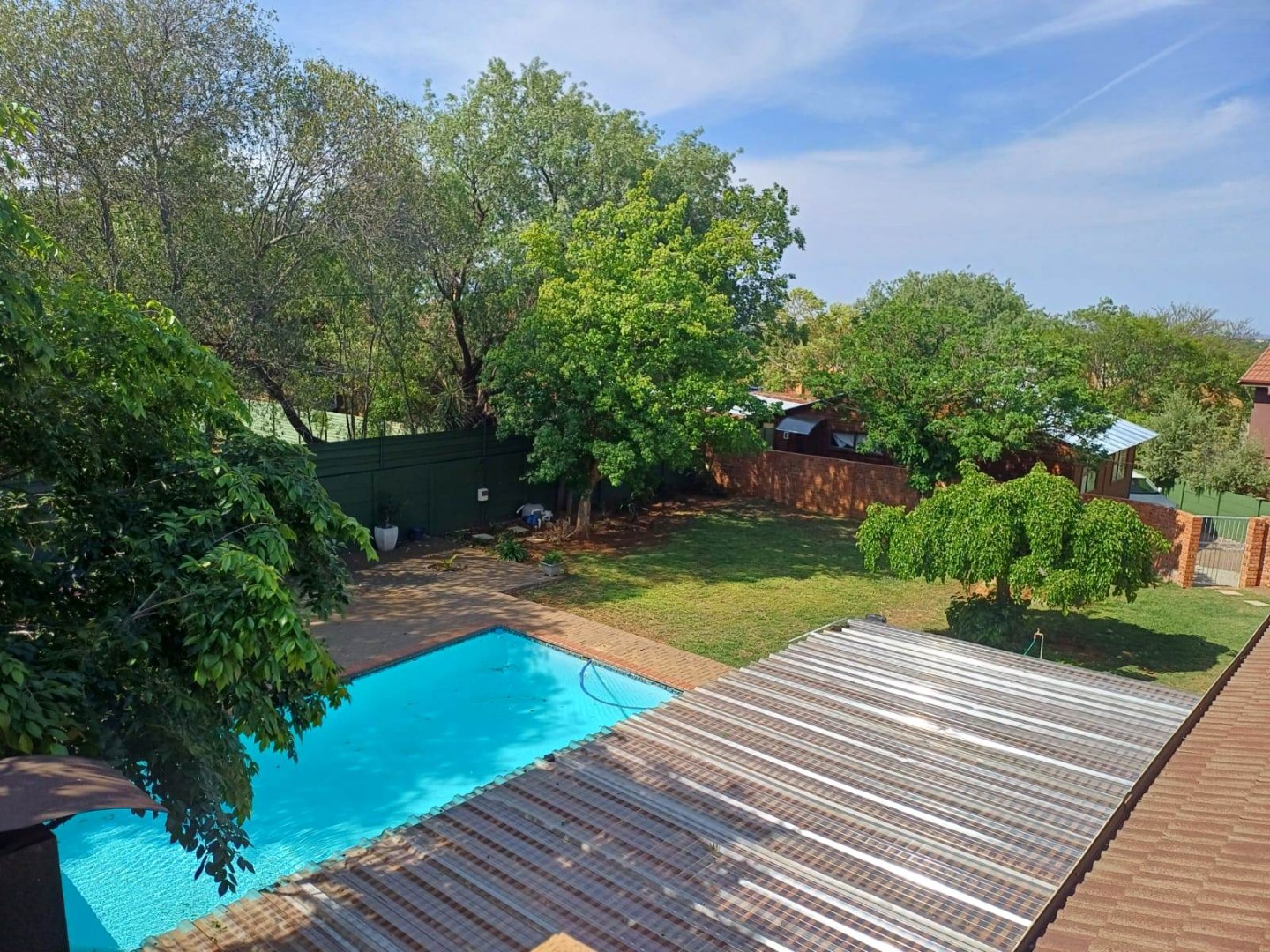 Energy and water independence set this property apart. The home is powered by an advanced solar system with an 8 kW inverter, 10 kW battery, and 18 solar panels, ensuring reliable, cost-effective living. A borehole with a 2,500-litre JoJo tank, a full irrigation system, and prepaid utilities further enhance sustainability and convenience.
