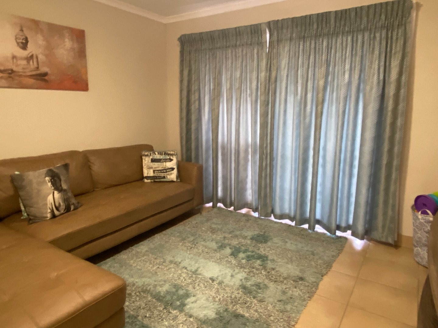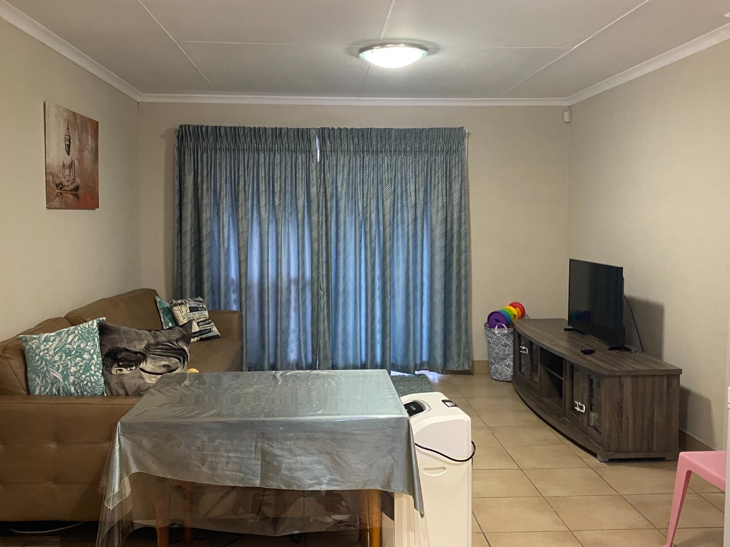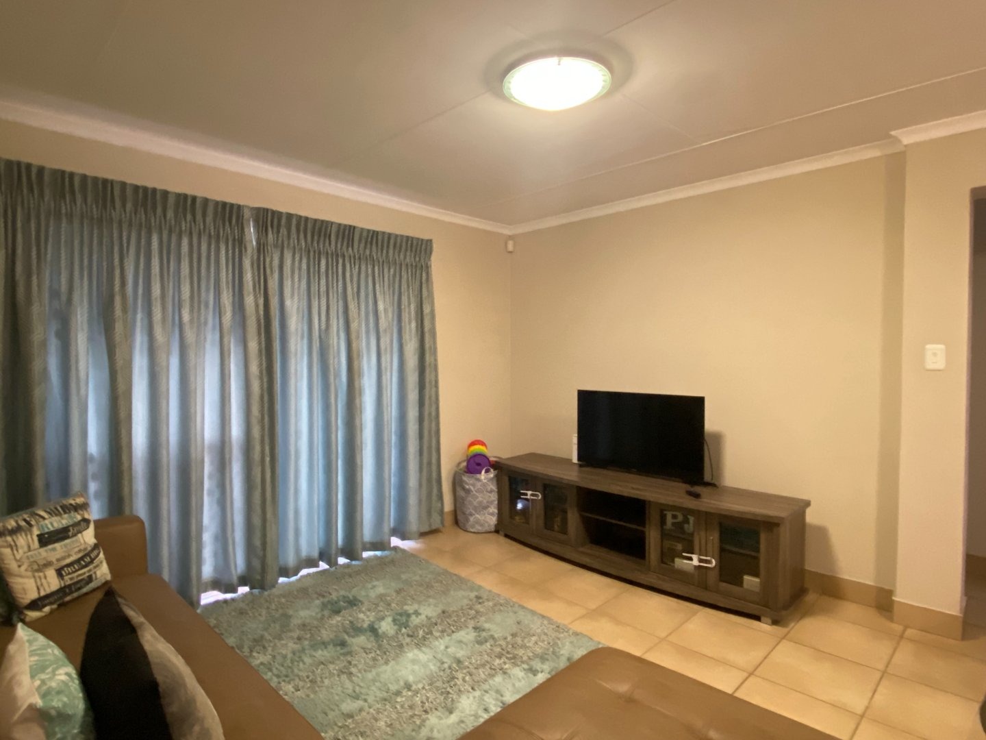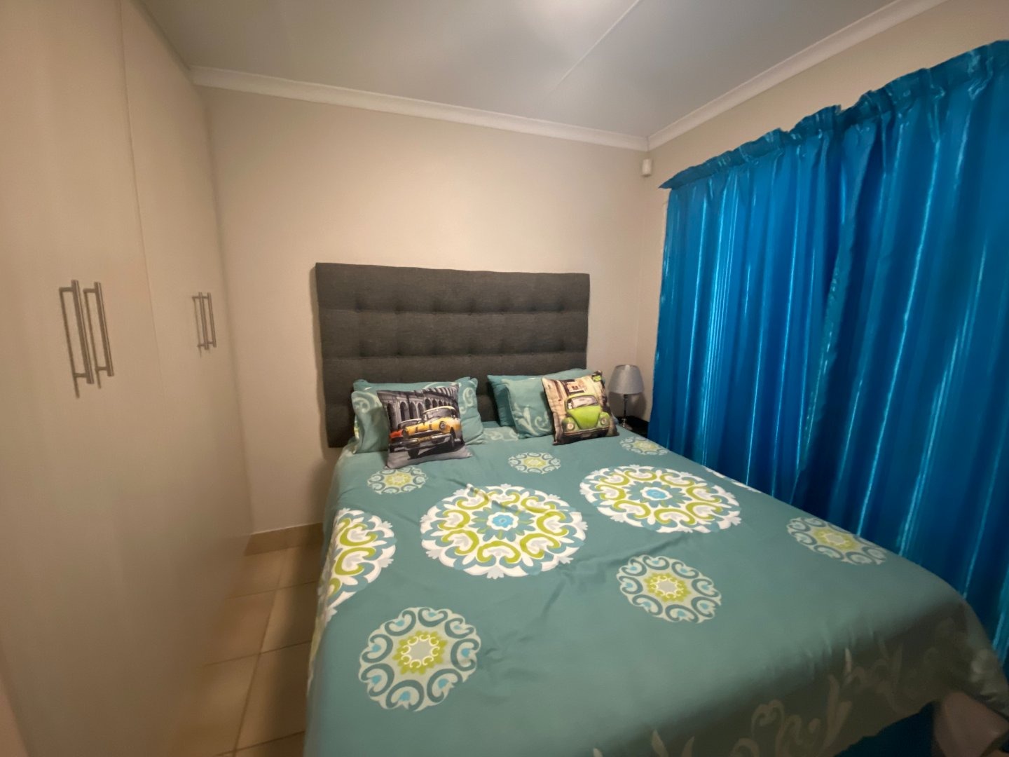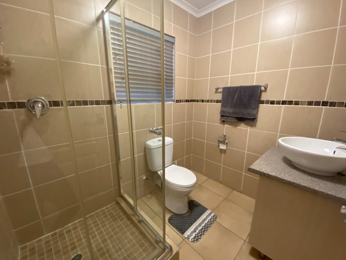 Charming 3 bedroom apartment with an open plan lay out for the living area and the kitchen. The kitchen with more than you need. Ample cupboards, electric hob, under counter oven, Water point for the washing machine, Eiland to use as breakfast nook. Tiles on the floor through out the whole unit. Blinds at almost all the windows. Spacious living area with sliding doors to the balcony.