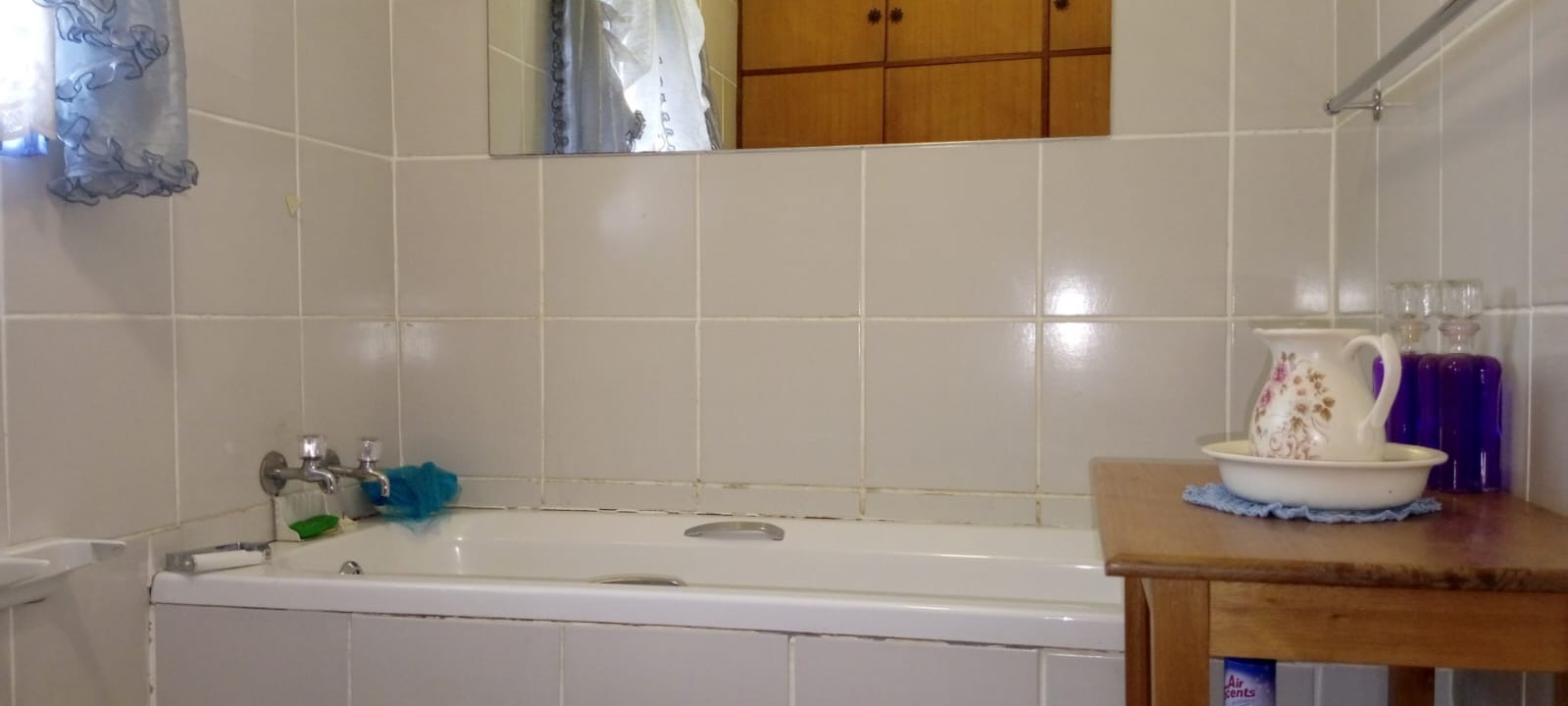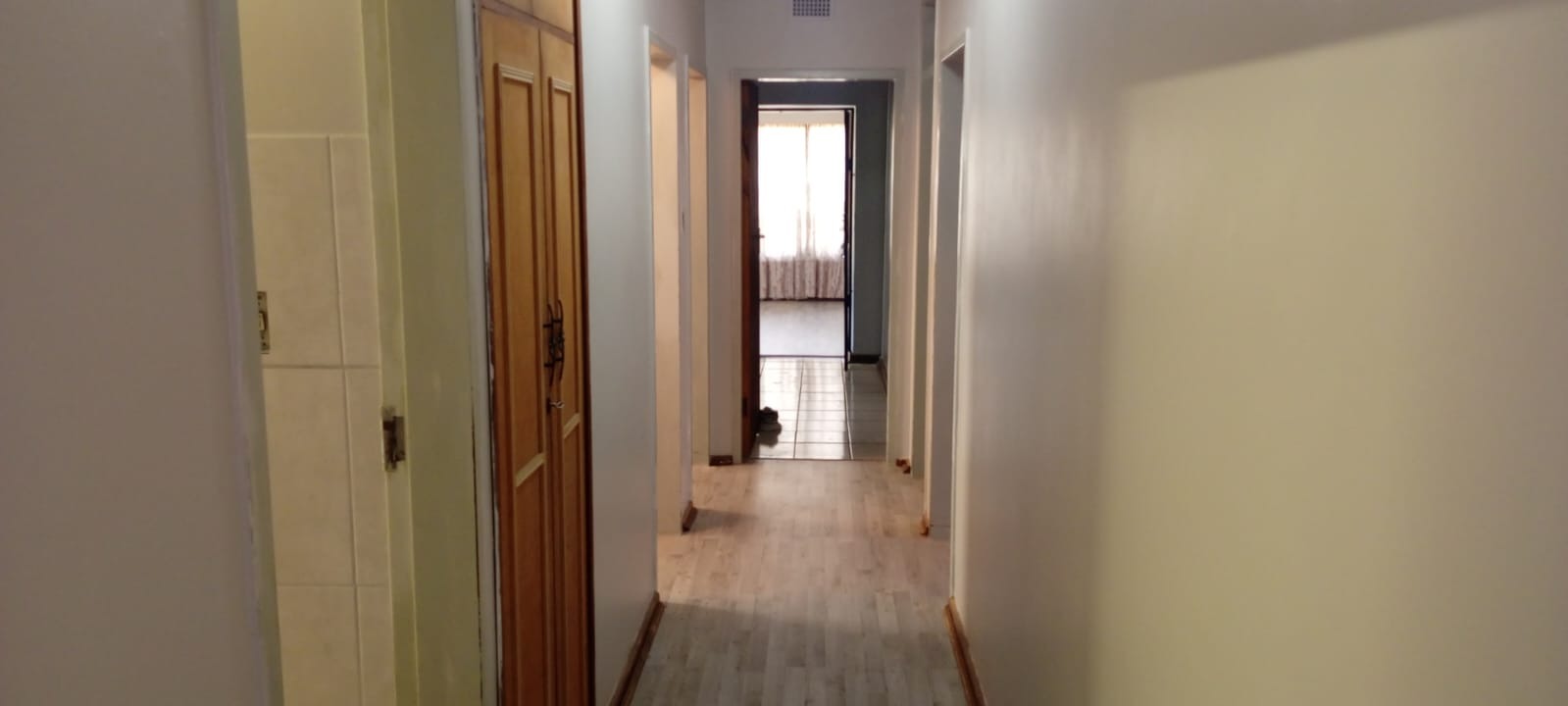 Enhanced security is provided by burglar bars, security gates, and a totally walled perimeter, ensuring peace of mind in this suburban setting.