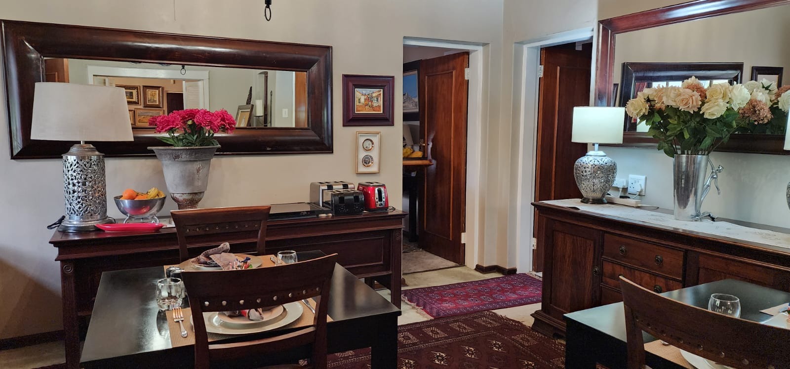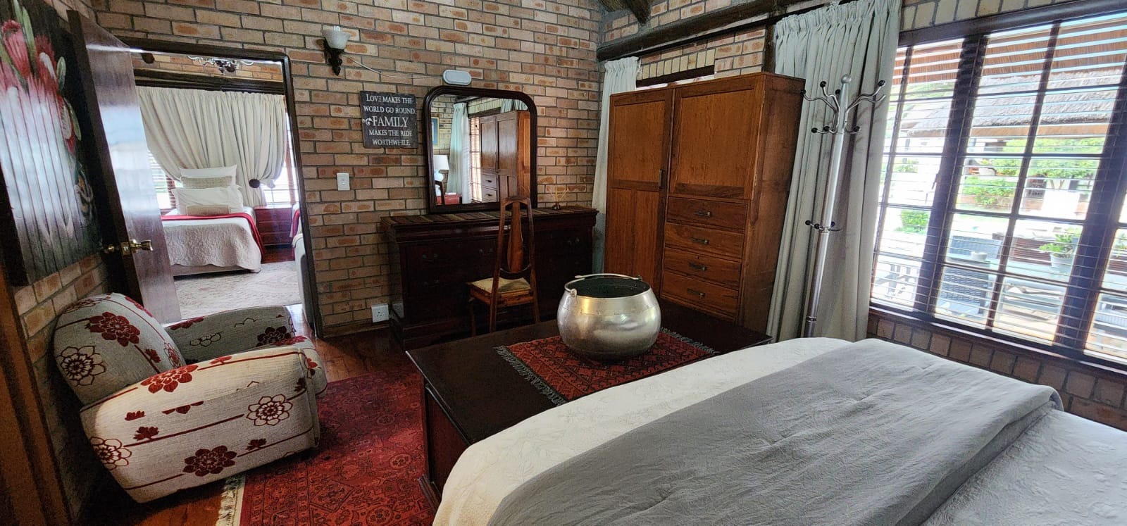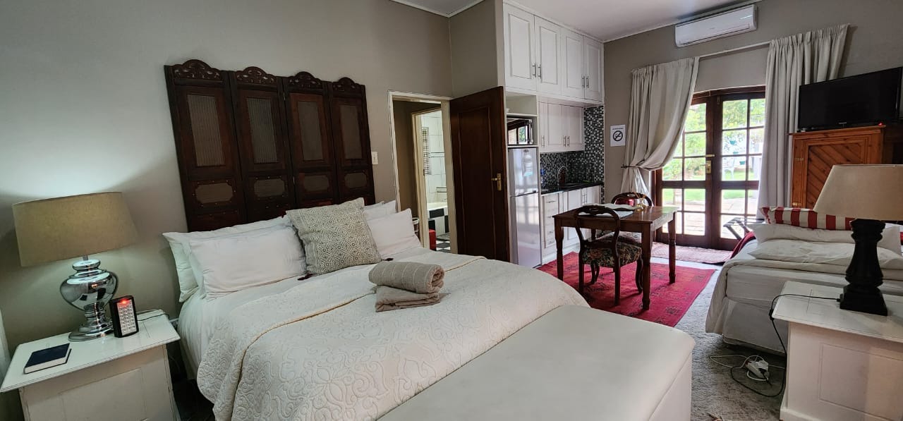 The charming family cottages are set near the sparkling swimming pool. The first cottage offers a bedroom with en-suite bathroom, while the second includes an en-suite bedroom, a lounge with 2 single beds and separate toilet and basin. Both cottages feature kitchenettes, making them ideal for extended stays or as income-generating Airbnb units.