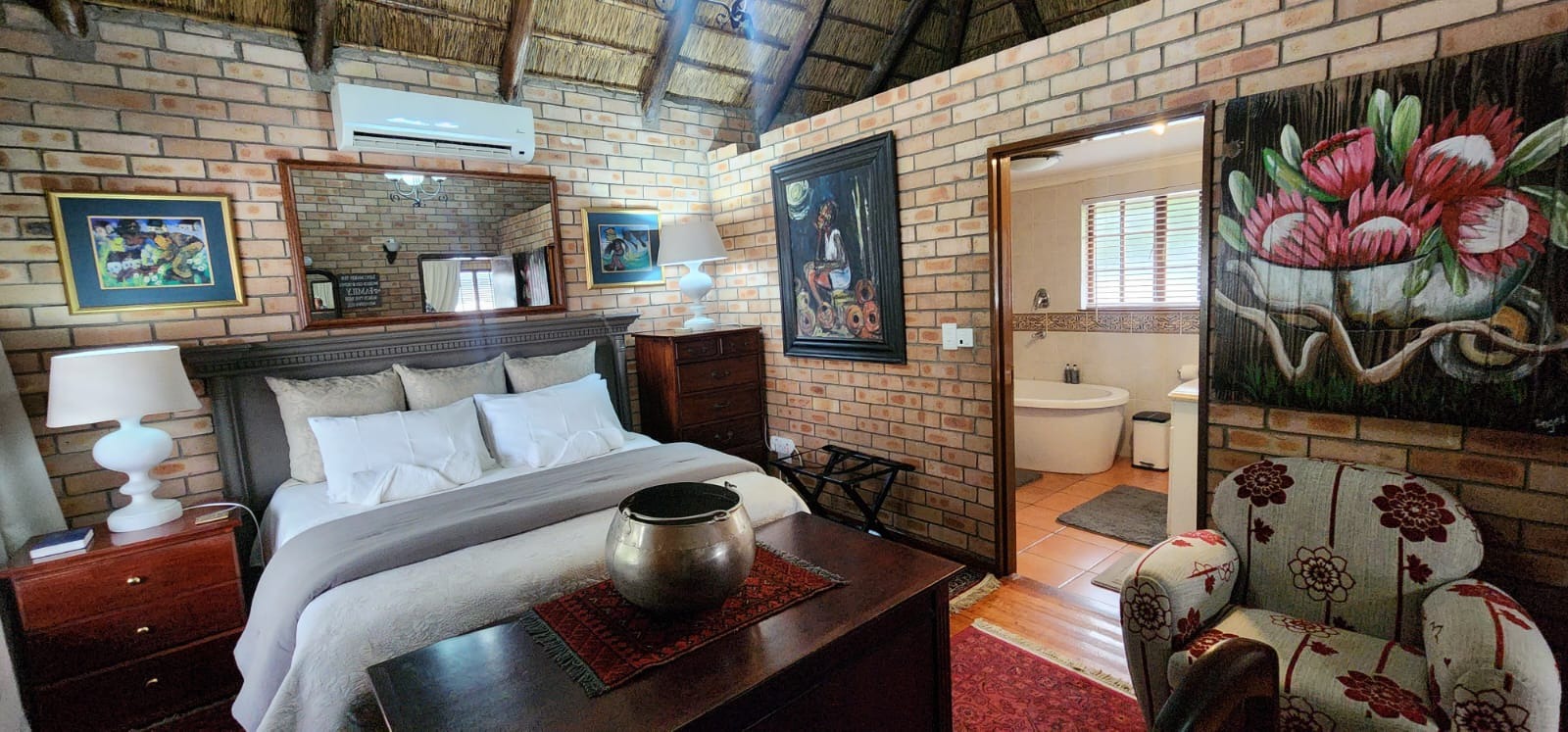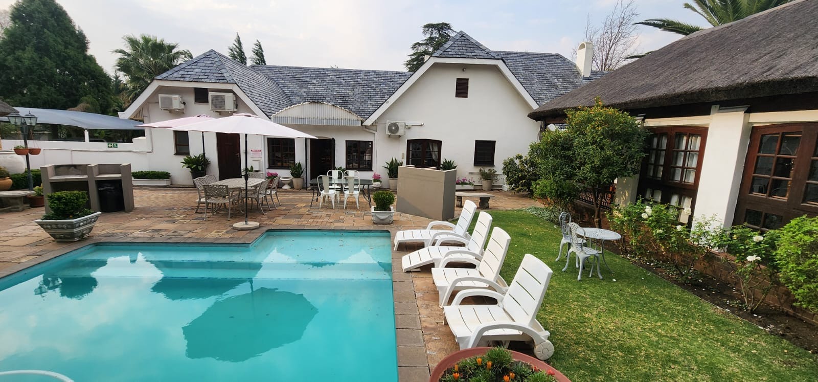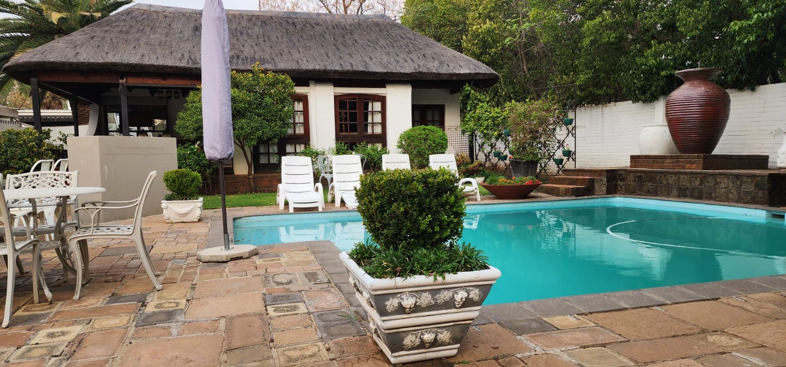 The charming family cottages are set near the sparkling swimming pool. The first cottage offers a bedroom with en-suite bathroom, while the second includes an en-suite bedroom, a lounge with 2 single beds and separate toilet and basin. Both cottages feature kitchenettes, making them ideal for extended stays or as income-generating Airbnb units.