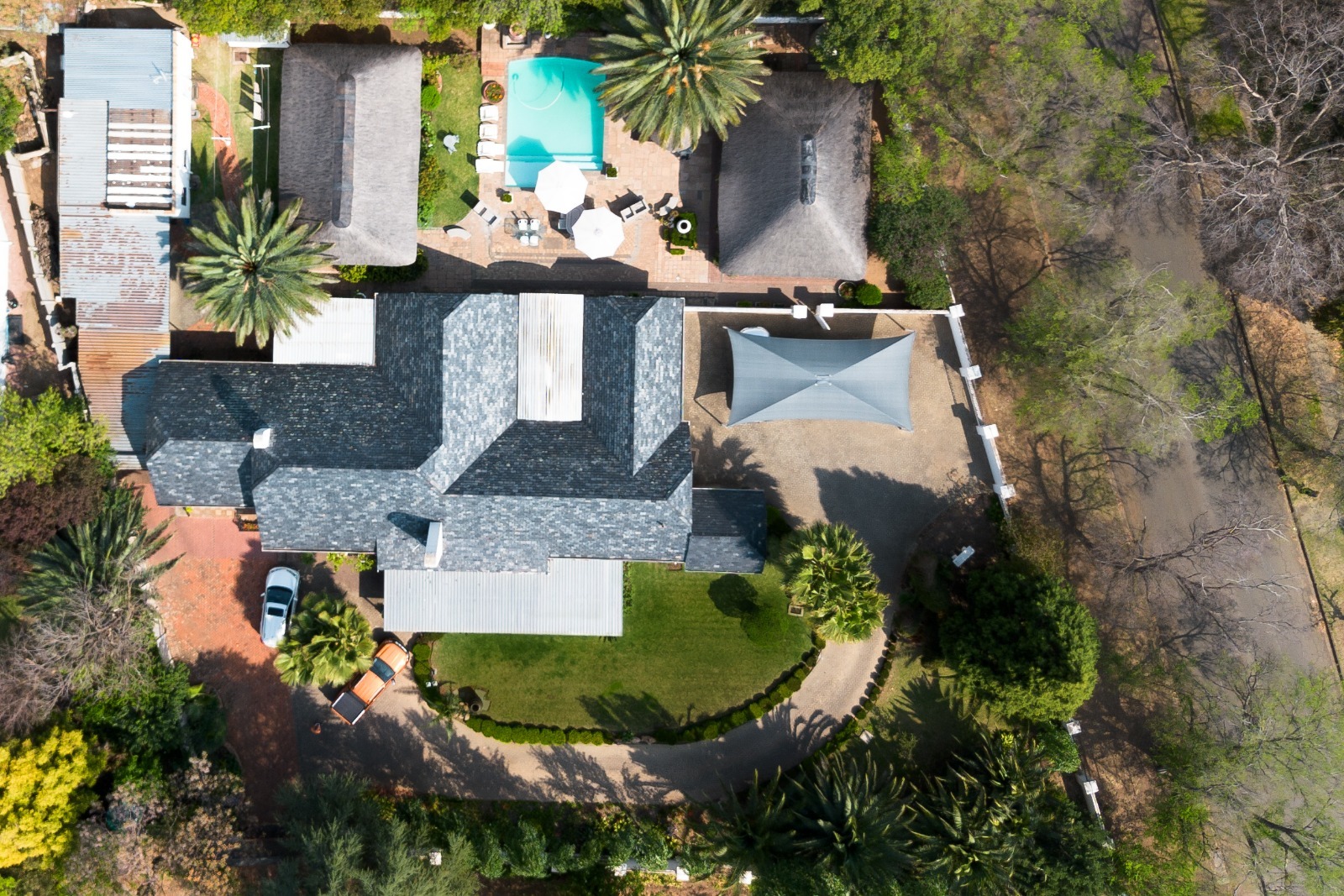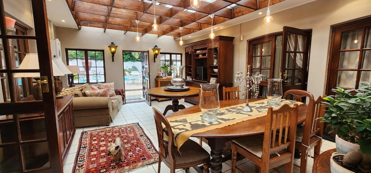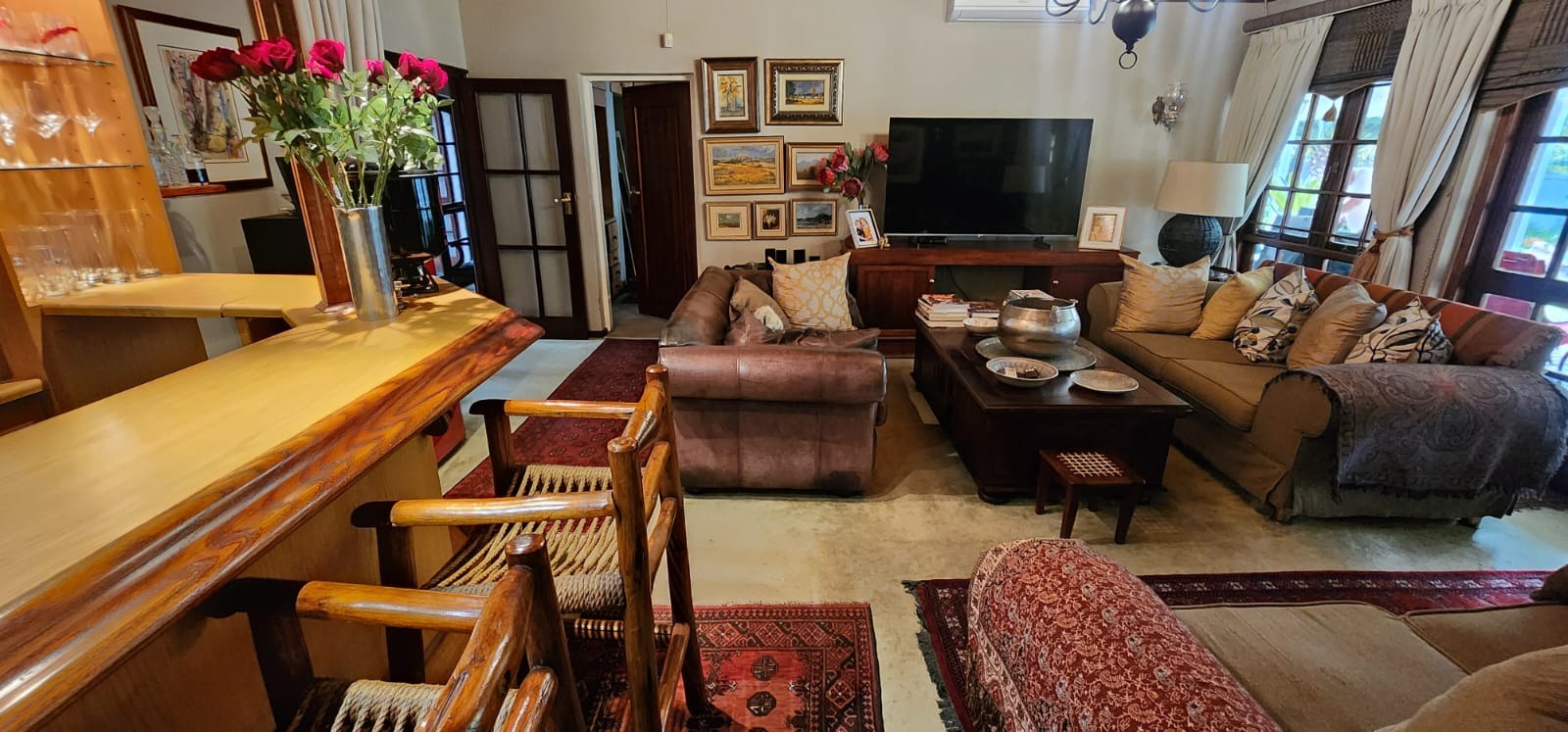 The property offers a total of 6 bedrooms and 6 bathrooms, comfortably accommodating 16-18 guests per night. All the bedrooms and cottages have private entrances. The main house boasts 4 spacious en-suite bedrooms, 3 of which are fitted with kitchenettes for guest convenience. The fourth bedroom has a lovely dressing room with ample built-in cupboards. The welcoming lounge, dining room, and bar area create a warm and inviting space for relaxation and entertaining.