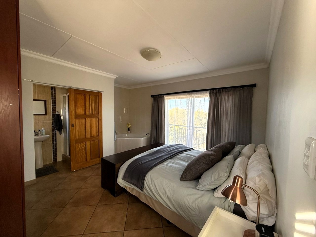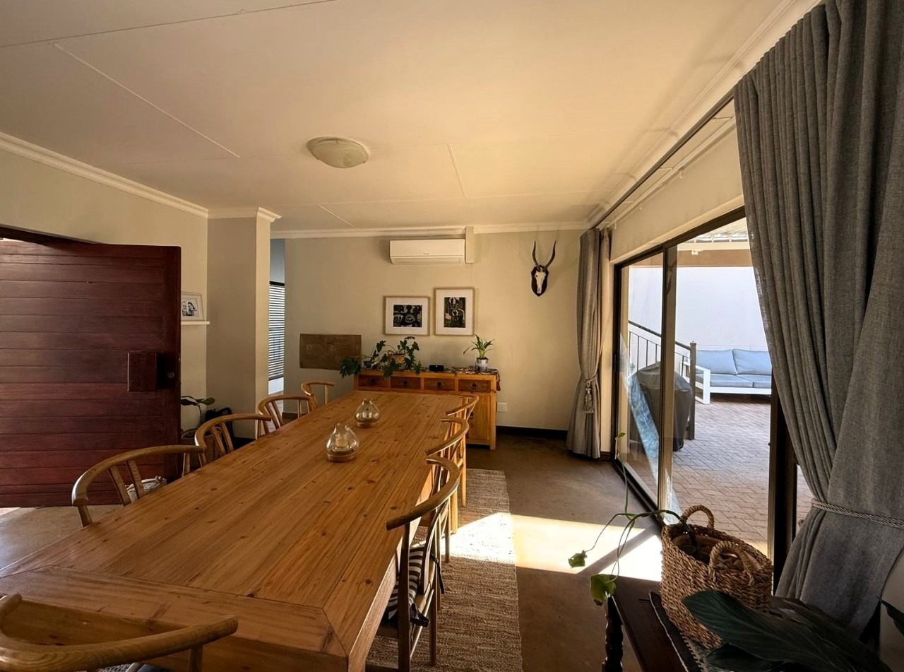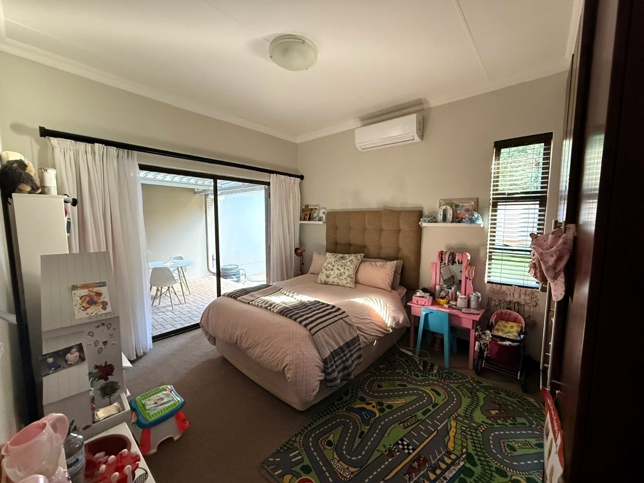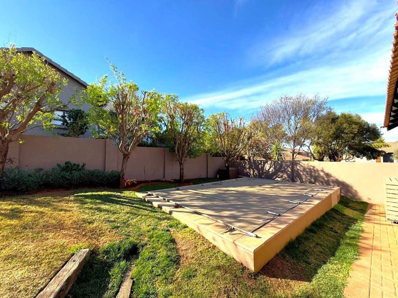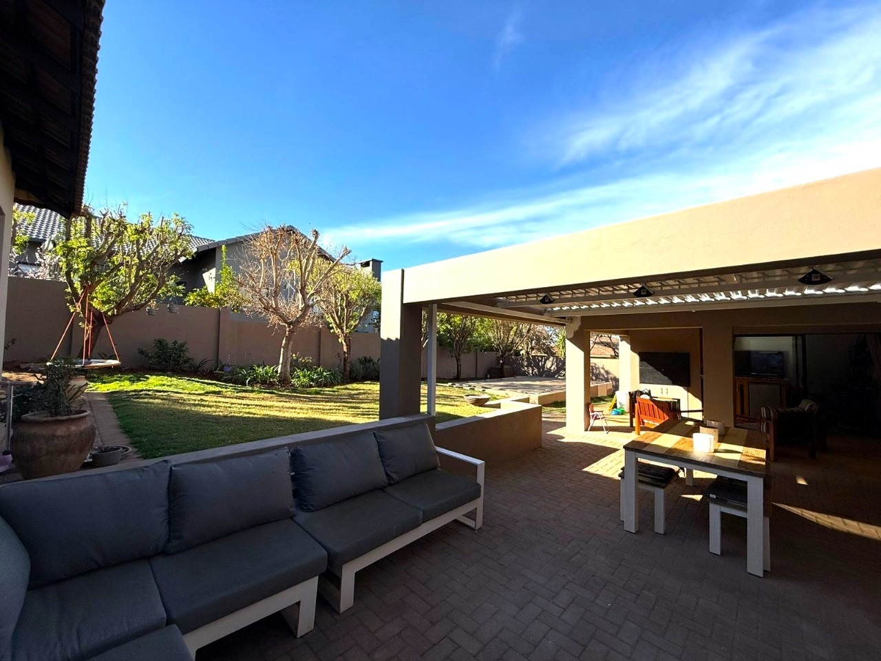 The open-plan kitchen, dining, and living area forms the heart of the home, complemented by a large scullery with space for all appliances. Sliding doors lead to a stylish braai area with an adjustable louvre roof, overlooking the pool and garden—perfect for entertaining.