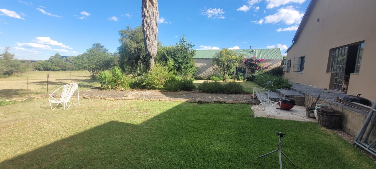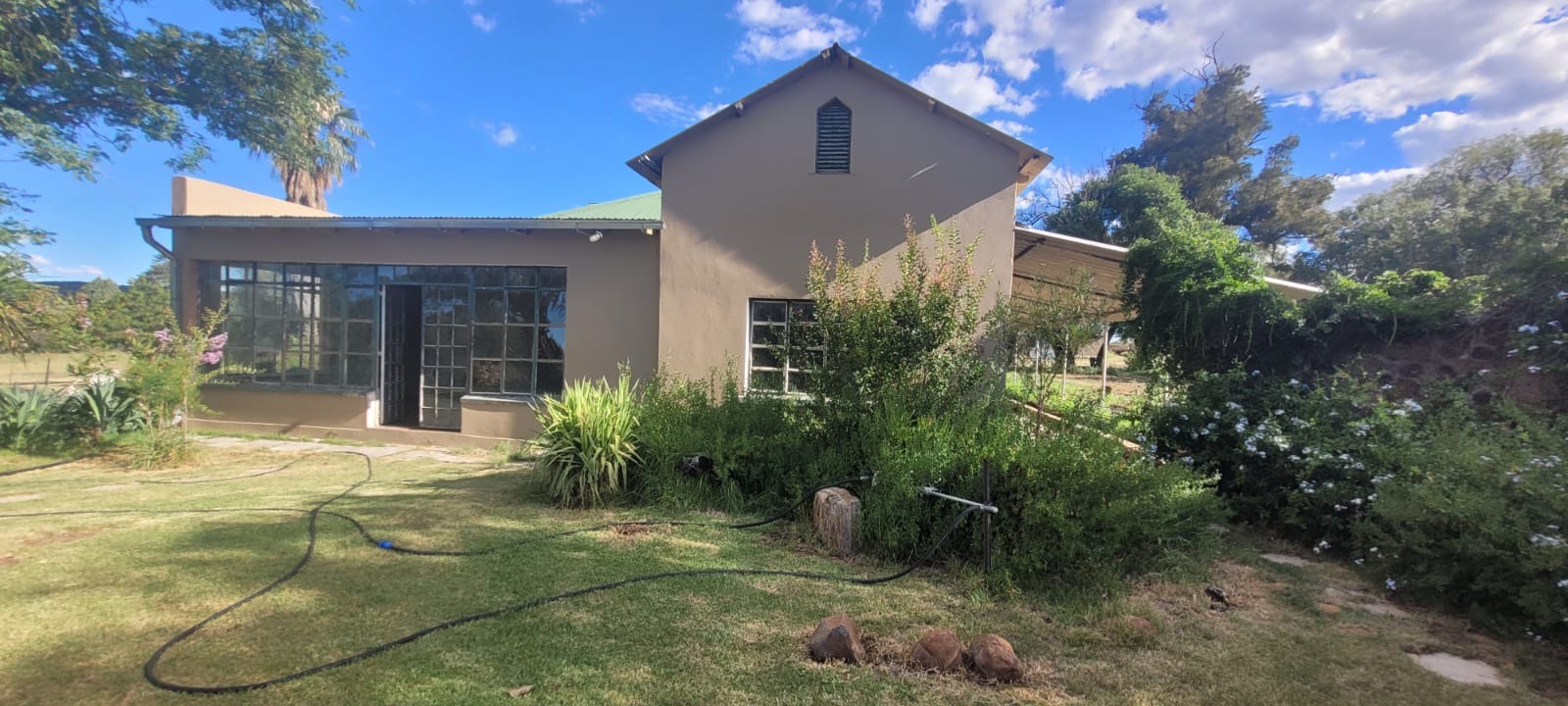 Landscaped Grounds: Lush garden with mature trees, flower beds, shrubs, and manicured lawns, all irrigated via dedicated borehole system.