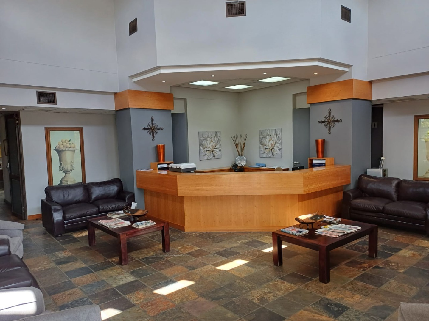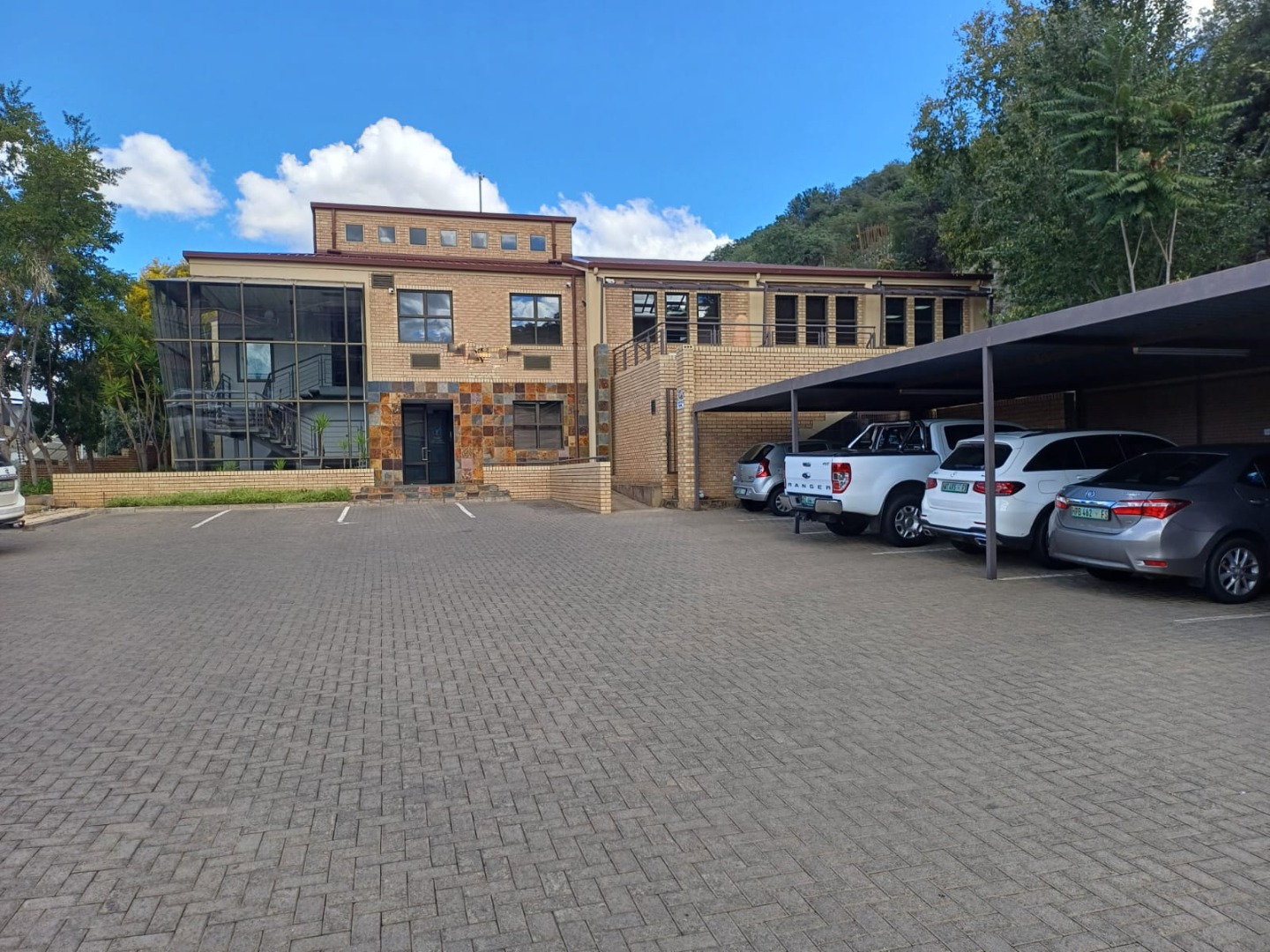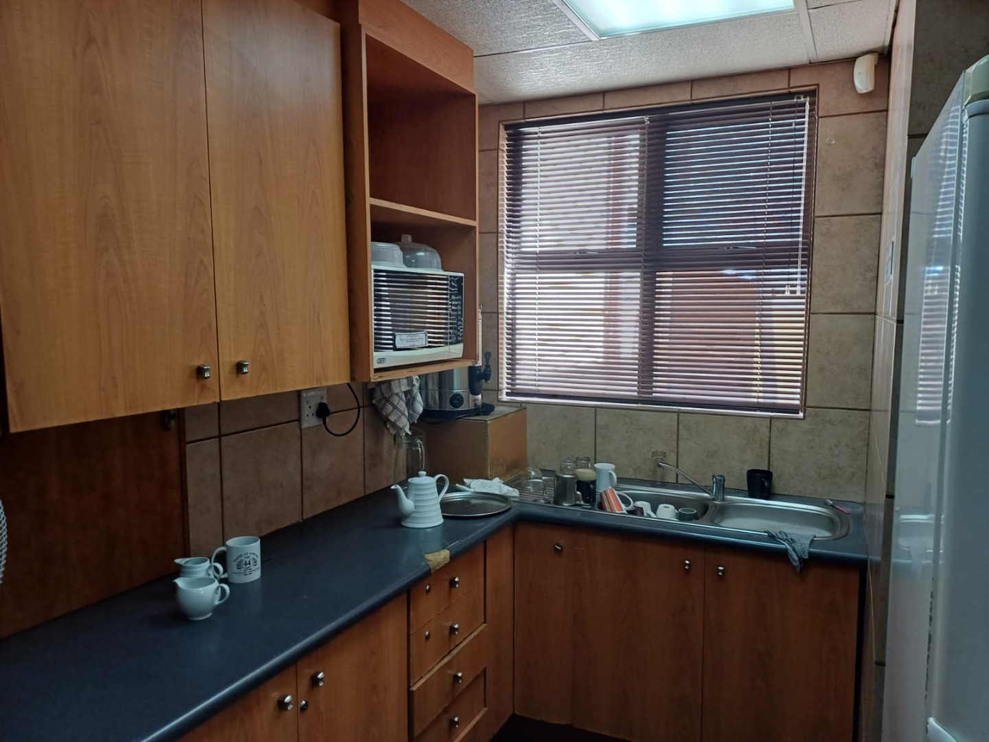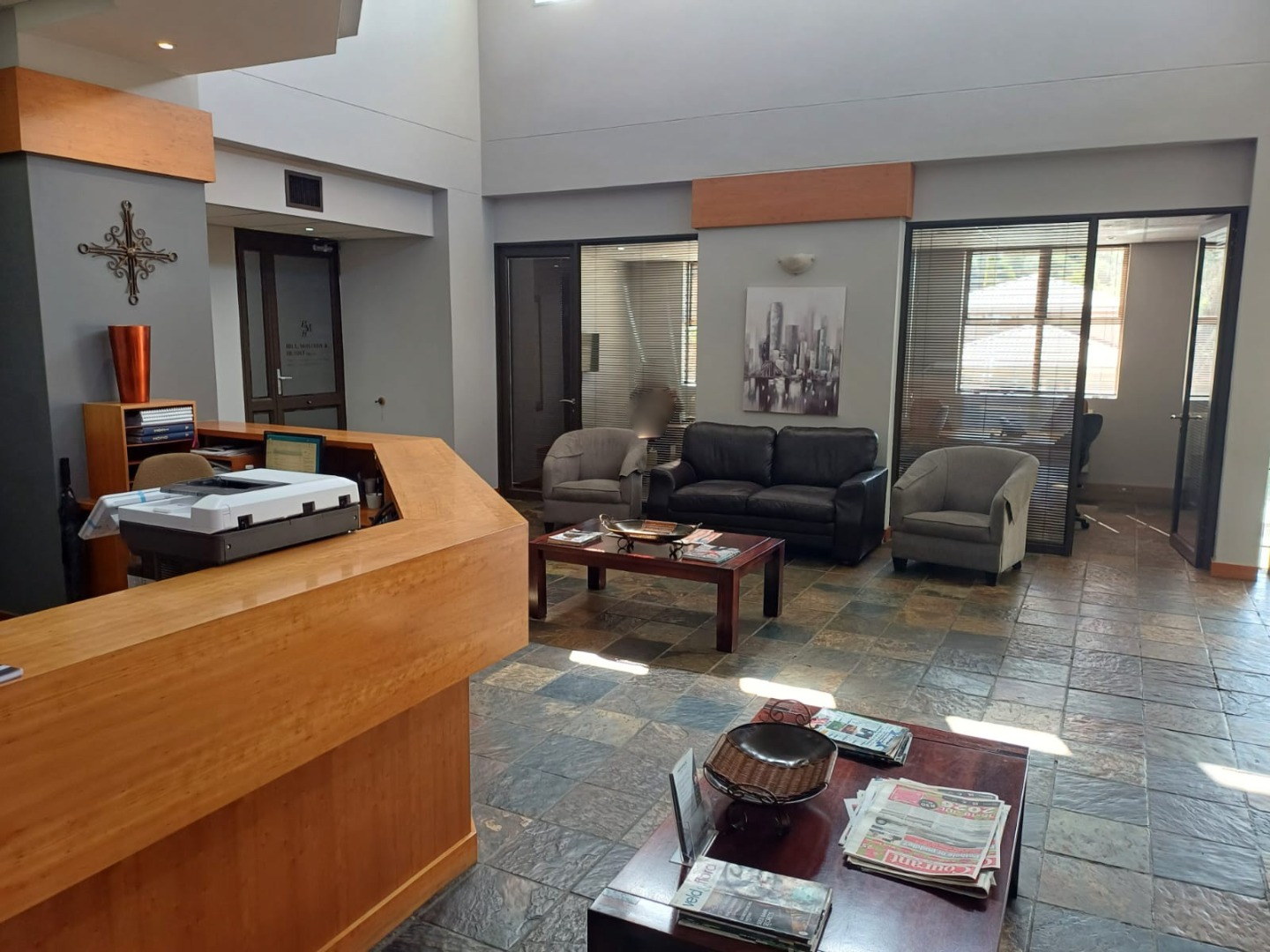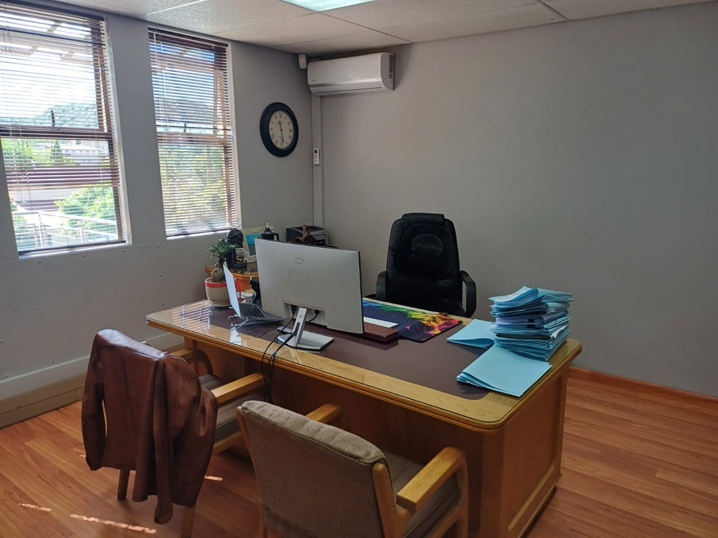 Unit 1 is the larger unit (726sqm) and is used as attorneys offices. The property build on a fairly steep incline and therefore unit 1 has a small lower level and the majority of the unit is on an upper level. The unit consist of the ground floor foyer leading up steps to the upper floor large reception area. This area to the sides has four consulting rooms for clients. Building L-shaped and to one side is a payment window, accounts offices with walk-in safe, two sections of general offices, attorneys' offices, kitchenette and bathrooms. To the other side is one large general office, more attorneys' offices and the firm's boardroom/legal library/entertainment area. This area opens to the back to a under cover patio/braai area and garden.