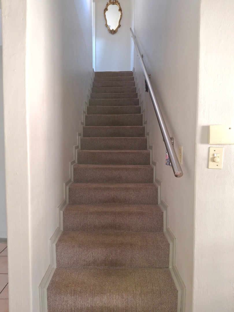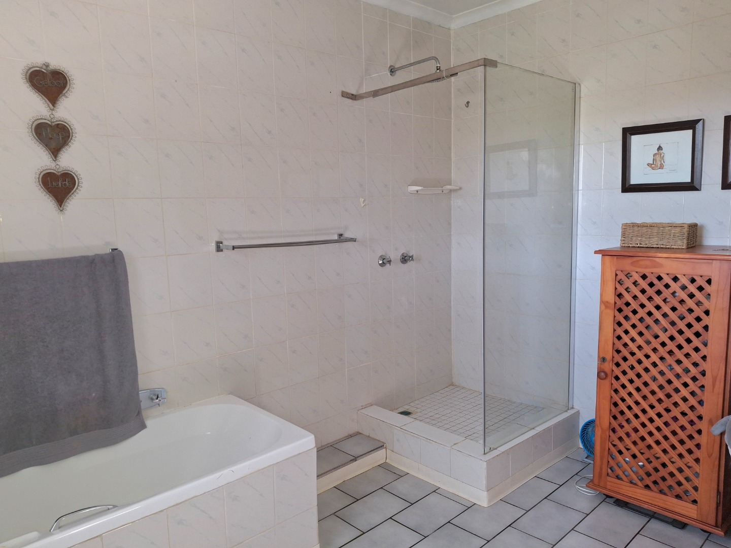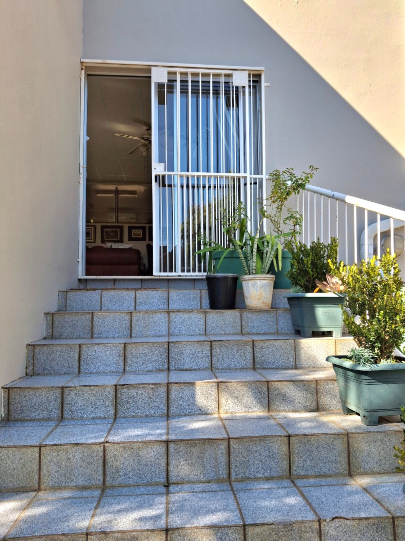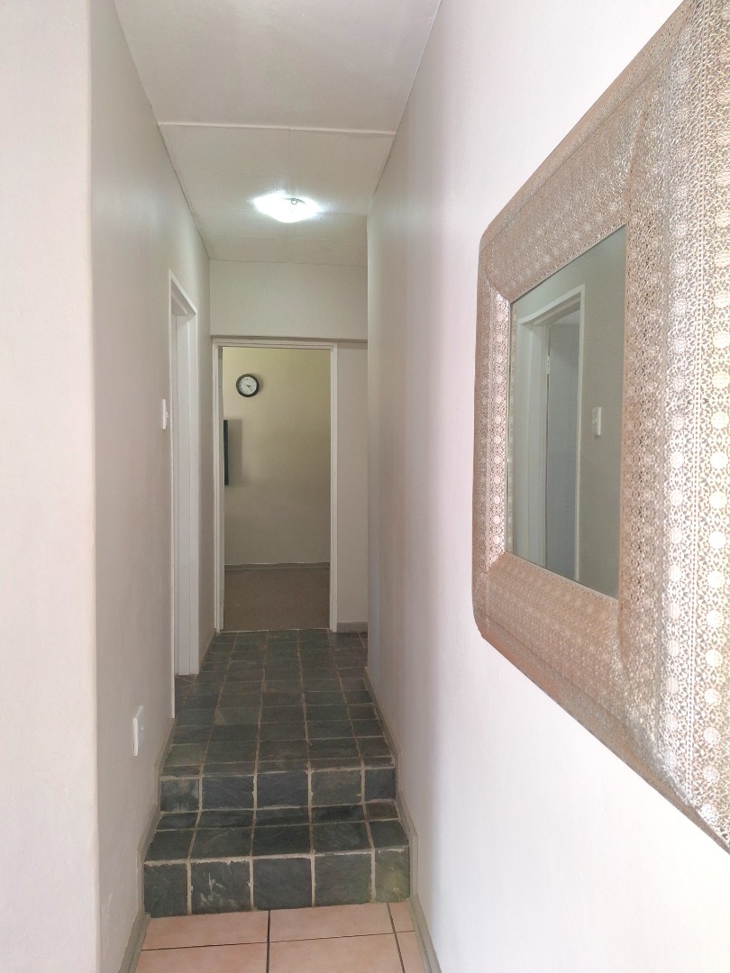 The stairs lead to the open-plan kitchen, braai room, and separate laundry. The second pair of stairs leads to 2 additional bedrooms, a central bathroom, and built-in storage, which completes this level.
