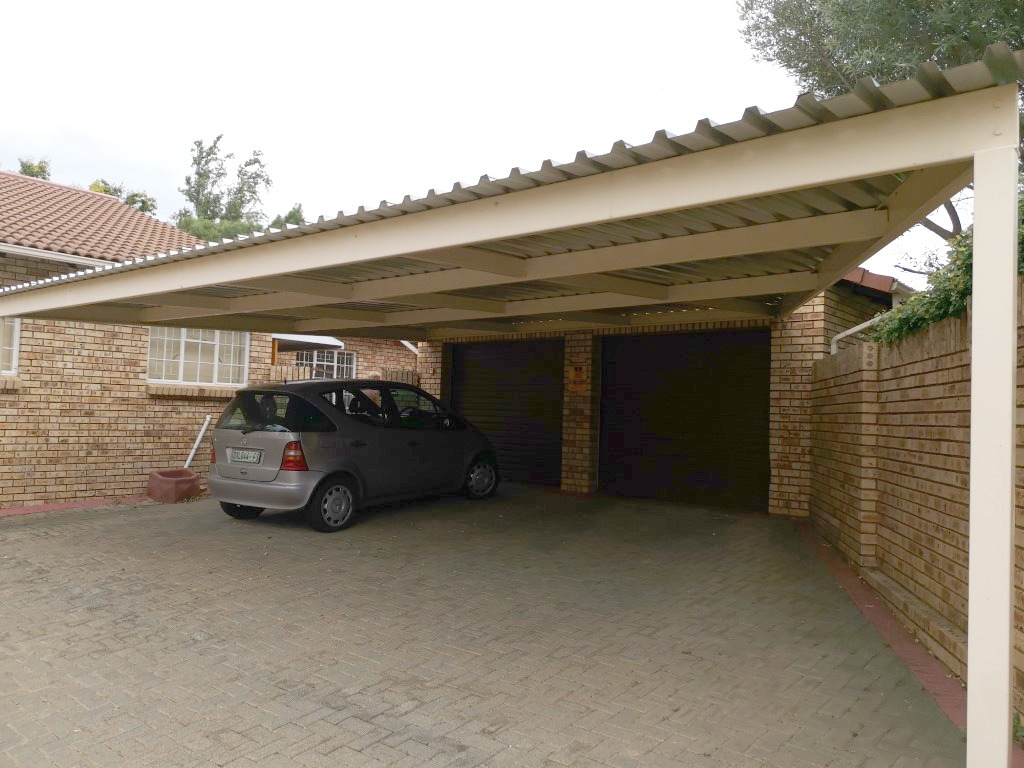 A double garage with built-in cupboards and a double carport provides ample parking and storage space. The property is equipped with a reliable alarm system for your peace of mind.