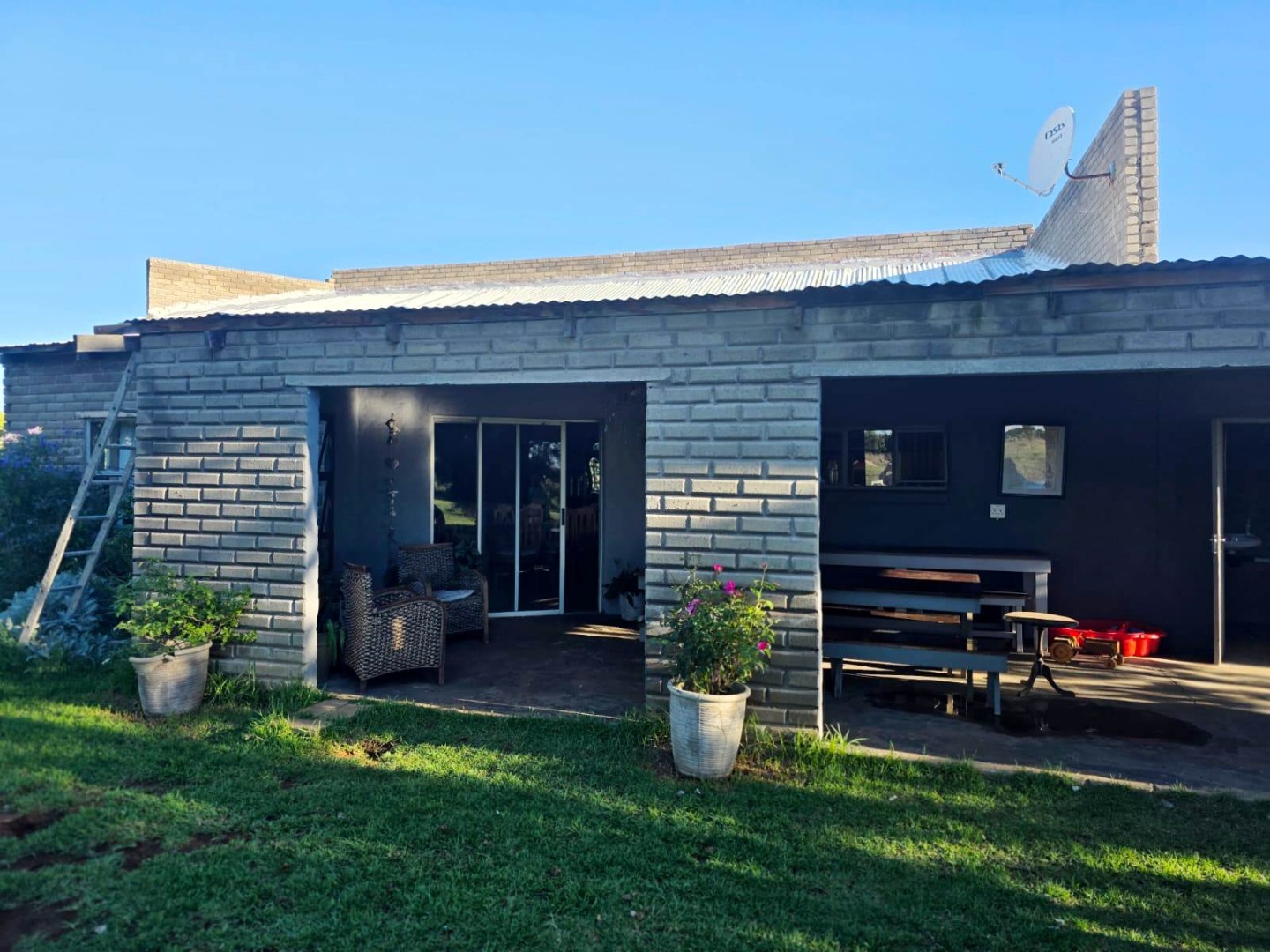 The first house is a spacious family home featuring a generous layout, a welcoming veranda, and a built-in braai area ideal for relaxed entertaining and enjoying the outdoors. The second dwelling offers three bedrooms, two bathrooms, and an open-plan living area with kitchen, creating a modern, practical space well suited for extended family, rental income, or staff accommodation. A third house provides one bedroom, a bathroom, and a kitchen, perfect as a cottage, guest unit, or additional rental opportunity. The fourth house is currently under construction, already built up to roof height, and designed to accommodate two bedrooms and two bathrooms once completed, giving the new owner the opportunity to finish it according to their own style and needs.
