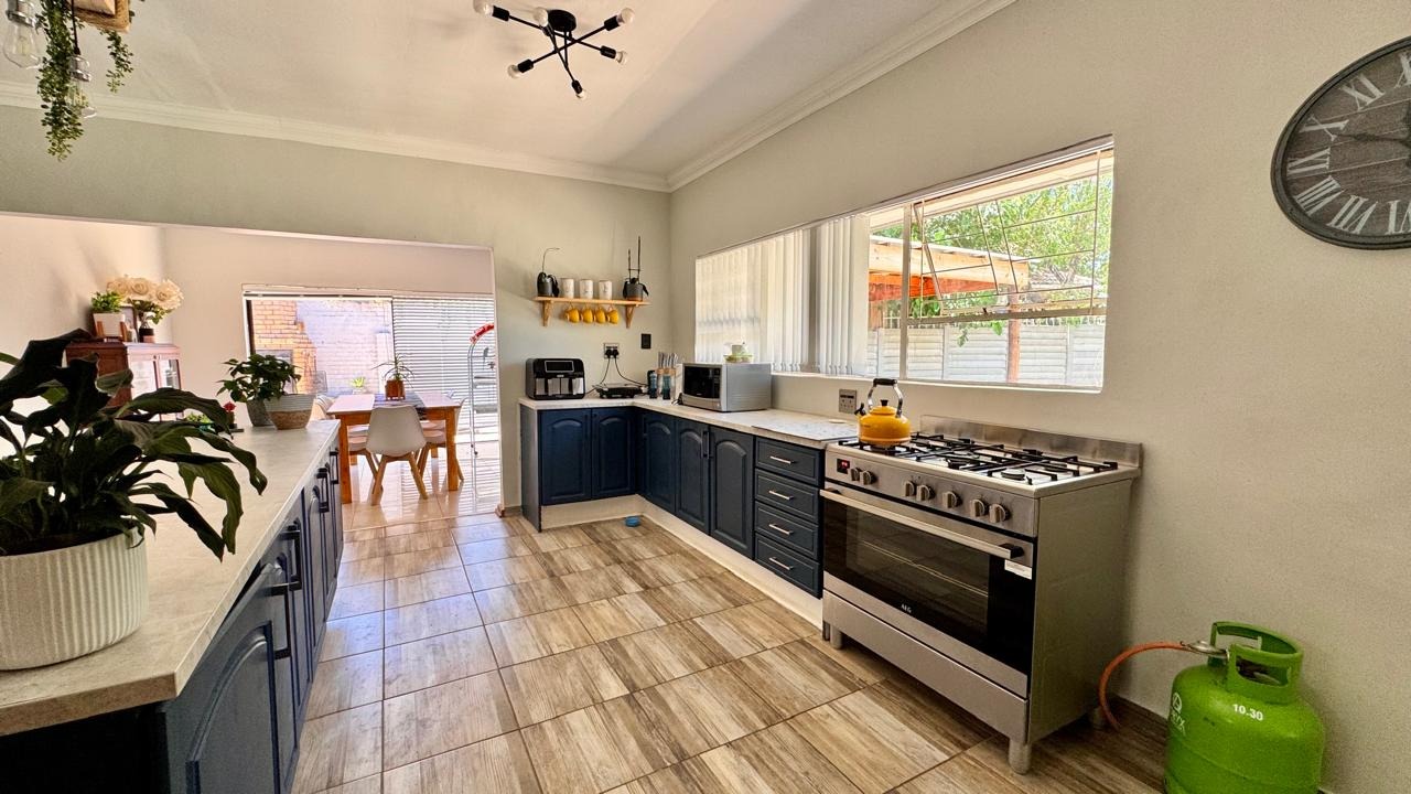 The kitchen offers ample built-in cupboards, a gas stove, breakfast nook, pantry, and a separate scullery and laundry for added convenience.