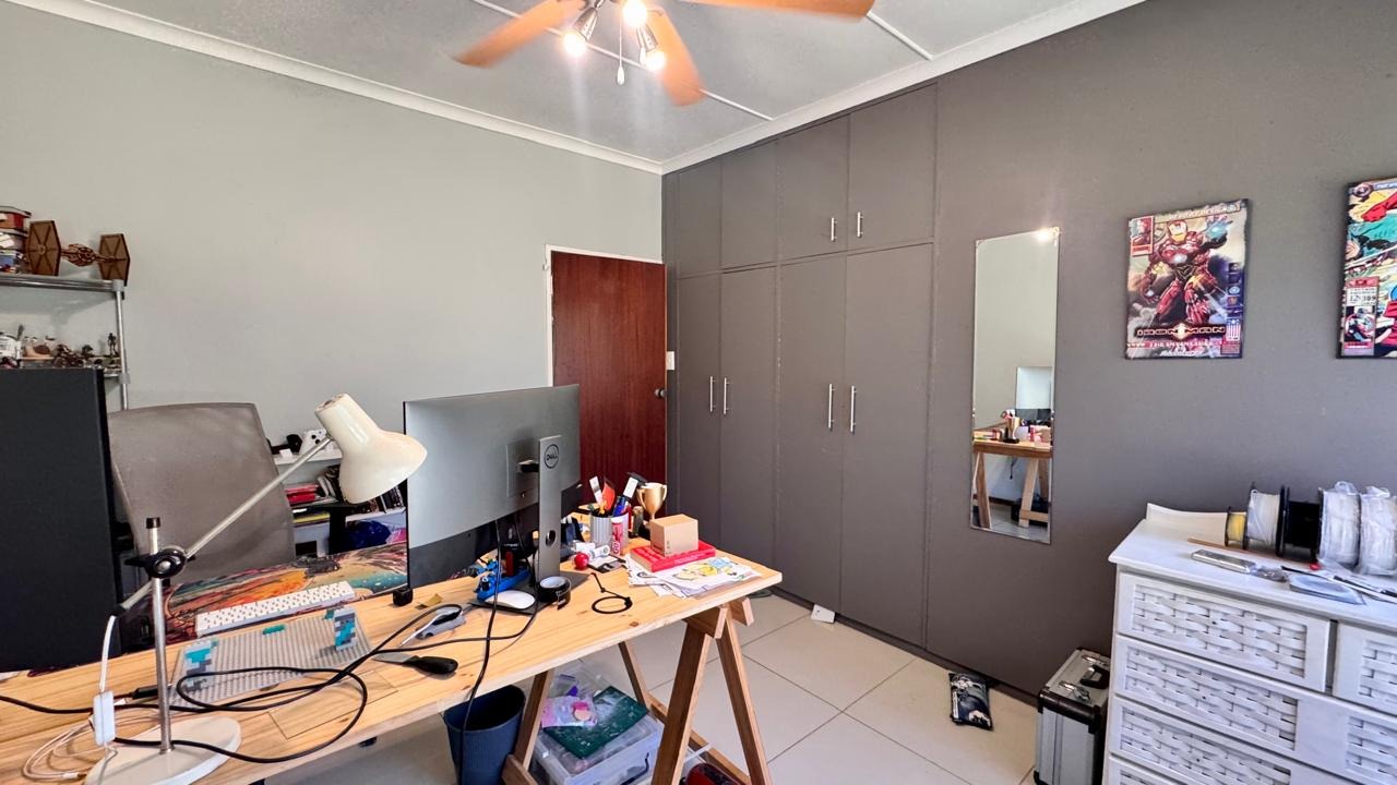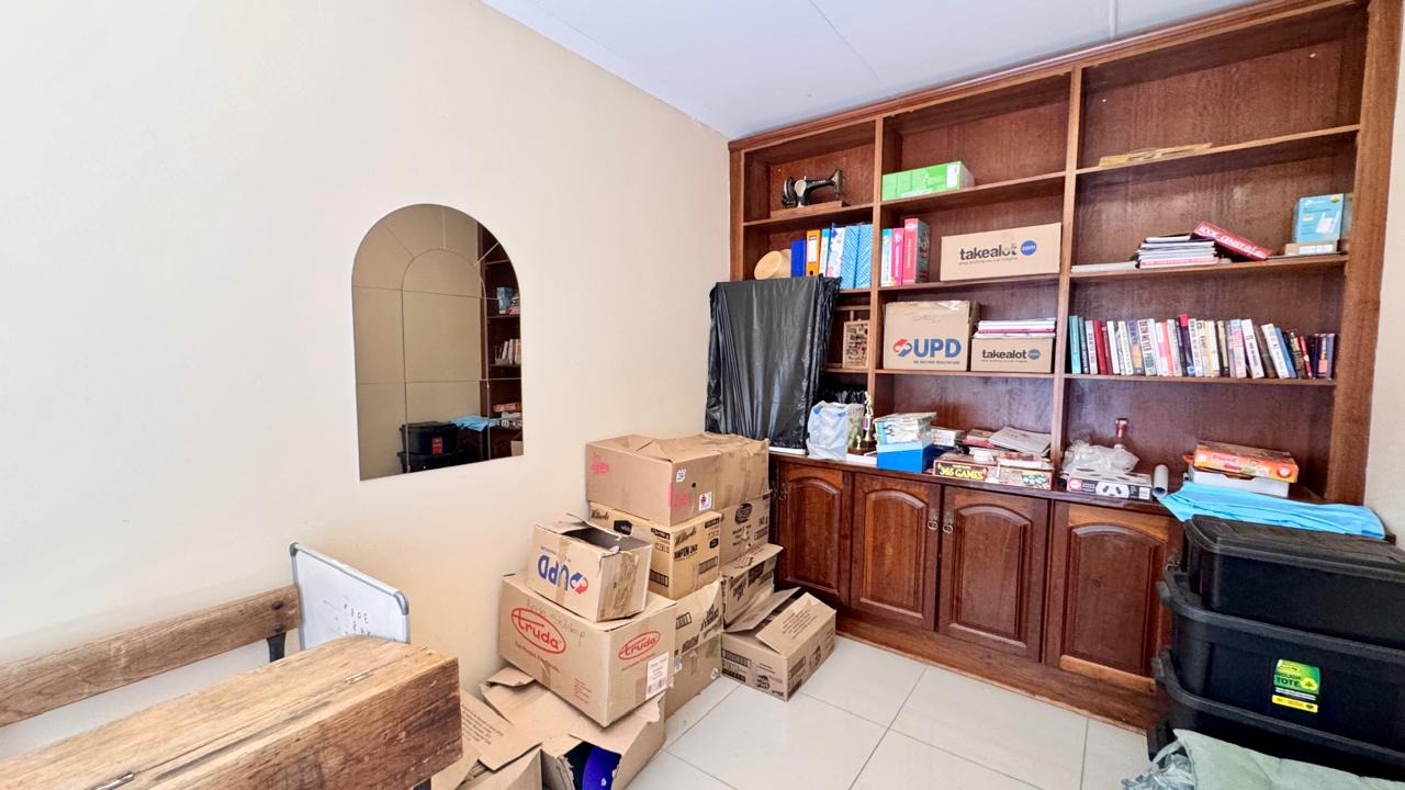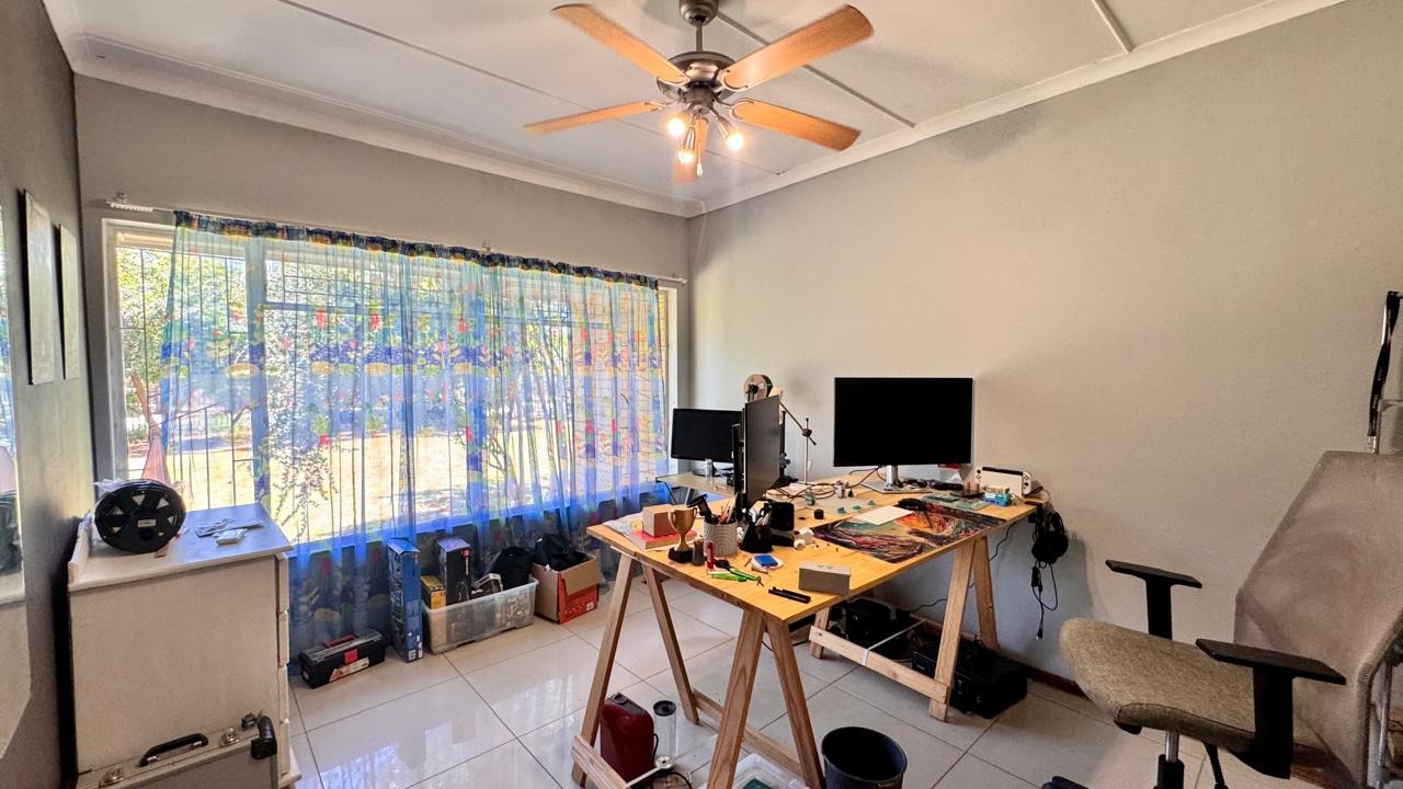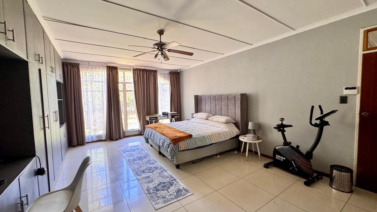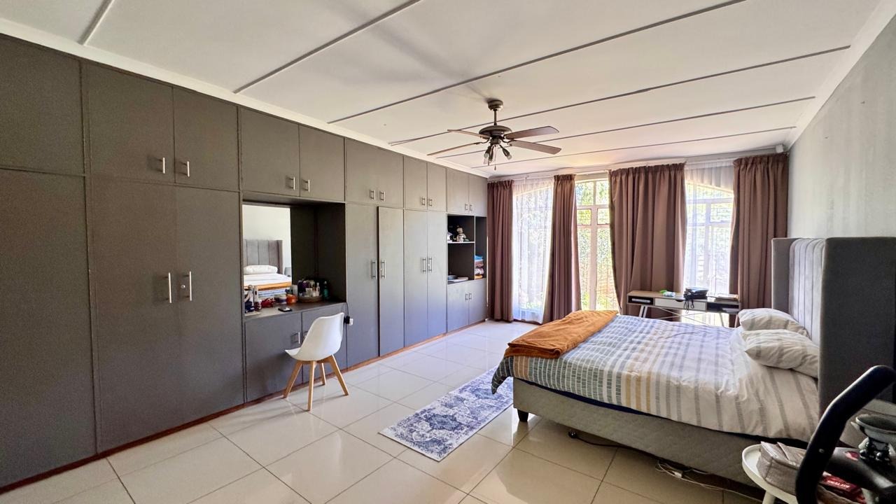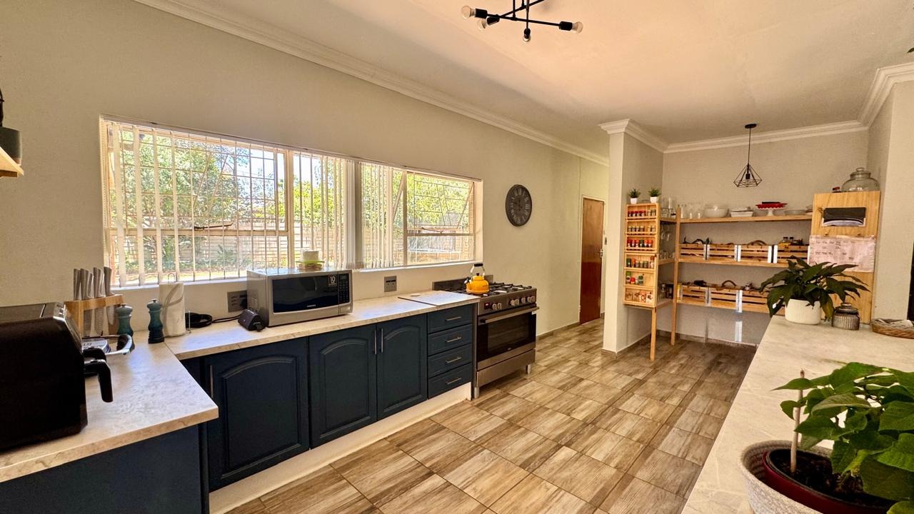 Outside, the heated swimming pool is complemented by a patio area, creating the perfect setting for relaxation. Additional features include home automation for most appliances, a smart geyser, smart irrigation system, external beams, and a gas stove. Two of the three garages are fitted with electric doors.