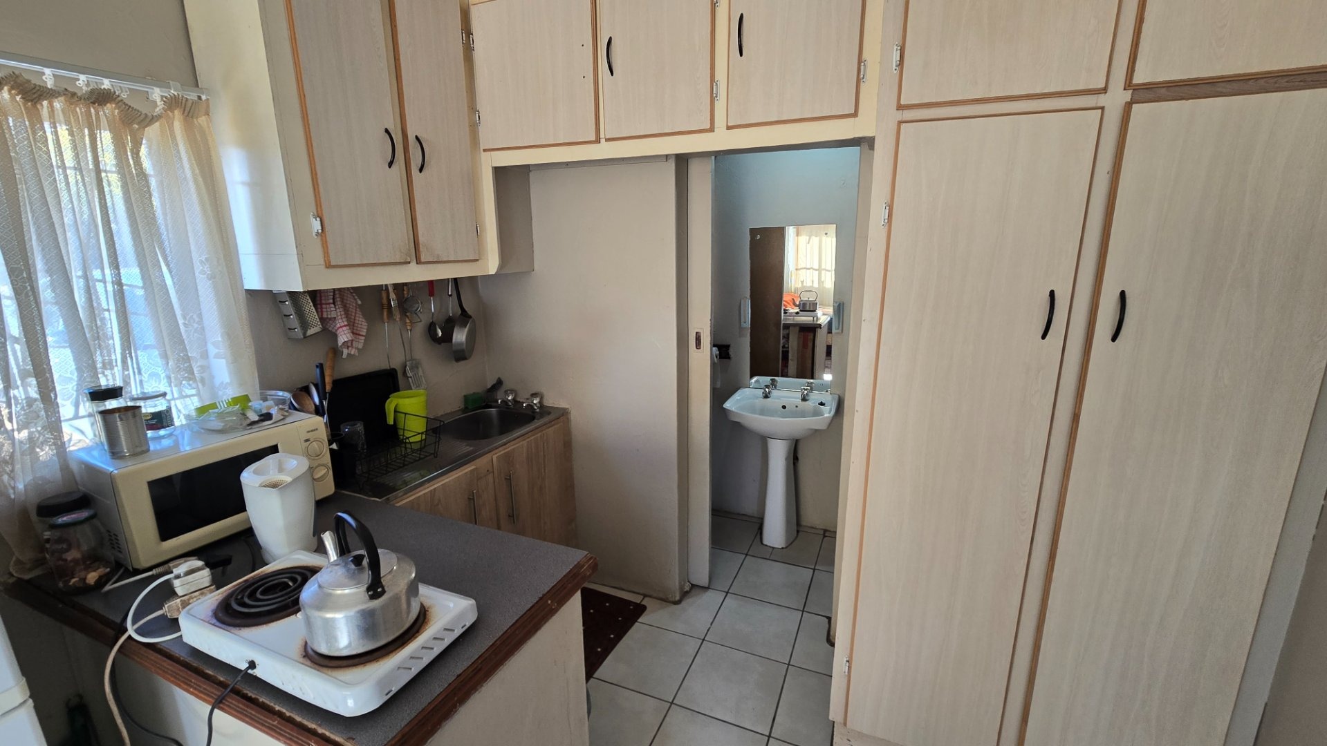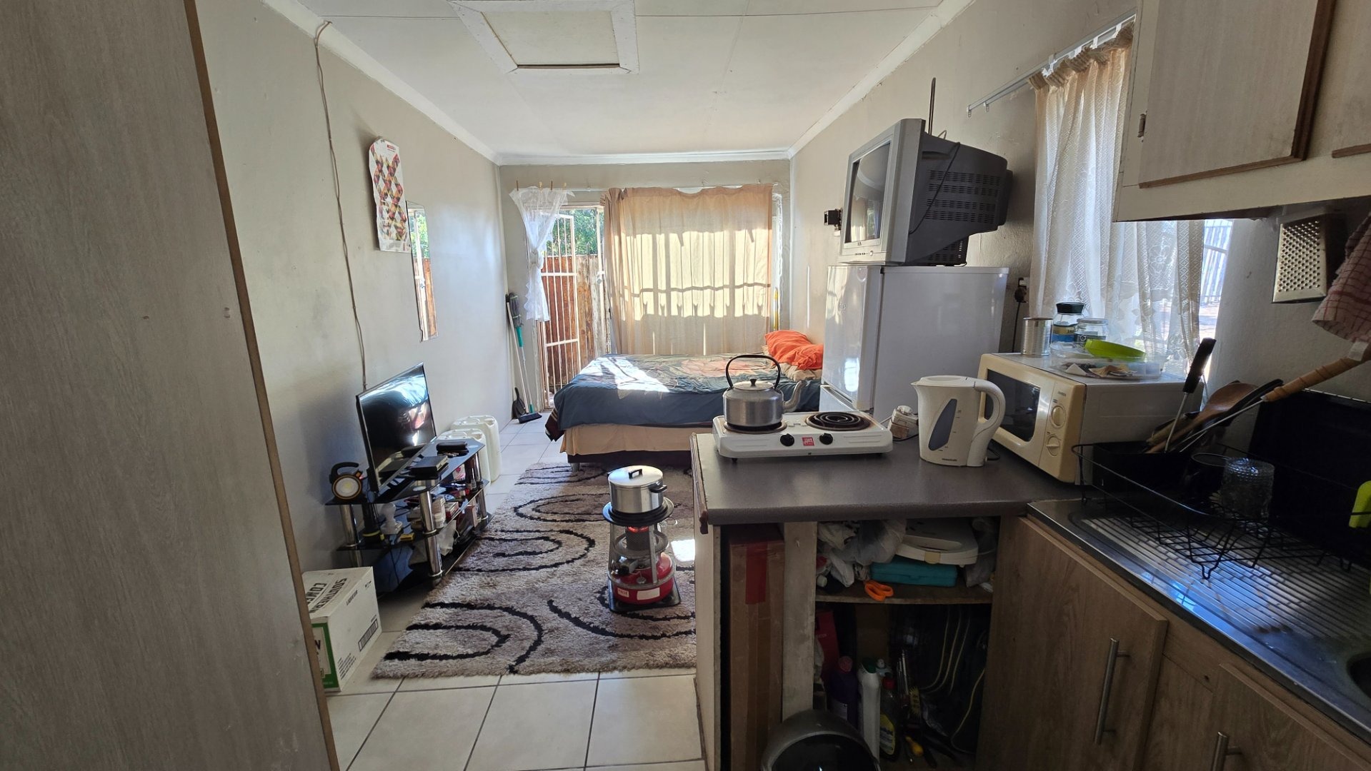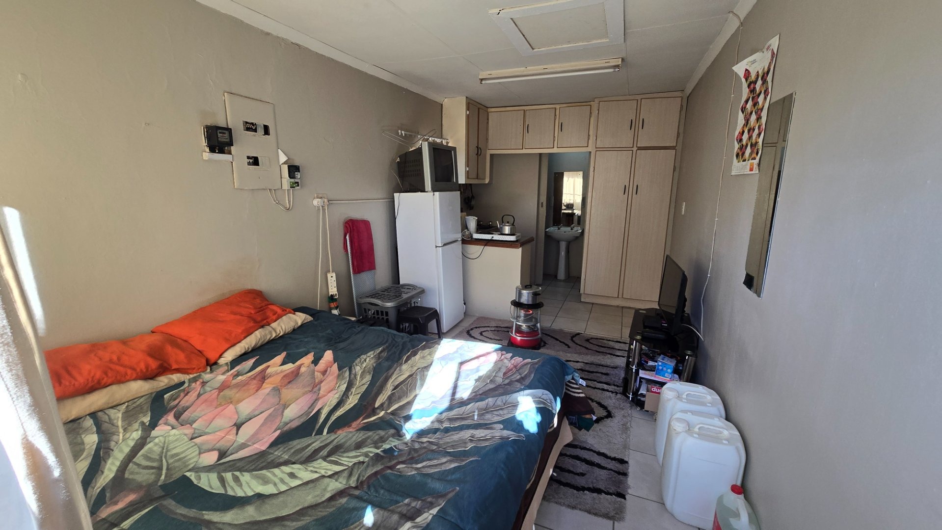 Flatlet 1: Neat bachelor’s pad with a private kitchenette and bathroom—perfect for a single professional.