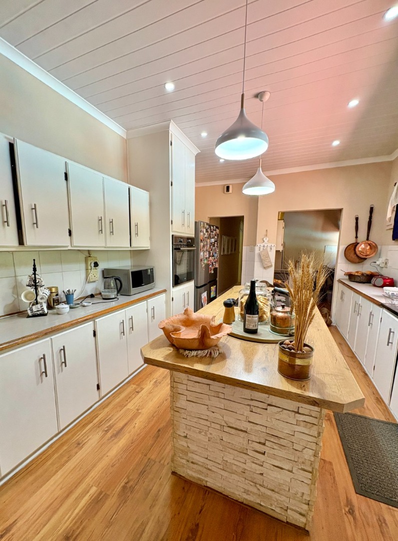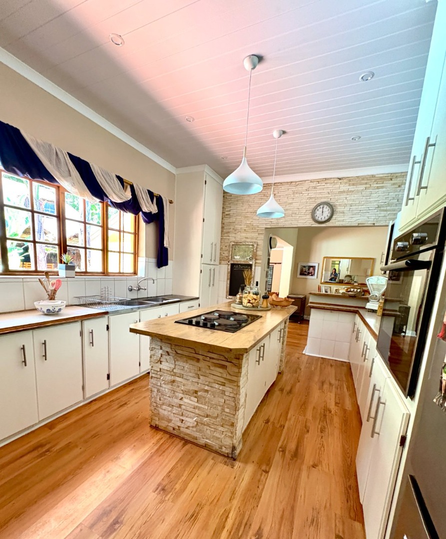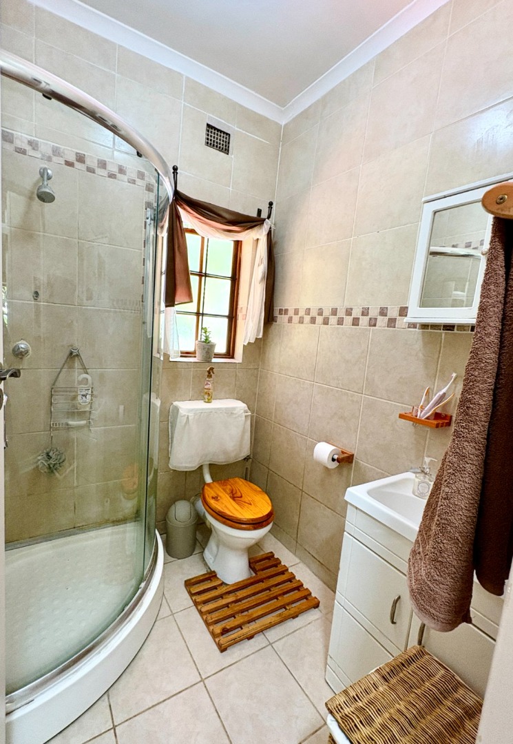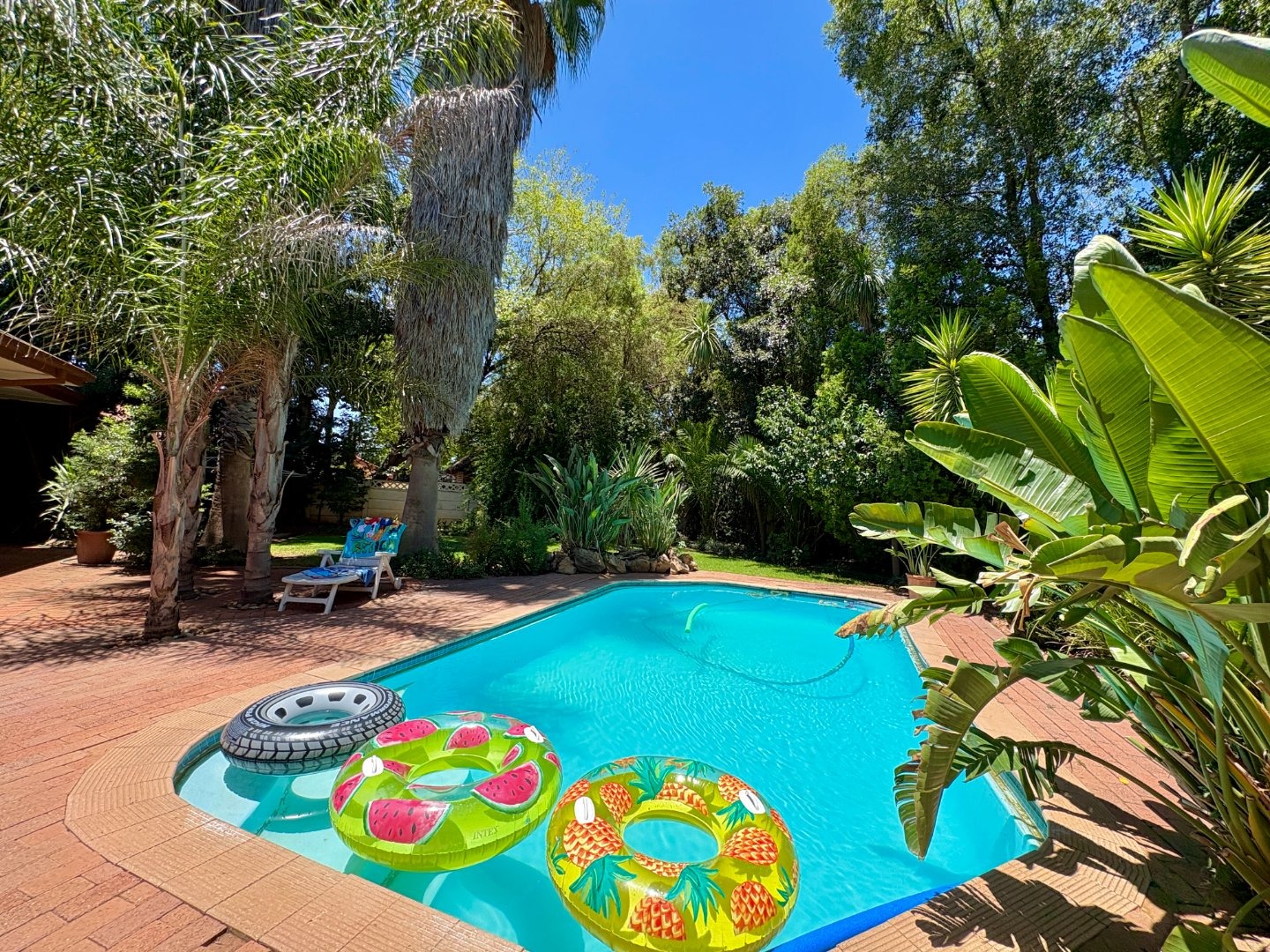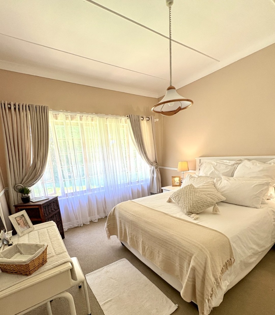 Outside, the beautifully established garden is filled with mature trees that ensure privacy and a peaceful atmosphere. A borehole and sprinkler system to support the garden.