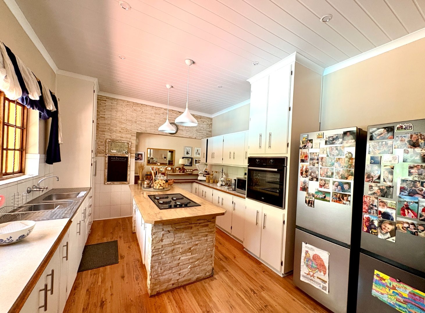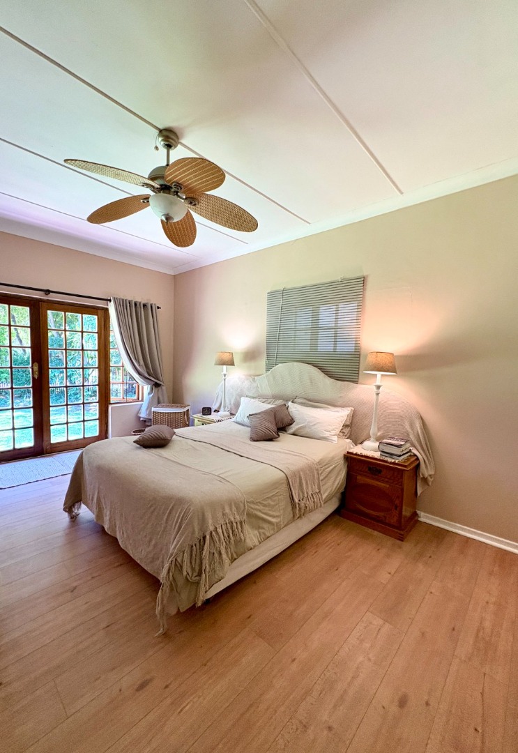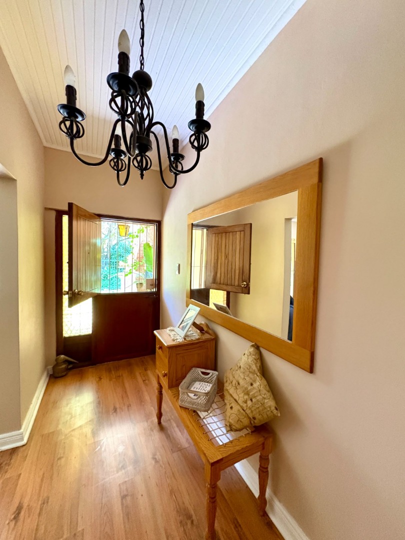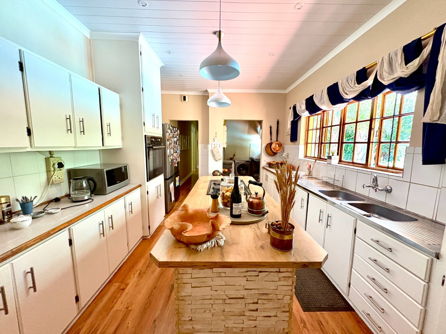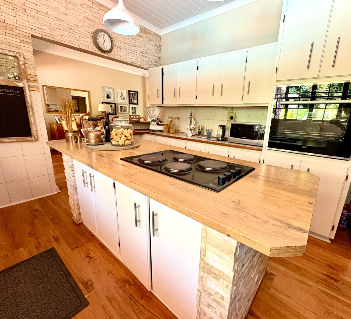 Outside, the beautifully established garden is filled with mature trees that ensure privacy and a peaceful atmosphere. A borehole and sprinkler system to support the garden.