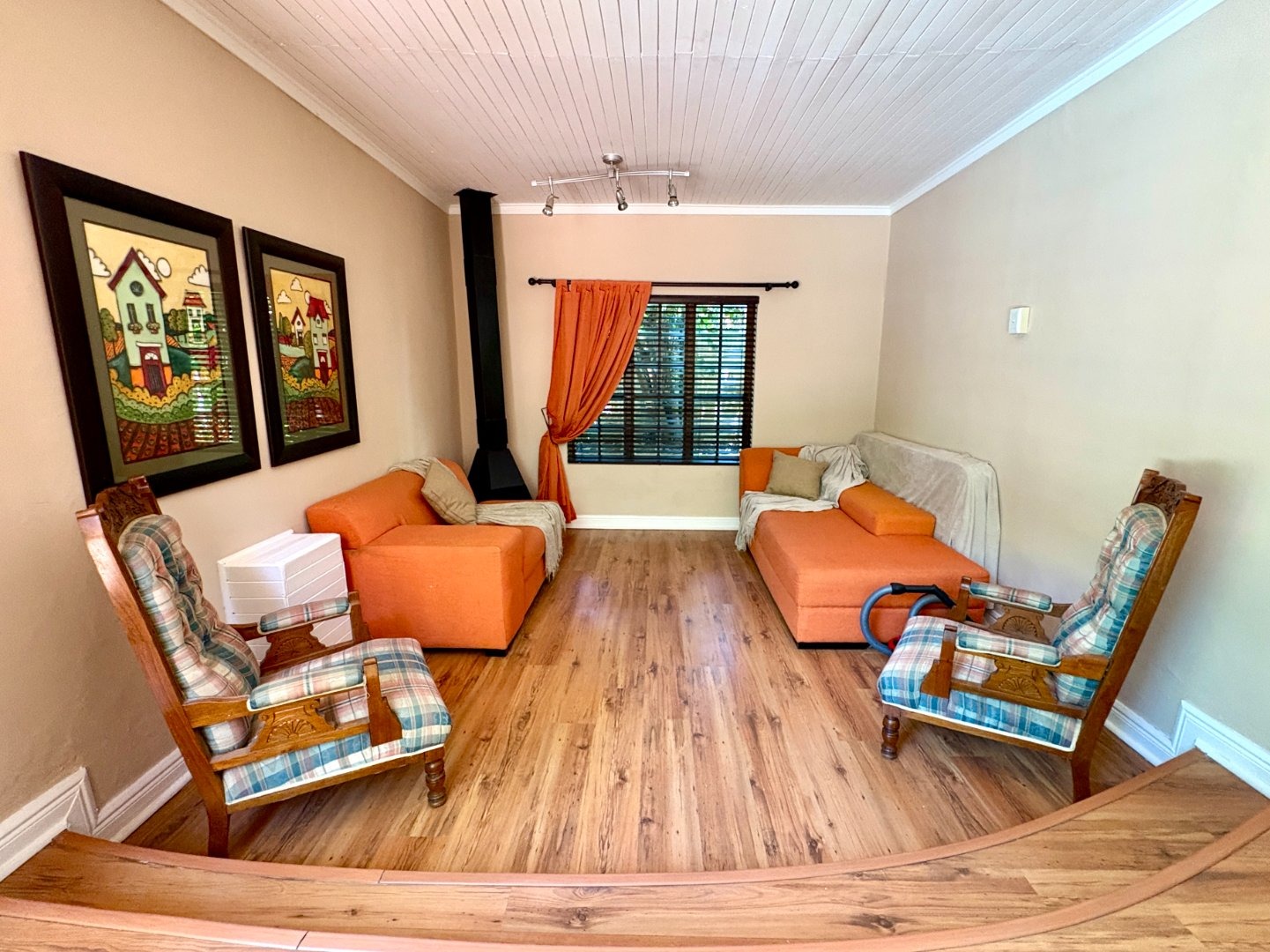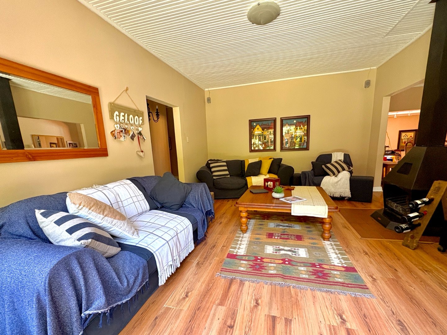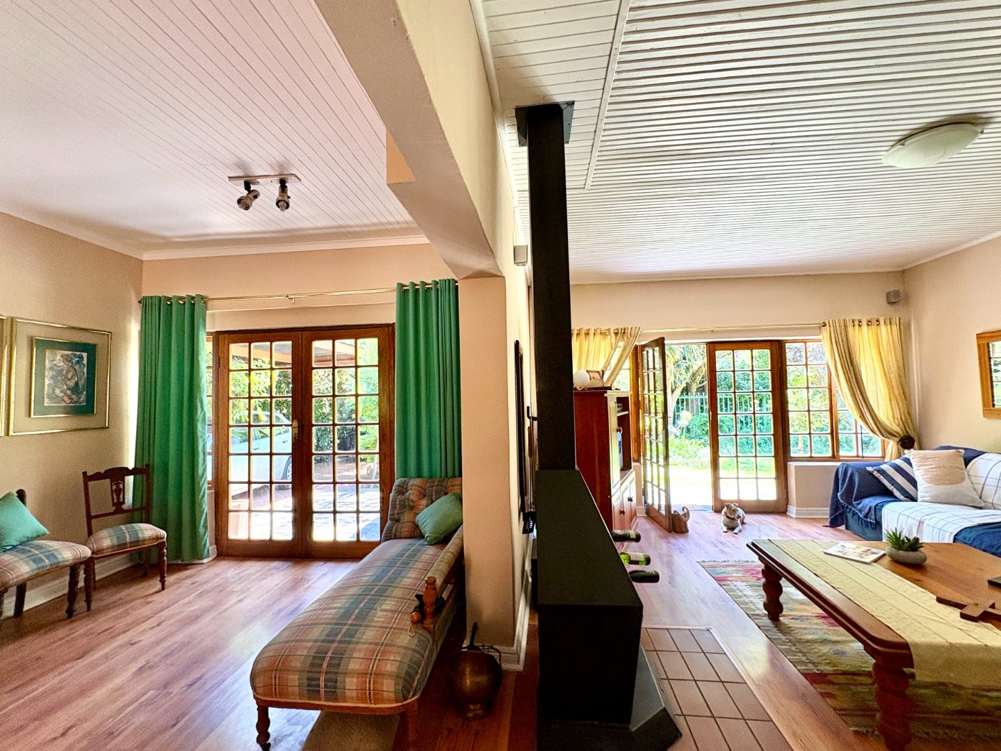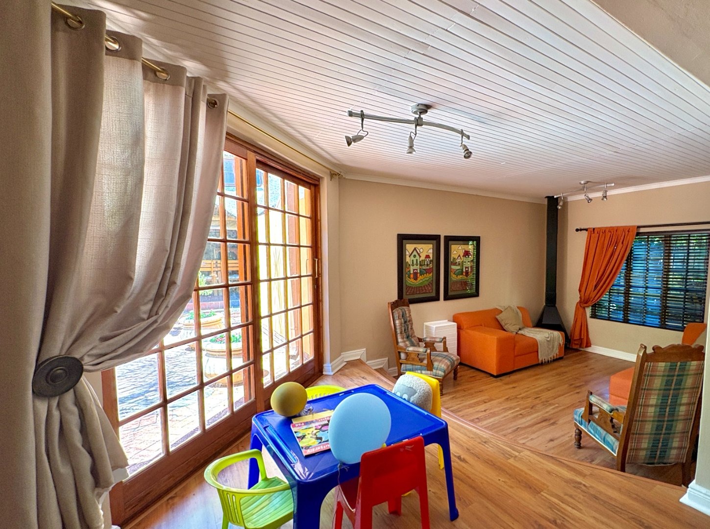 One of the lounges opens via sliding doors to a beautiful outdoor entertainment area that overlooks the swimming pool, patio, and lapa with built-in braai — perfect for hosting guests or enjoying relaxed family time.