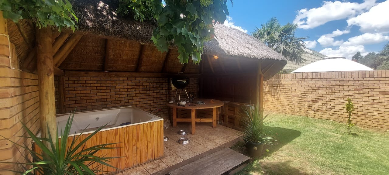 An inviting thatched Lapa with a jacuzzi provides the perfect space to unwind, while a separate braai area caters to relaxed entertaining.