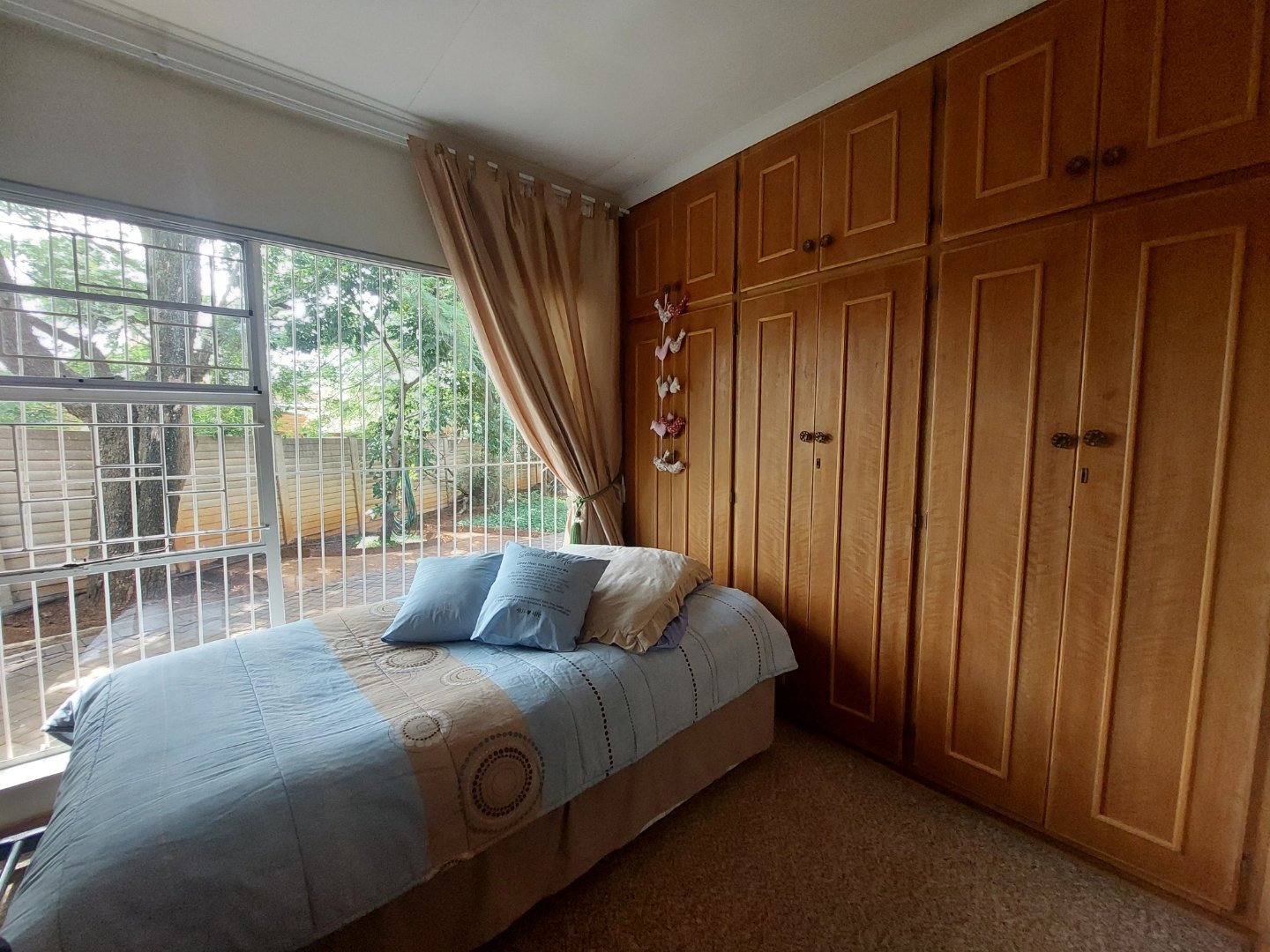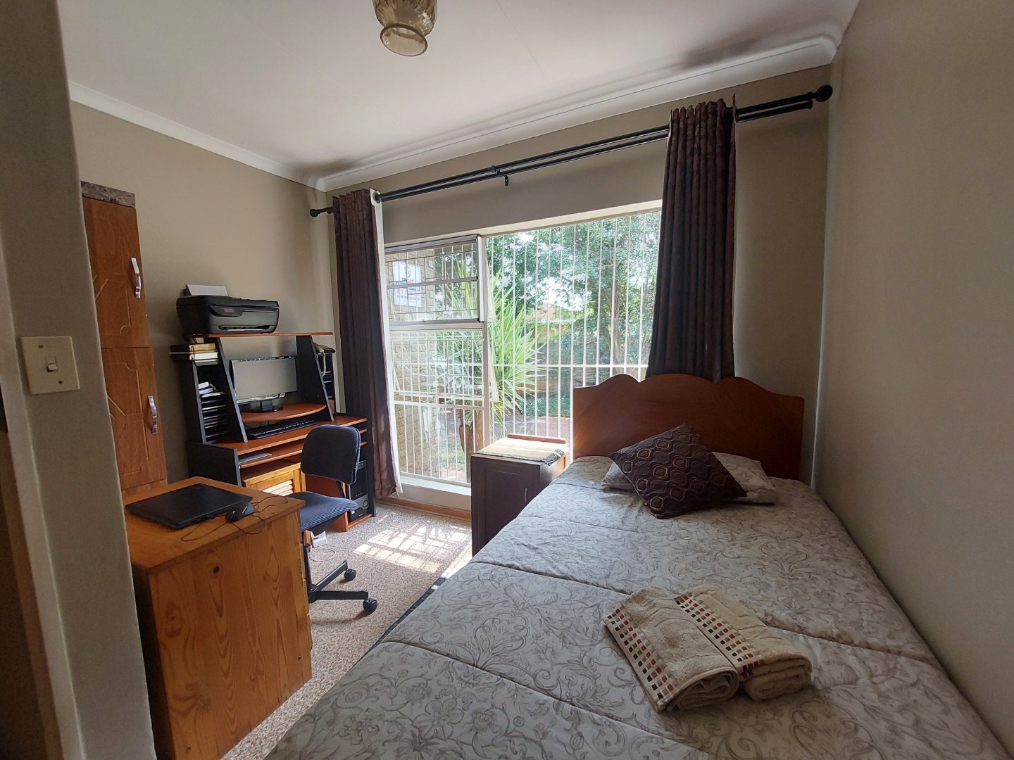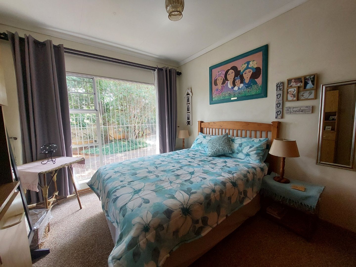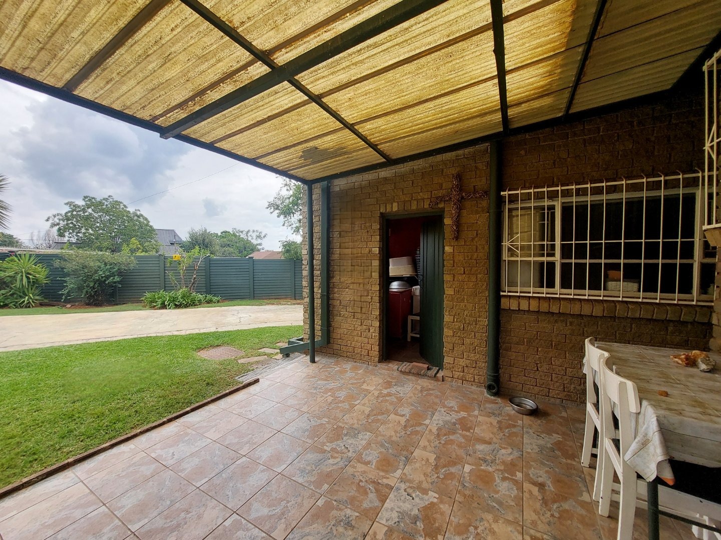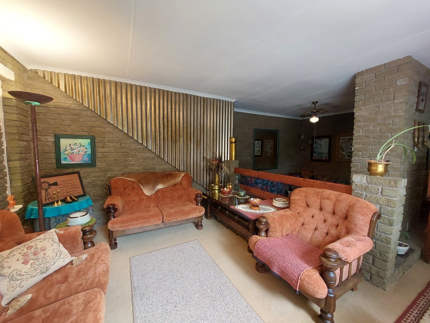 This inviting 4-bedroom residence in Langenhovenpark, Bloemfontein, offers a blend of comfort and practicality. The property features a durable brick exterior, complemented by a lush, mature garden that provides ample shade and privacy. A winding paved pathway leads to a welcoming patio entrance, creating an ideal setting for outdoor seating and relaxation. Inside, the home boasts two distinct lounge areas. One presents a unique sunken design with built-in seating and exposed brick walls, fostering a cozy and character-filled atmosphere. The second living space includes a solid brick accent wall and a fireplace feature, perfect for unwinding. A dedicated dining room ensures ample space for family meals and entertaining guests. The residence comprises four well-proportioned bedrooms, each designed to maximize natural light. Several bedrooms are equipped with built-in wardrobes, offering extensive storage solutions. One bedroom features large sliding glass doors providing direct access to the garden, while another includes a dedicated desk area, ideal for a home office or study. The property includes two bathrooms; one is fitted with a double vanity and a built-in bathtub, and the other is fully tiled, featuring a bathtub, vanity, and toilet. Practical amenities include a single kitchen, two garages, and an additional parking space. For enhanced security, burglar bars are present on windows and doors throughout the home, offering residents peace of mind. Langenhovenpark is a desirable suburb in Bloemfontein, known for its tranquil residential environment and convenient access to local amenities. This property offers a comfortable lifestyle in a sought-after South African location. Key Features: * 4 Bedrooms, 2 Bathrooms * 2 Spacious Lounges * Dedicated Dining Room * Double Garage & 1 Parking * Lush, Mature Garden * Paved Patio Area * Built-in Wardrobes * Security Bars on Windows/Doors * Fireplace Feature * Desirable Location