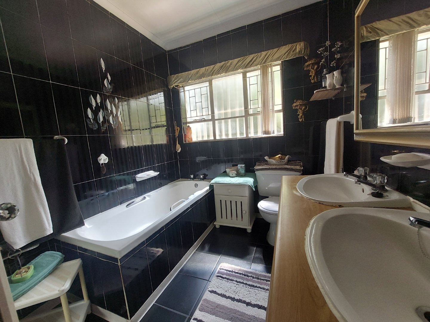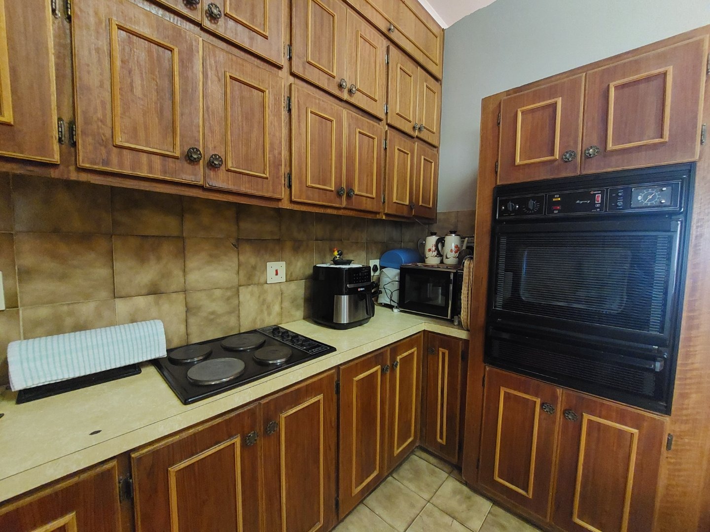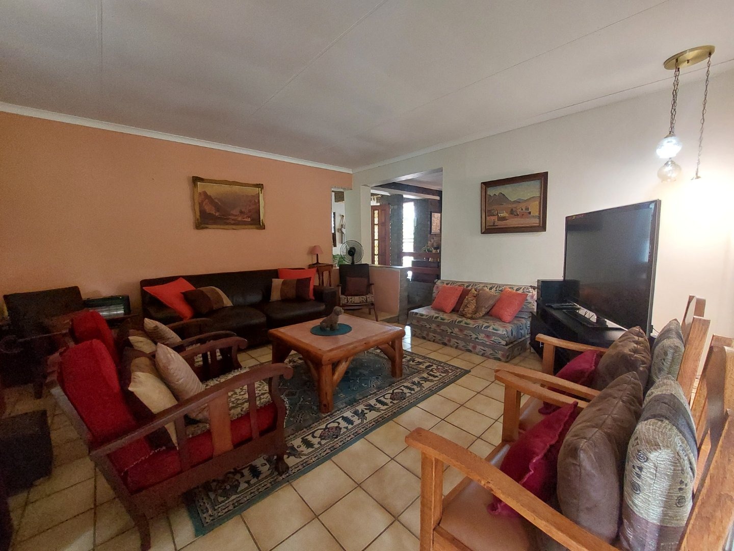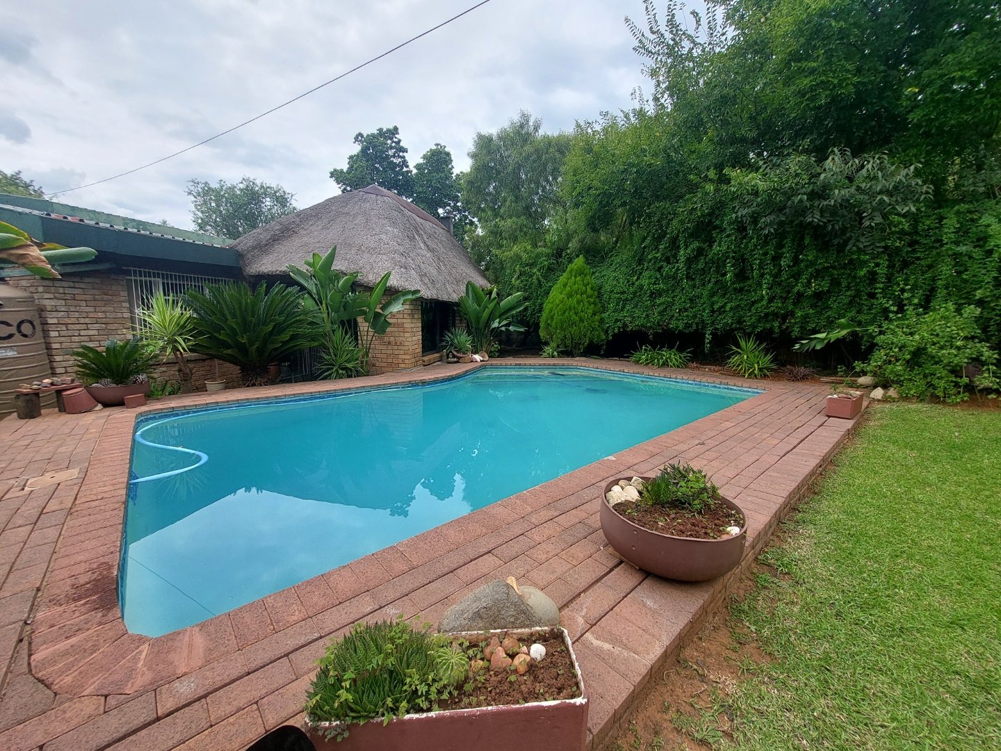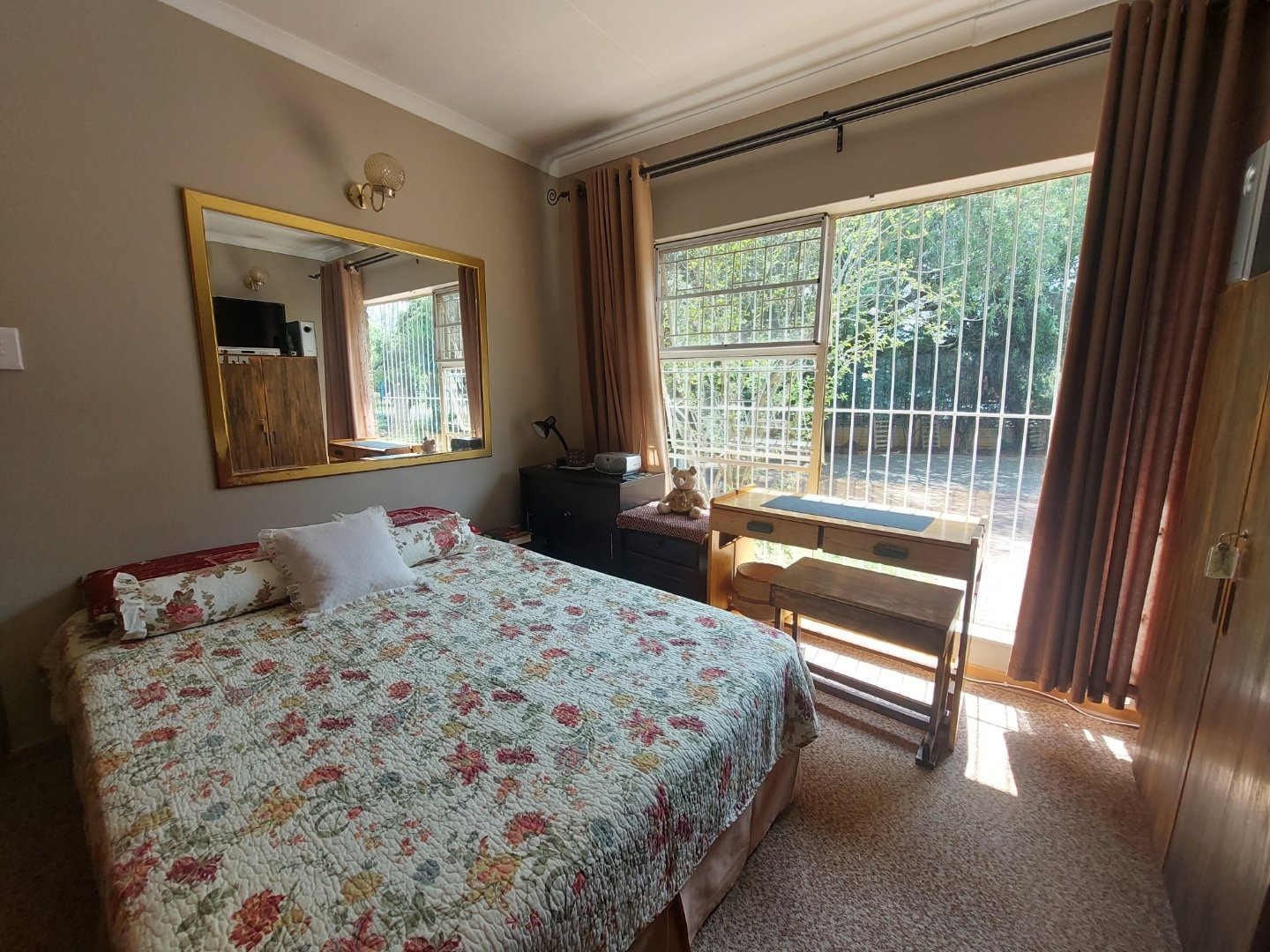 This inviting 4-bedroom residence in Langenhovenpark, Bloemfontein, offers a blend of comfort and practicality. The property features a durable brick exterior, complemented by a lush, mature garden that provides ample shade and privacy. A winding paved pathway leads to a welcoming patio entrance, creating an ideal setting for outdoor seating and relaxation. Inside, the home boasts two distinct lounge areas. One presents a unique sunken design with built-in seating and exposed brick walls, fostering a cozy and character-filled atmosphere. The second living space includes a solid brick accent wall and a fireplace feature, perfect for unwinding. A dedicated dining room ensures ample space for family meals and entertaining guests. The residence comprises four well-proportioned bedrooms, each designed to maximize natural light. Several bedrooms are equipped with built-in wardrobes, offering extensive storage solutions. One bedroom features large sliding glass doors providing direct access to the garden, while another includes a dedicated desk area, ideal for a home office or study. The property includes two bathrooms; one is fitted with a double vanity and a built-in bathtub, and the other is fully tiled, featuring a bathtub, vanity, and toilet. Practical amenities include a single kitchen, two garages, and an additional parking space. For enhanced security, burglar bars are present on windows and doors throughout the home, offering residents peace of mind. Langenhovenpark is a desirable suburb in Bloemfontein, known for its tranquil residential environment and convenient access to local amenities. This property offers a comfortable lifestyle in a sought-after South African location. Key Features: * 4 Bedrooms, 2 Bathrooms * 2 Spacious Lounges * Dedicated Dining Room * Double Garage & 1 Parking * Lush, Mature Garden * Paved Patio Area * Built-in Wardrobes * Security Bars on Windows/Doors * Fireplace Feature * Desirable Location
