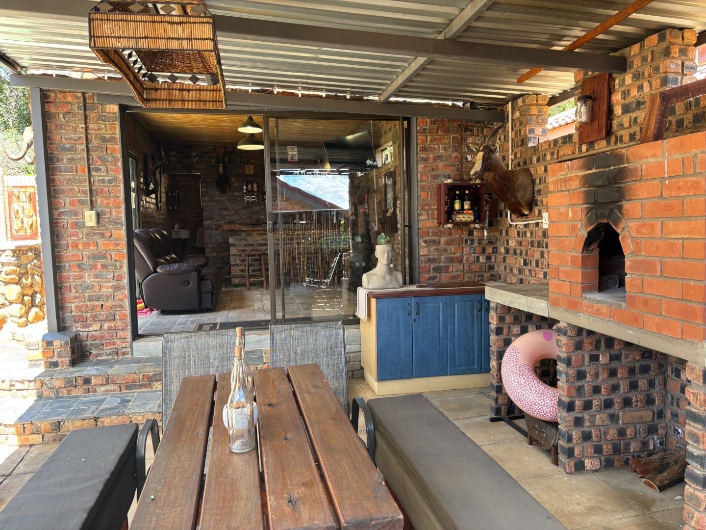 Entertainment area includes a sparkling pool, open boma, covered patio with pizza oven, enclosed bar and much more. Well secured.Call agent for a private viewing!