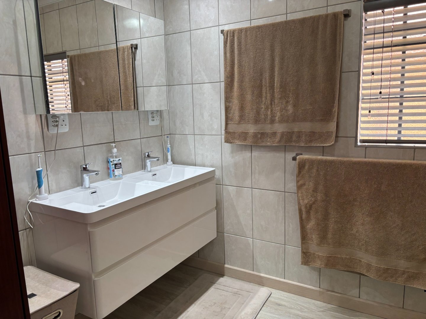 There are 3 well sized bedrooms and two bathrooms. Study with AC, book shelves and work stations. Main bedroom includes a full en-suite bathroom, the guest bathroom offers a shower, basin and toilet. Doube garage attached to property. Secure safety.