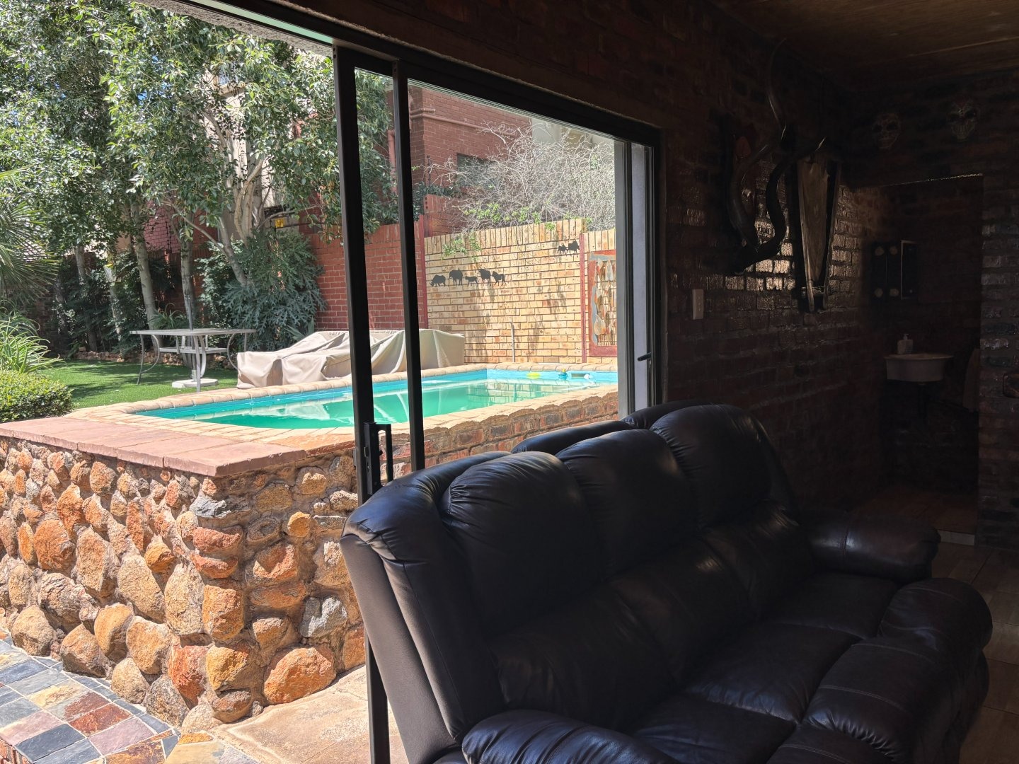 Entertainment area includes a sparkling pool, open boma, covered patio with pizza oven, enclosed bar and much more. Well secured.Call agent for a private viewing!