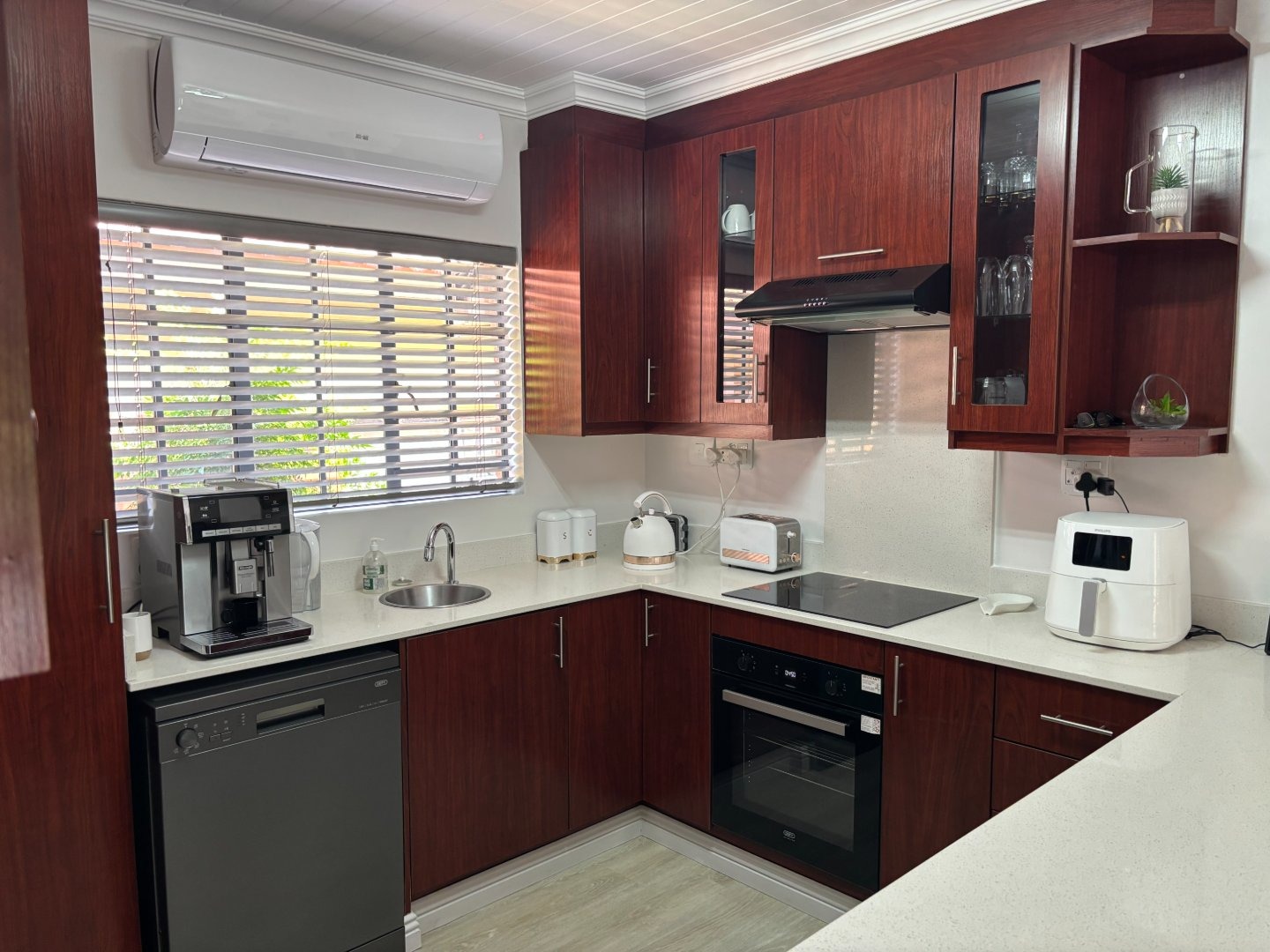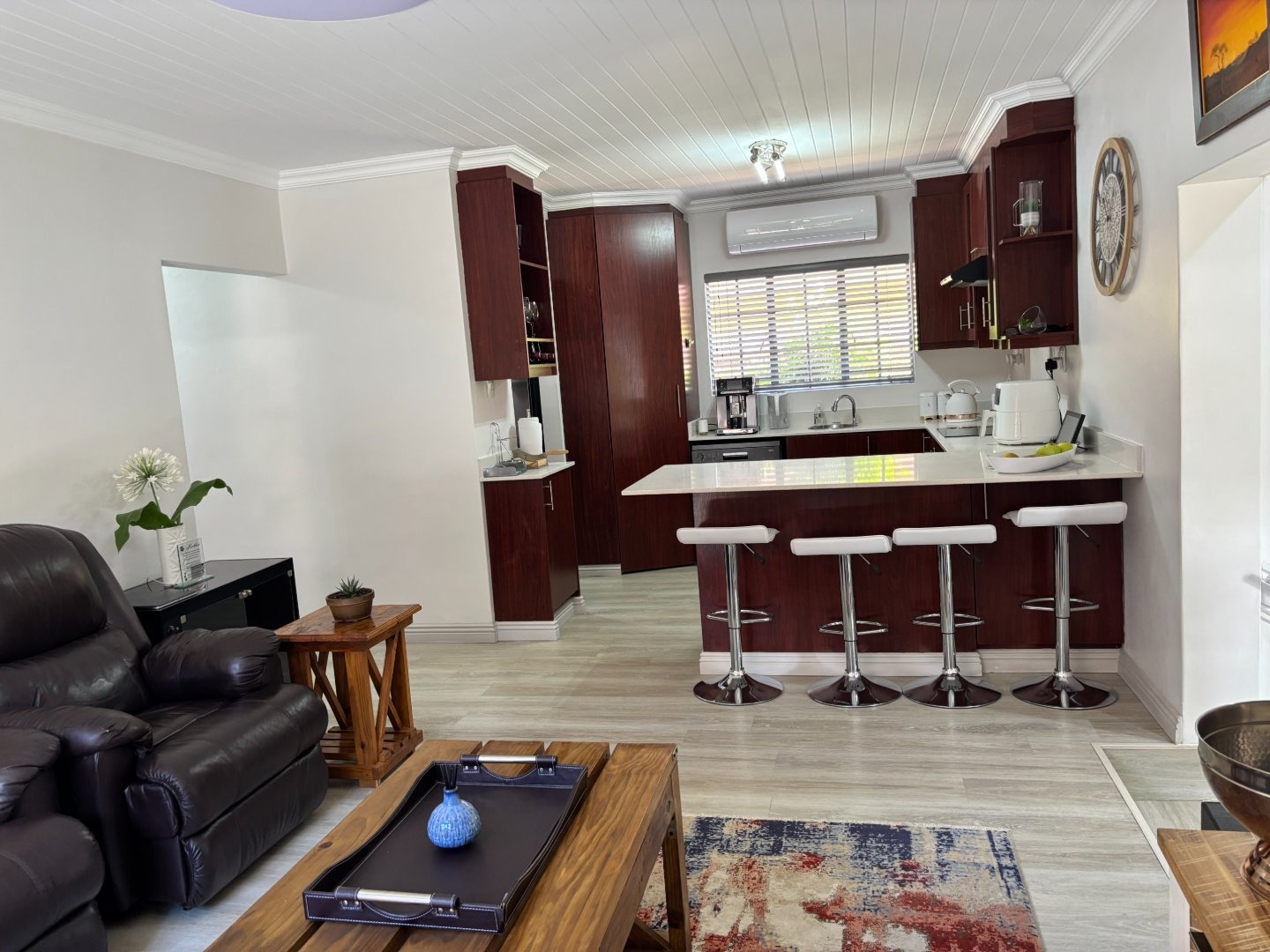 Open plan entertainment area with well fitted kitchen and separate scullery. Two spacious bedrooms with ample BIC. Two bathrooms - main en suite is a full bathroom. Cosy entertainment area. Single automated garage with one private open parking