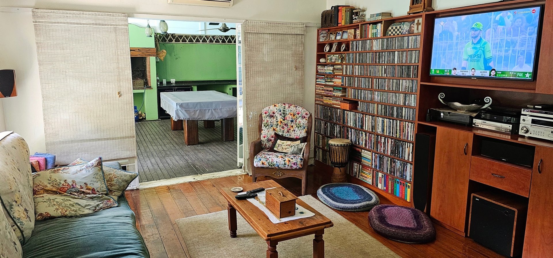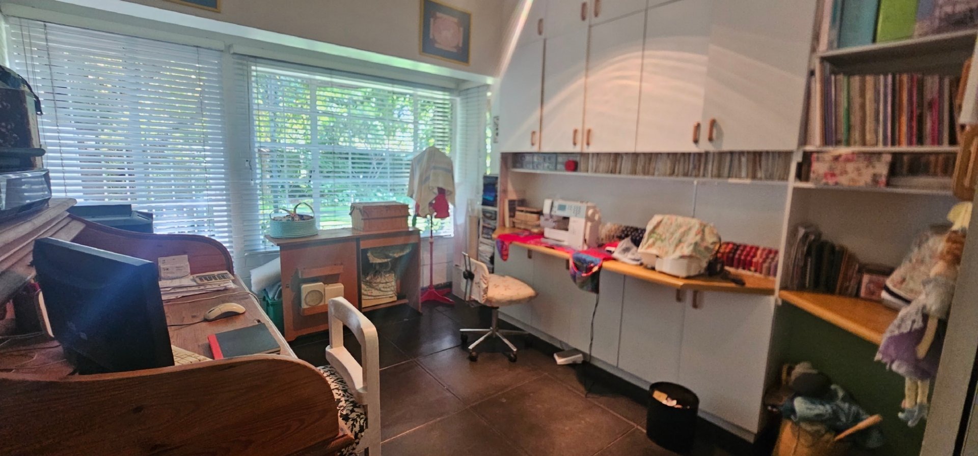 A extra living area, with its own outside access, connects to a study and hobby room — ideal for work or leisure or possible flatlet