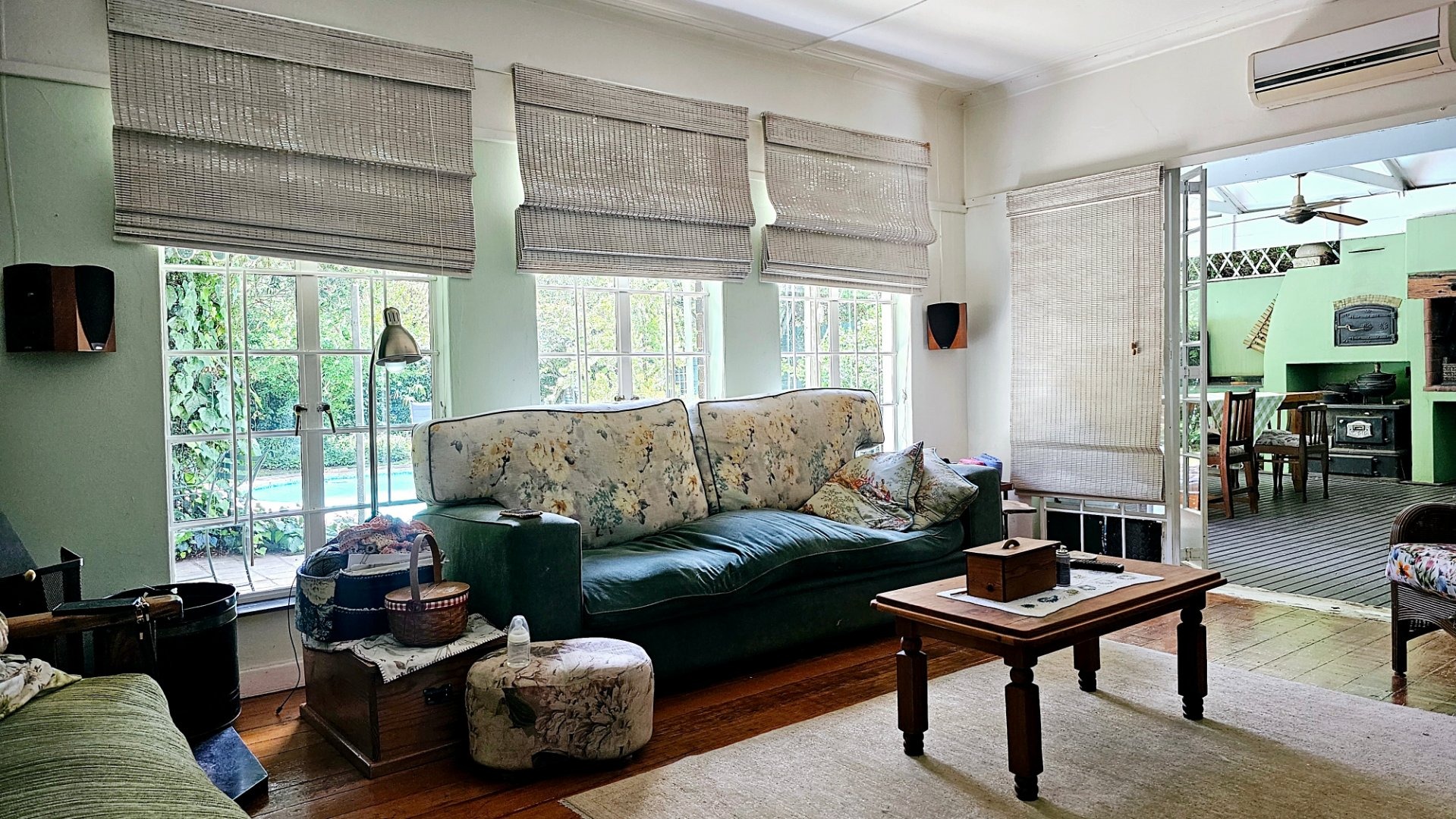 This home offers 4 spacious bedrooms and 3 bathrooms, all with abundant natural light and built-in cupboards. The master suite features a private en suite bathroom and doors opening onto a patio and pool, creating a tranquil retreat.