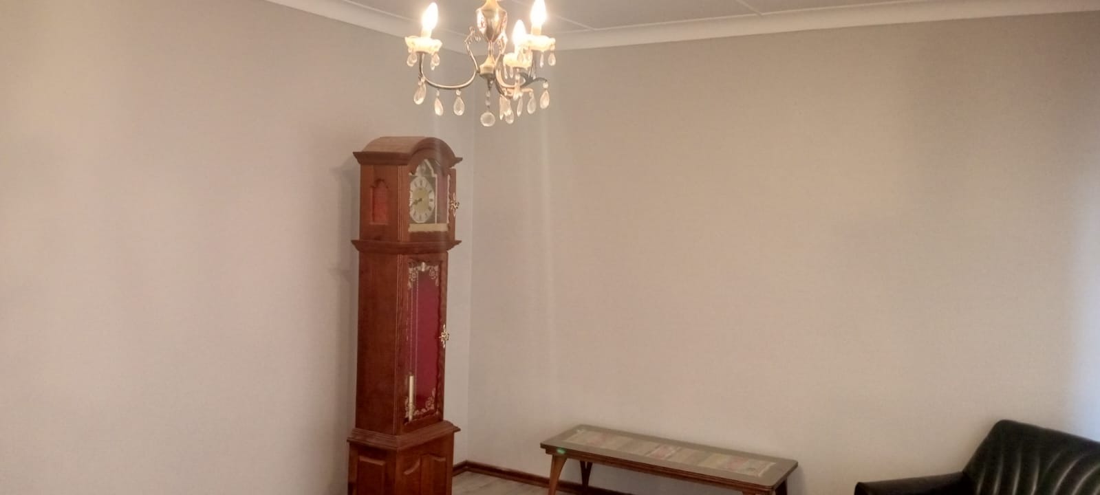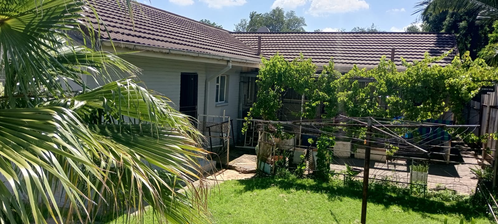 Enhanced security is provided by burglar bars, security gates, and a totally walled perimeter, ensuring peace of mind in this suburban setting.