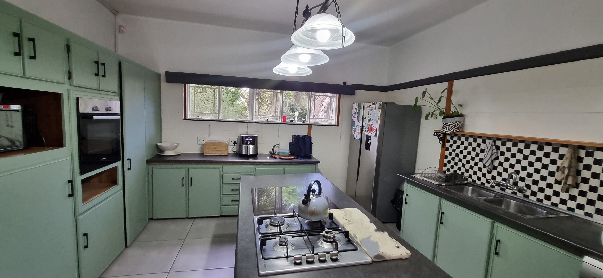 Discover this charming 4-bedroom, 3-bathroom residence nestled in the suburban heart of Waverley, Bloemfontein. Boasting a multi-level design with a clean white exterior and large windows, this home offers excellent kerb appeal and abundant natural light throughout. The spacious interior features a comfortable lounge, a dedicated dining room, and a family TV room, complemented by classic parquet flooring and a cozy fireplace. The kitchen is equipped with ample mint green cabinetry and an island, ready for culinary adventures.