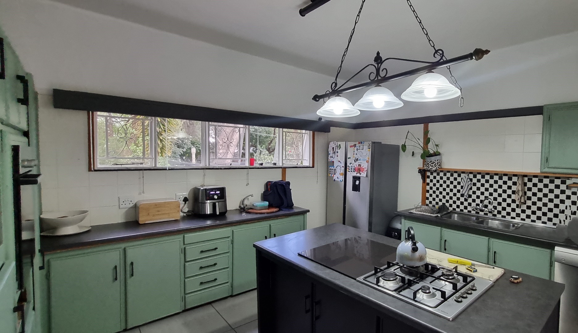 Discover this charming 4-bedroom, 3-bathroom residence nestled in the suburban heart of Waverley, Bloemfontein. Boasting a multi-level design with a clean white exterior and large windows, this home offers excellent kerb appeal and abundant natural light throughout. The spacious interior features a comfortable lounge, a dedicated dining room, and a family TV room, complemented by classic parquet flooring and a cozy fireplace. The kitchen is equipped with ample mint green cabinetry and an island, ready for culinary adventures.