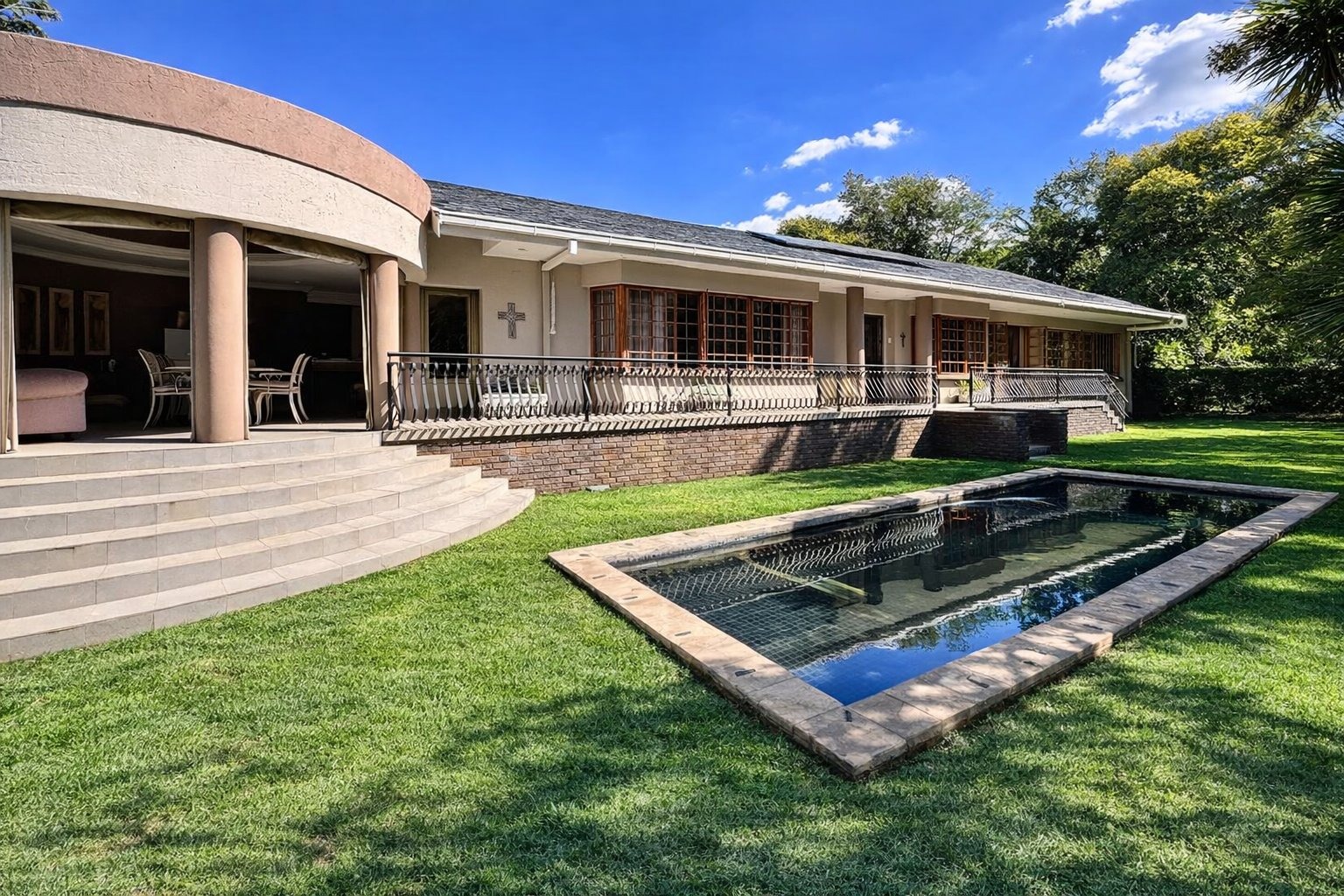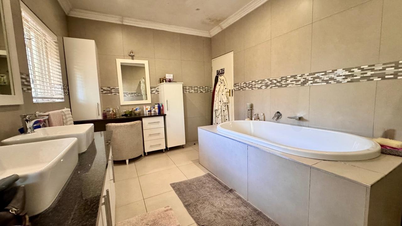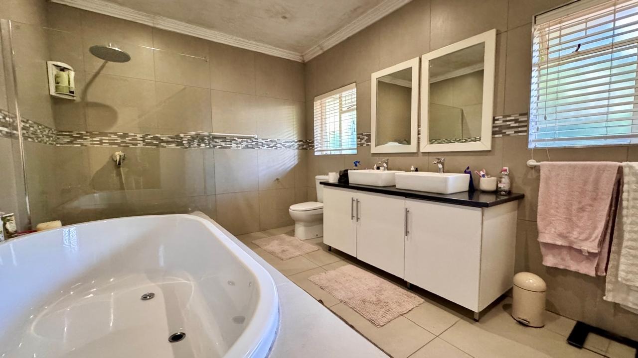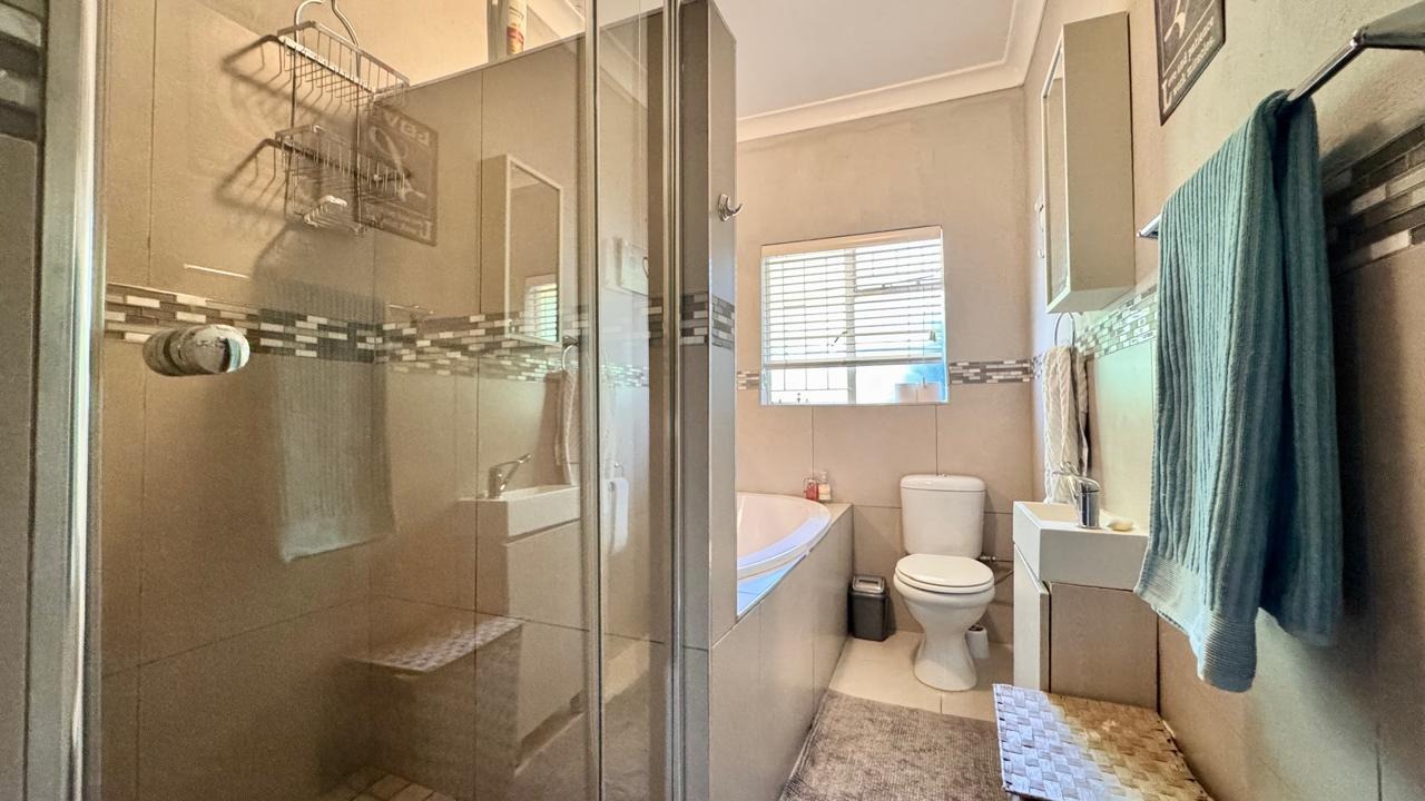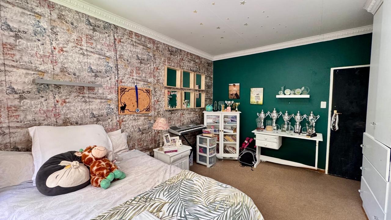 Outside, the property features a sparkling swimming pool, perfect for enjoying the warm Bloemfontein climate.