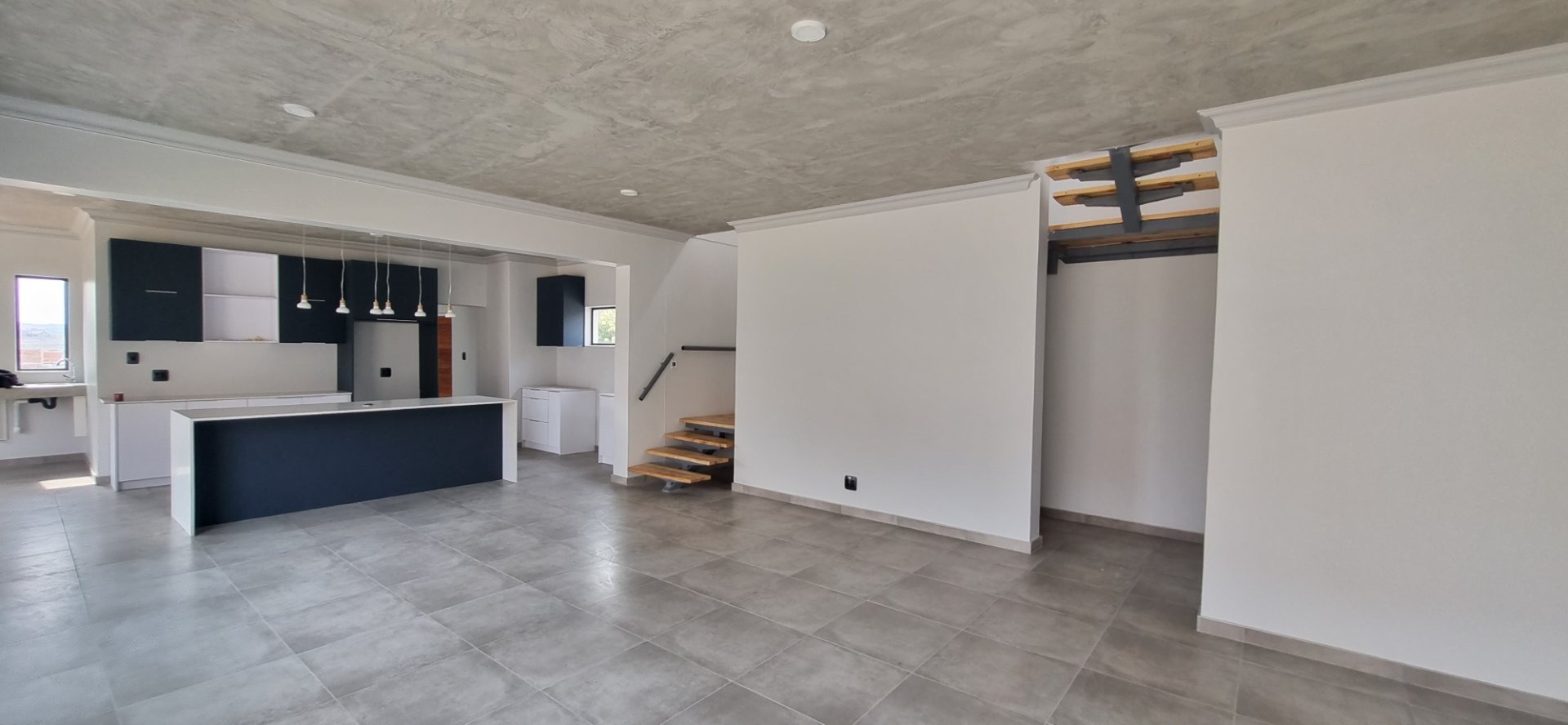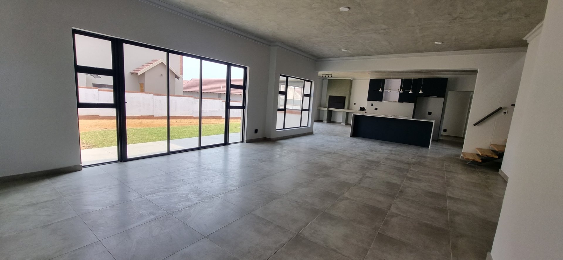 Open plan kitchen and lovely living area and braai area with aluminum stack doors going out to garden. Downstairs huge foyer, guest toilet and braai area.