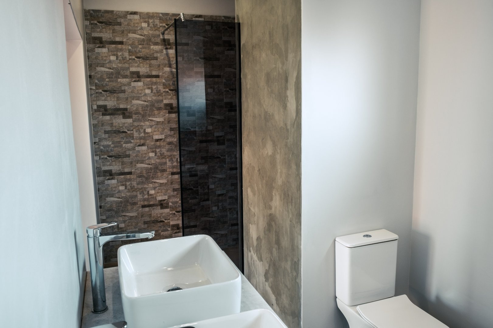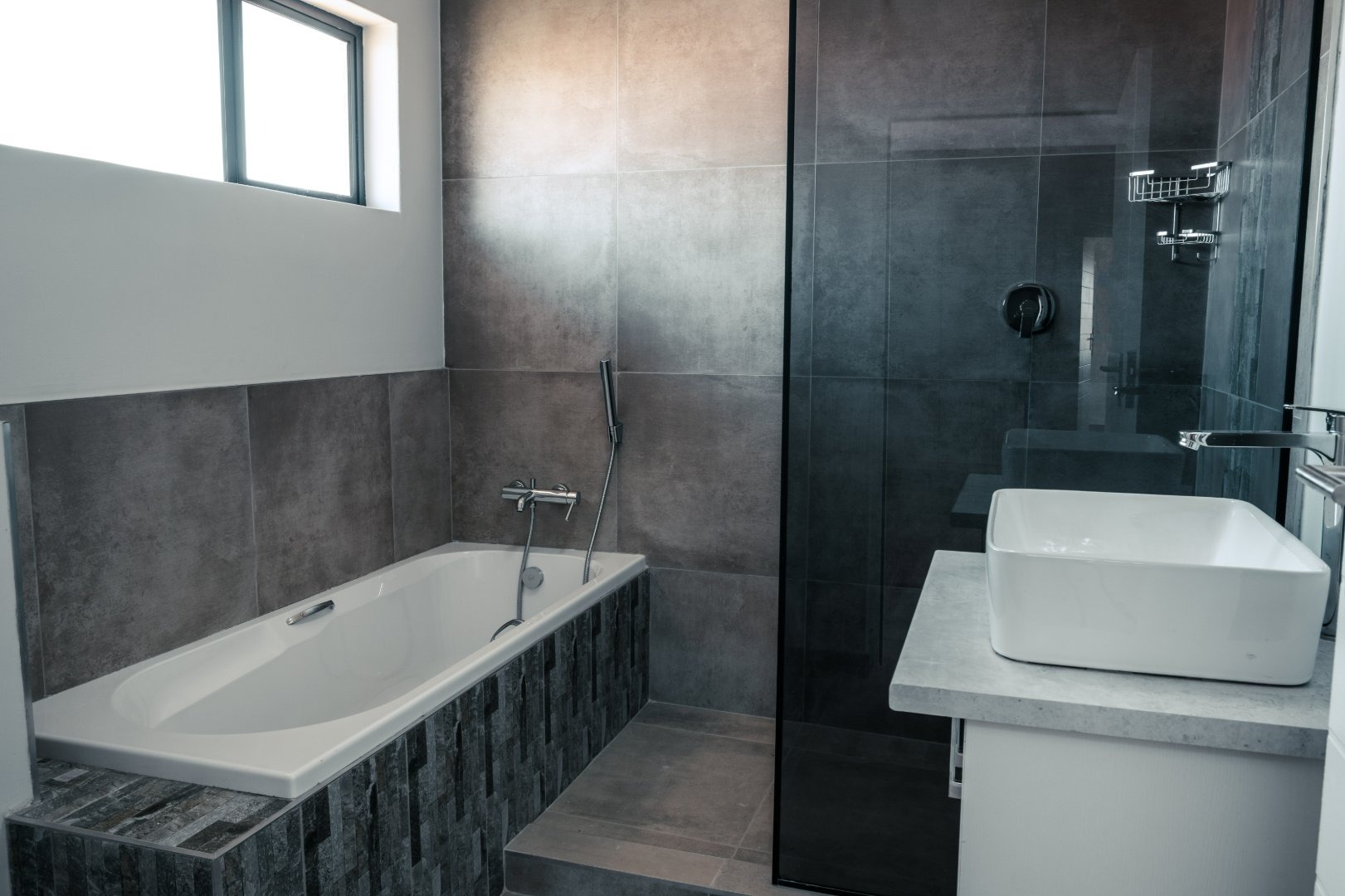Open plan kitchen and lovely living area and braai area with aluminum stack doors going out to garden. Downstairs huge foyer, guest toilet and braai area.