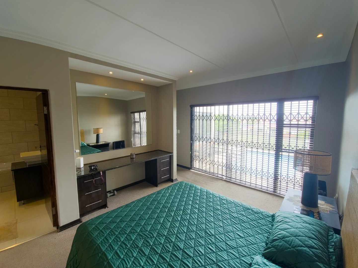 Main Bedroom Retreat: The main bedroom, conveniently located downstairs, features an ensuite bathroom and special doors that open directly onto the pool area. Imagine morning swims just steps away!