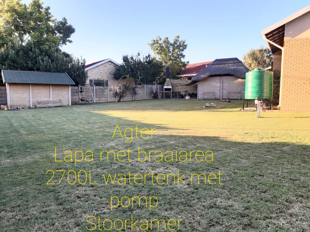 Outdoors, a lapa with a separate braai creates the perfect setting for relaxed gatherings, while a storage room adds valuable extra space. Additional features include a 2 500-litre water tank with a pressure pump and a 21-tube solar geyser, enhancing efficiency and sustainability in this attractive home.